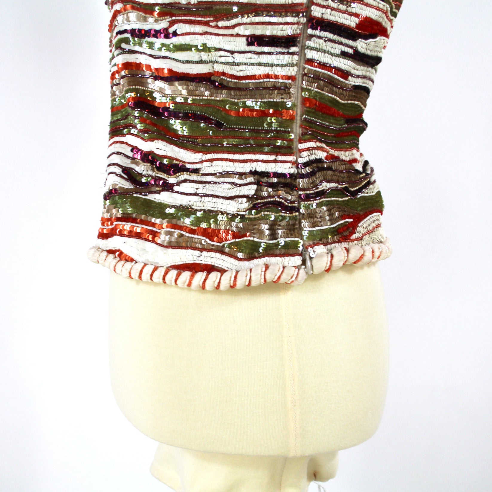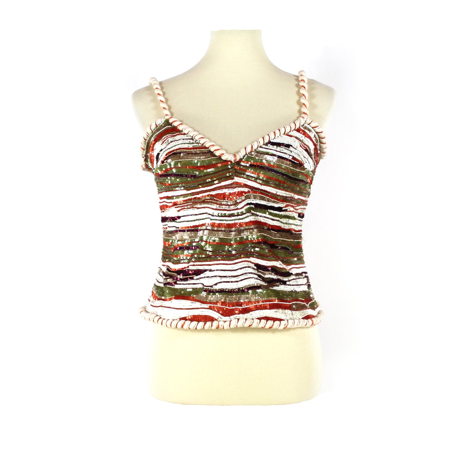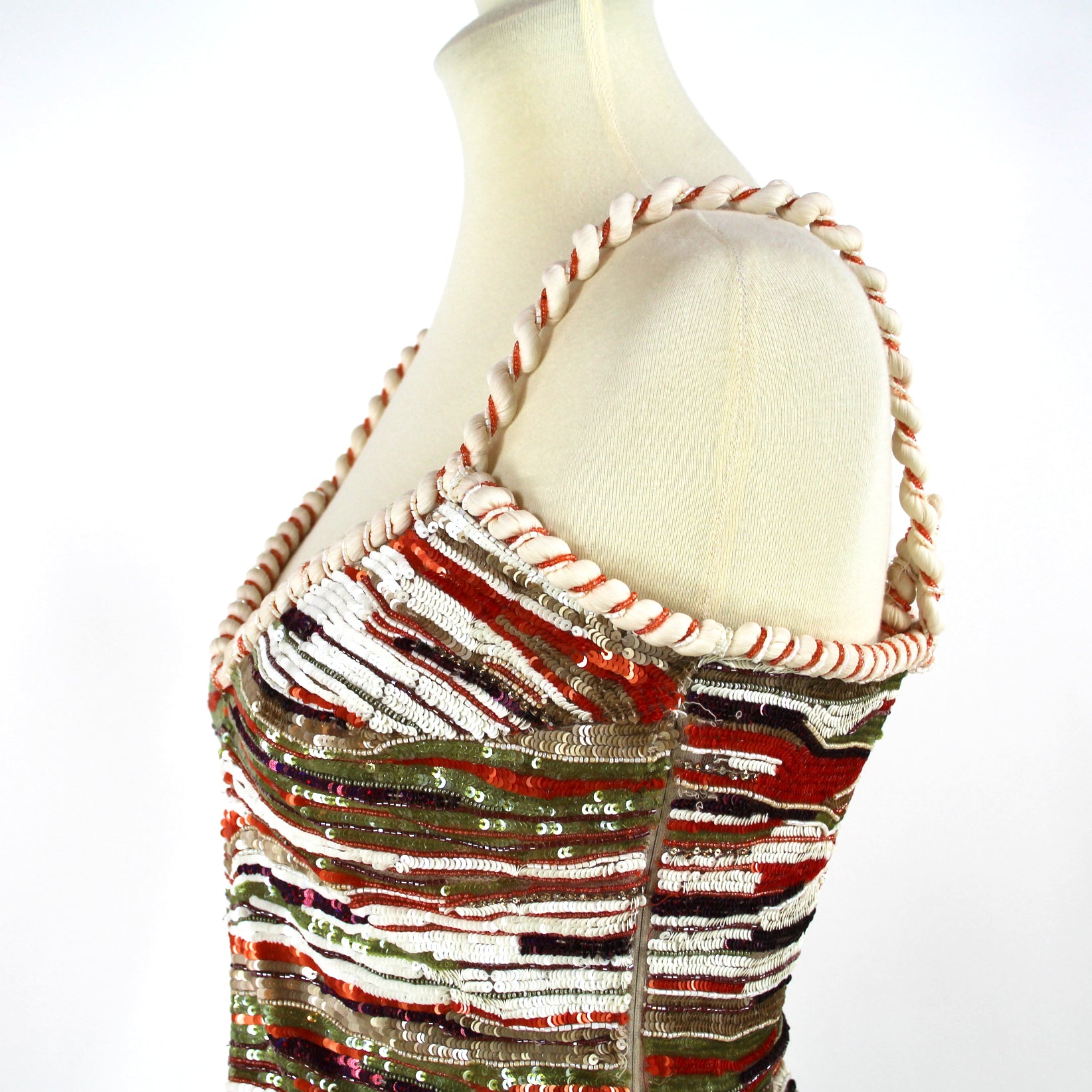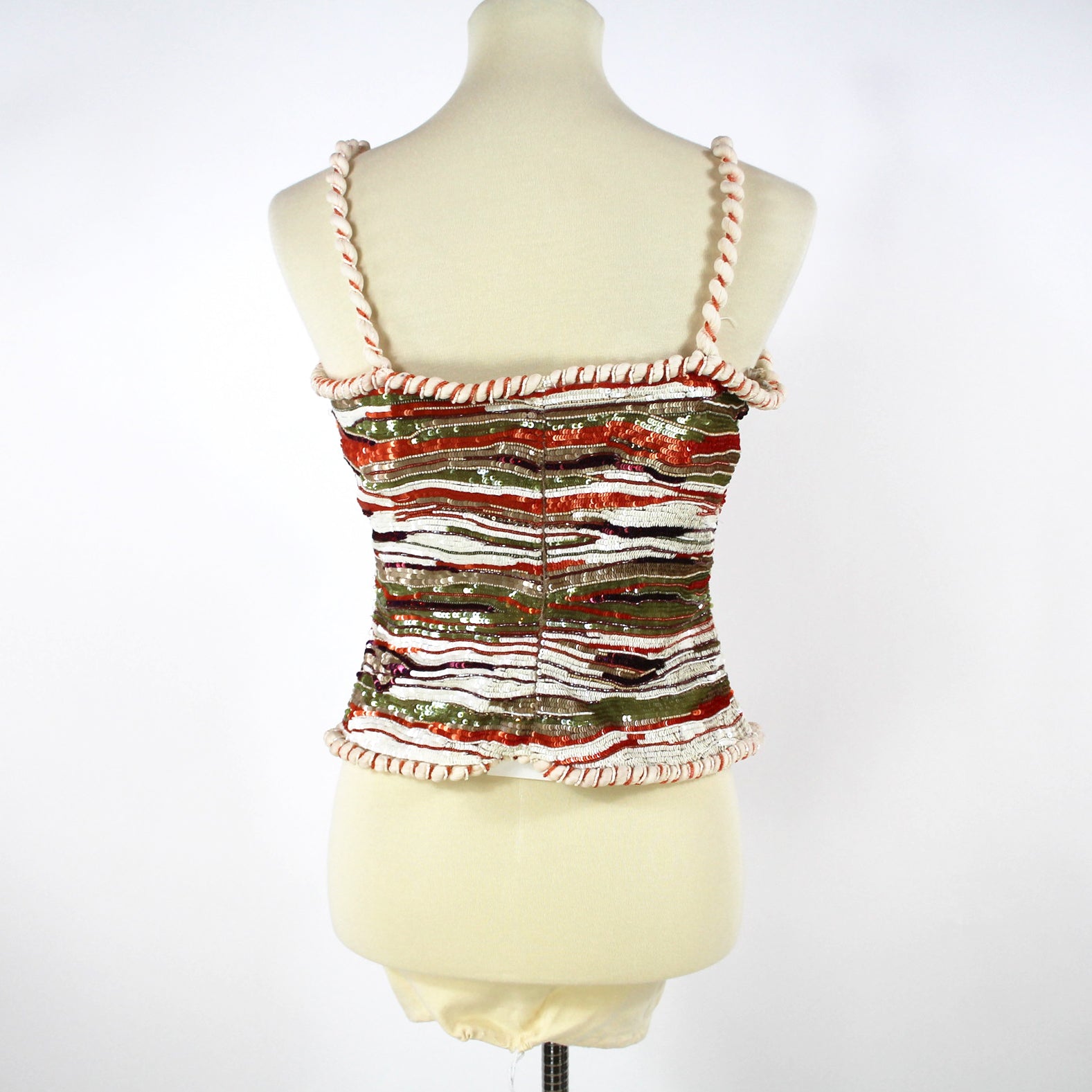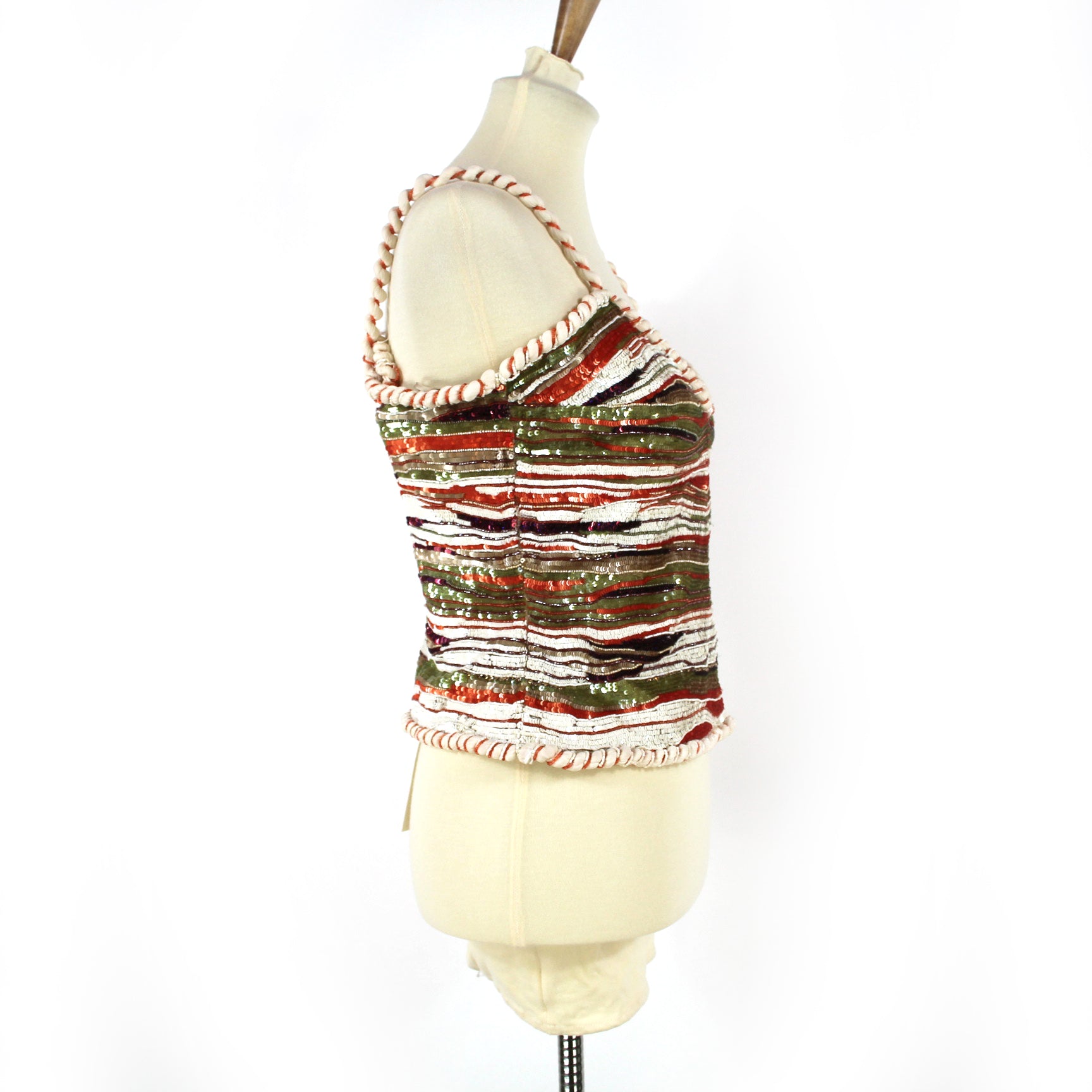 Valentino Multicolor Green Orange Sequin Embellished Rope Trim Tank Top