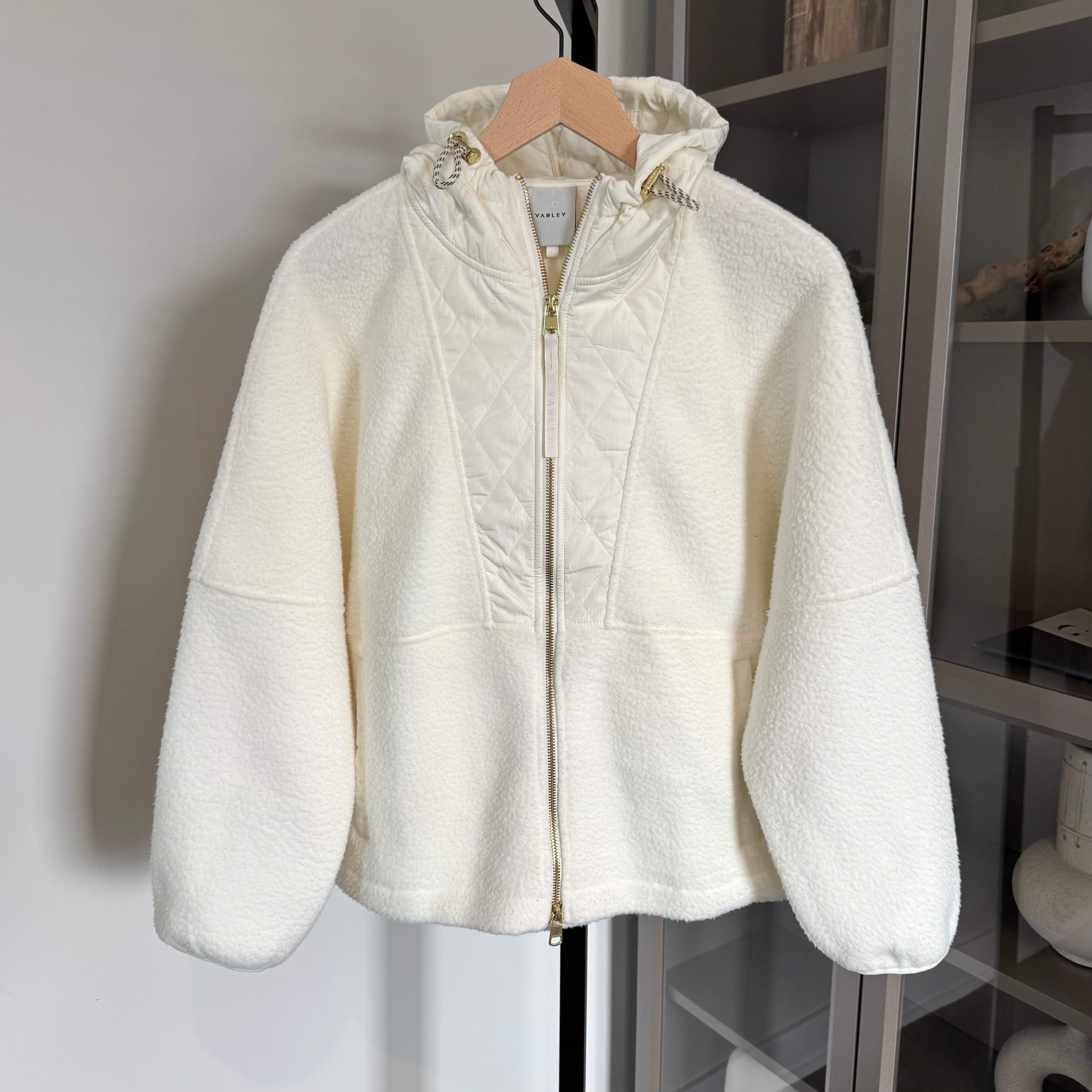 Varley Richfield Quilt Combo Fleece Ivory Zip-Up Hooded Jacket