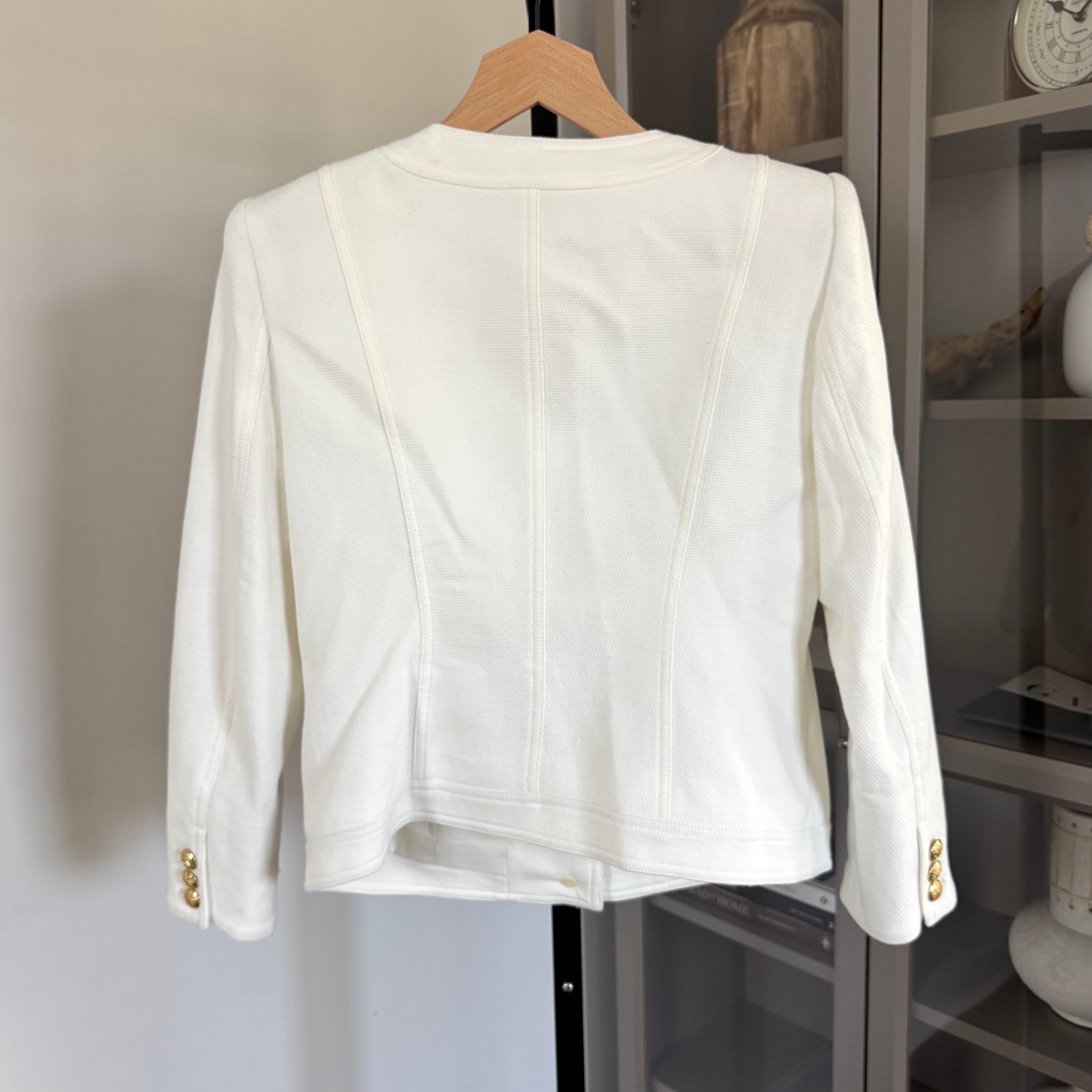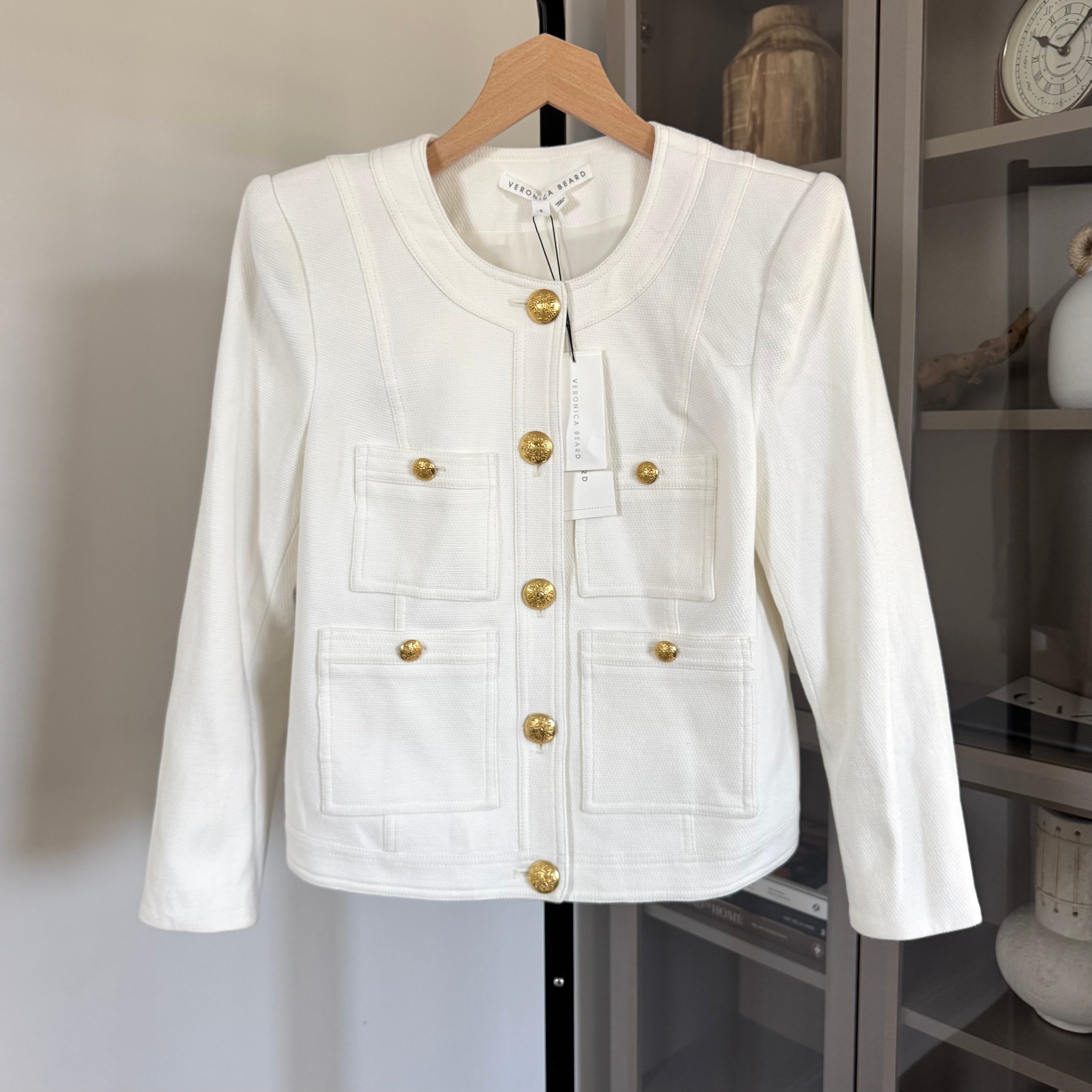 Veronica Beard White Ecru Ferazia Jacket Cotton Gold Buttons Blazer