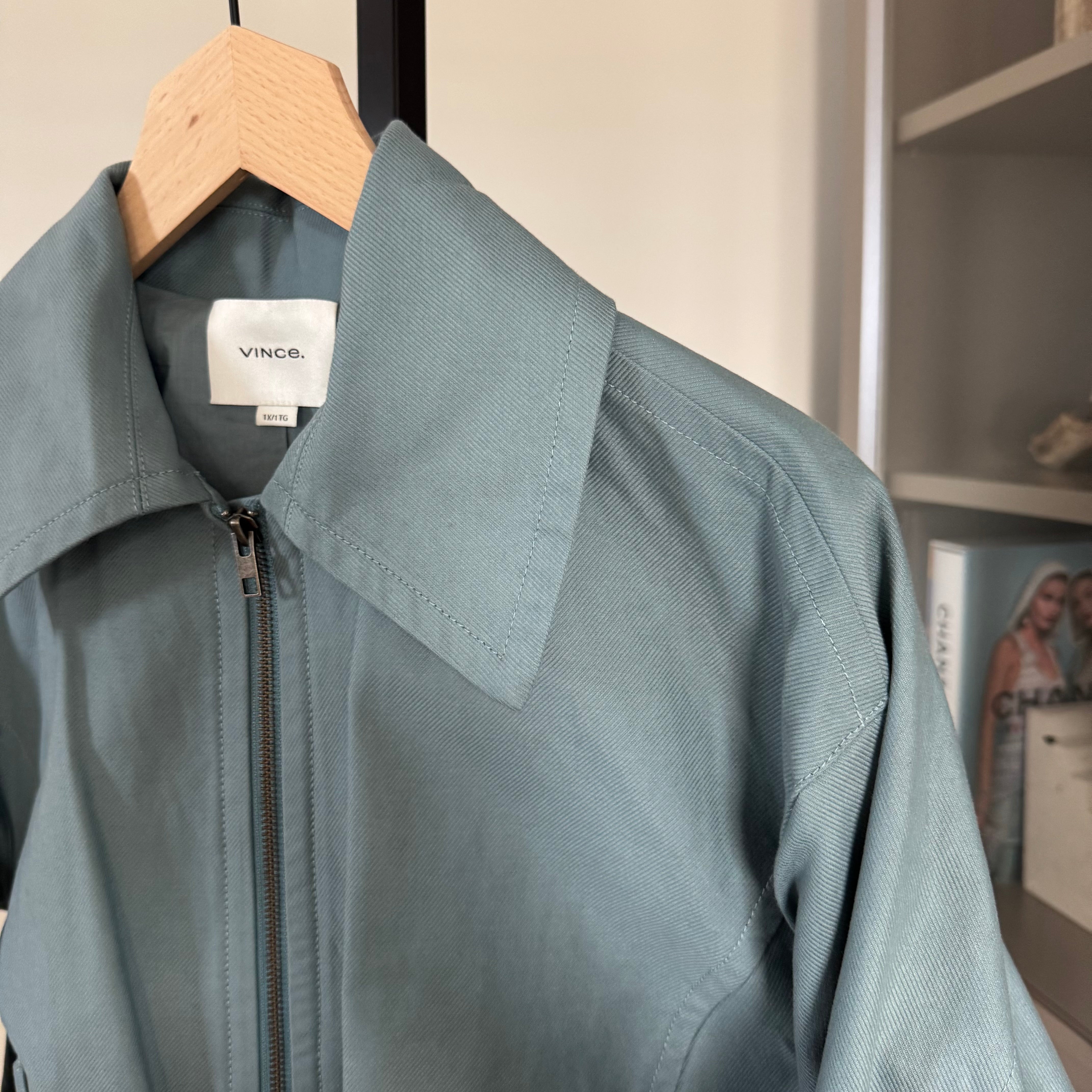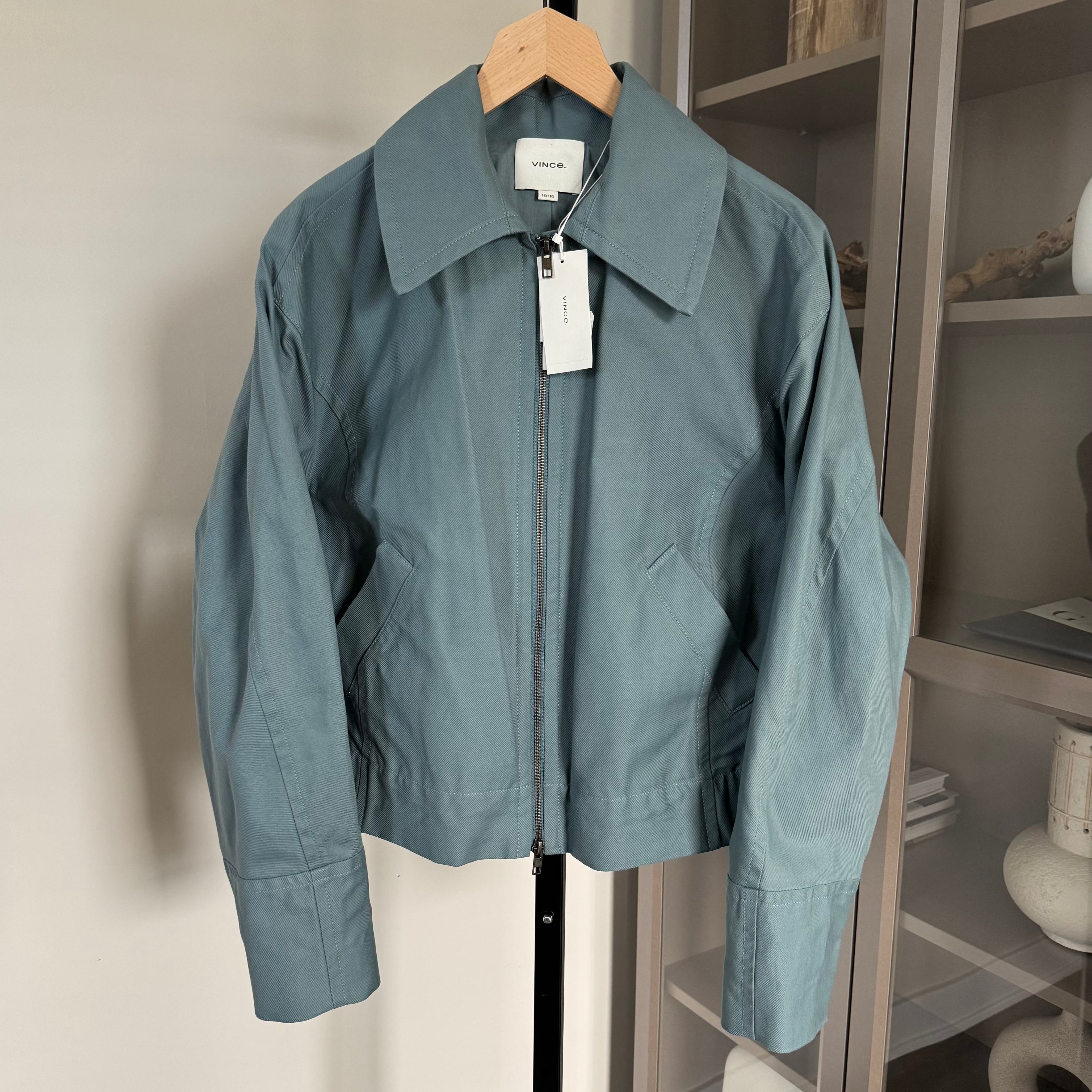Vince Jade Cotton Blend Horizon Blue Zip-Up Flight Jacket