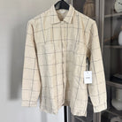 3sixteen Long Sleeve Woven Linen Blend Button-Up Beige Black Plaid Wide Work Shirt