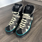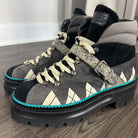 Bally Switzerland Black Grey Turquoise Trim Suede Lug Sole Hiking Boot