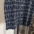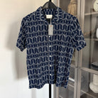 Far Afield Stachio Navy White Pin Dot Palm Tree Short Sleeve Camp Shirt