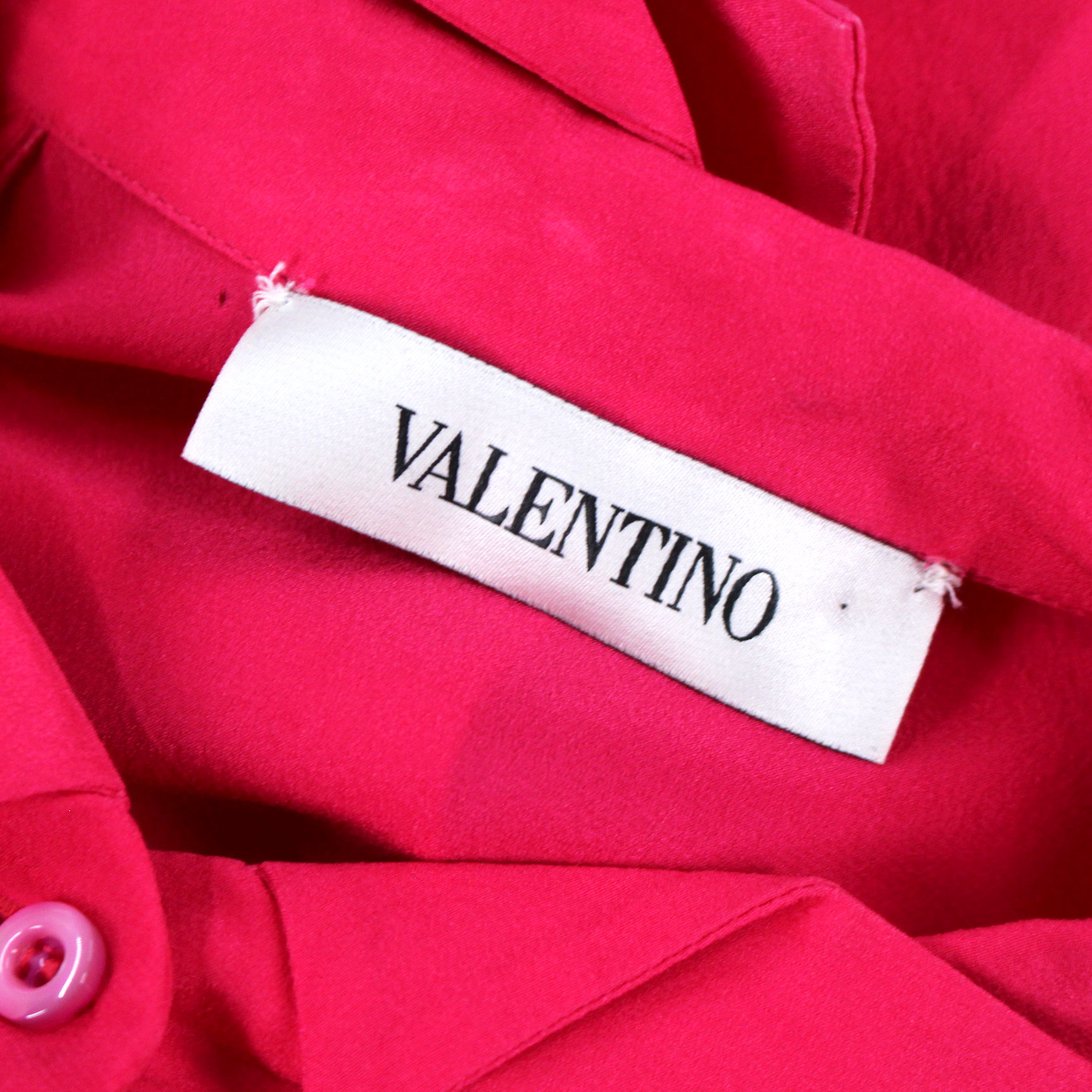 Valentino Hot Pink Silk Button Down Long Sleeve Blouse Shirt