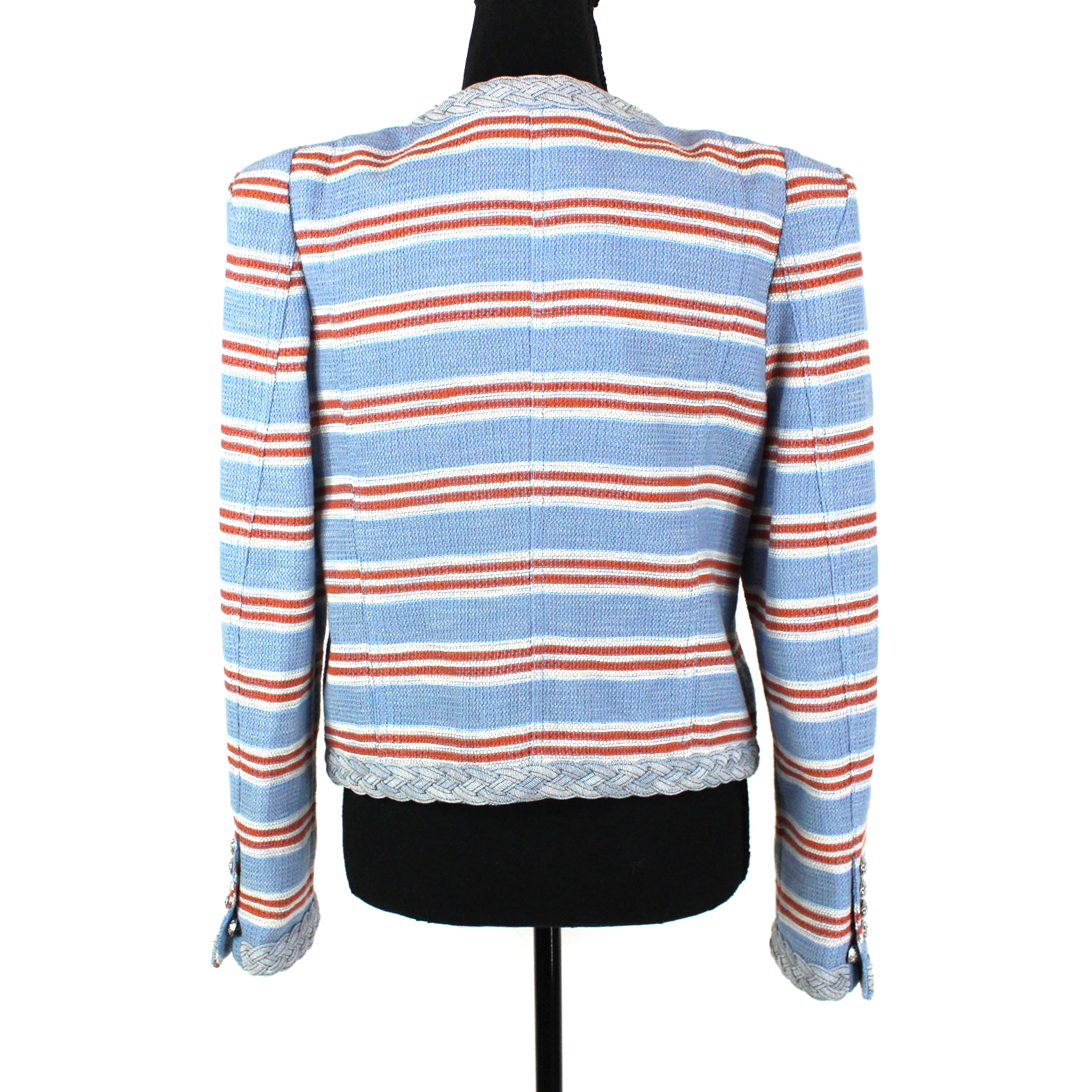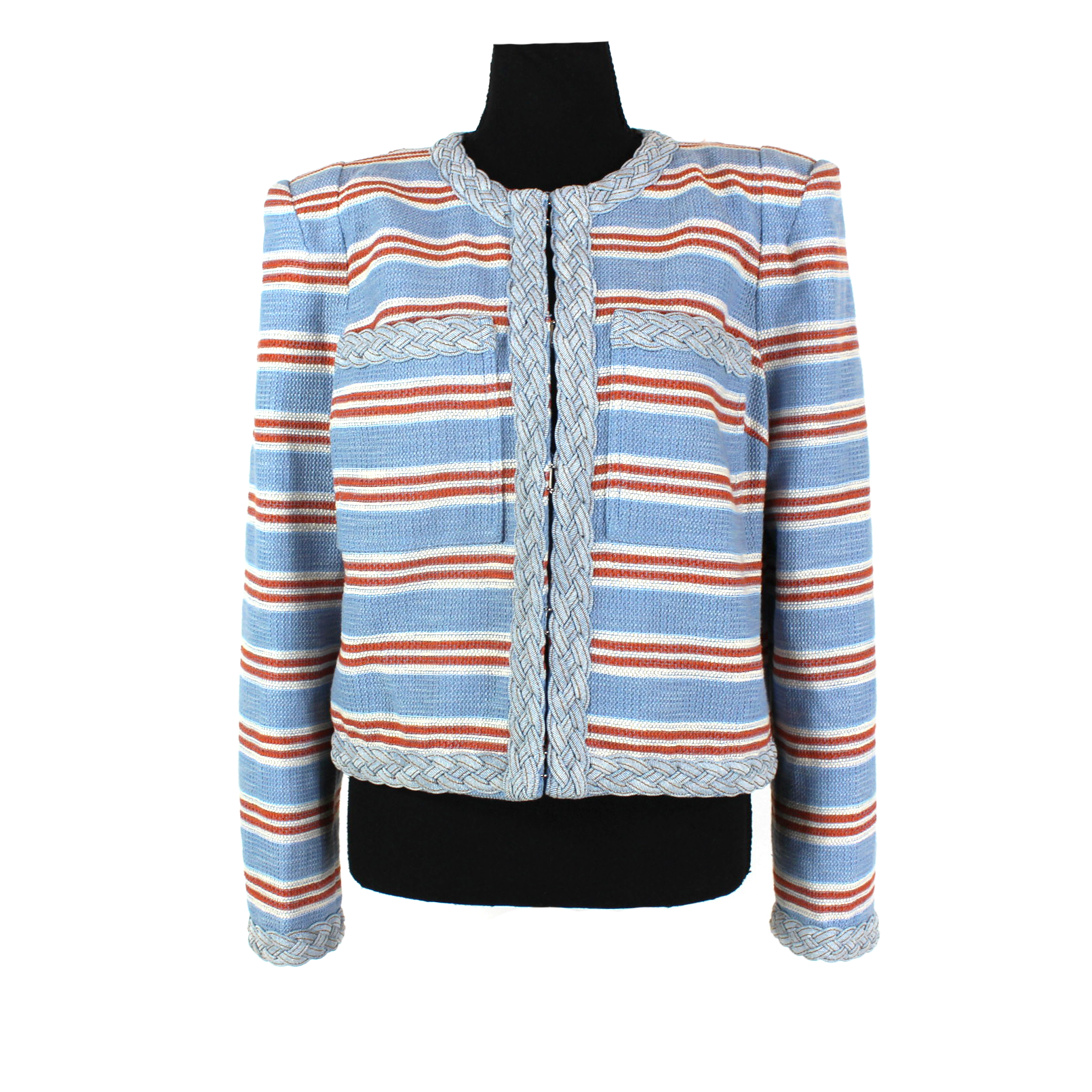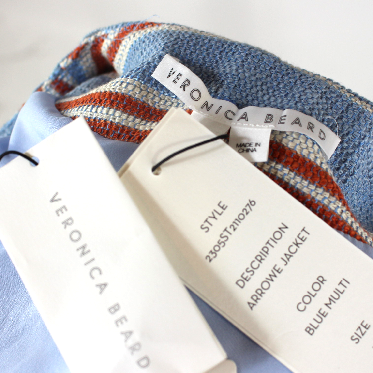 Veronica Beard Arrowe Striped Multicolor Blue Braided Trim Jacket Blazer