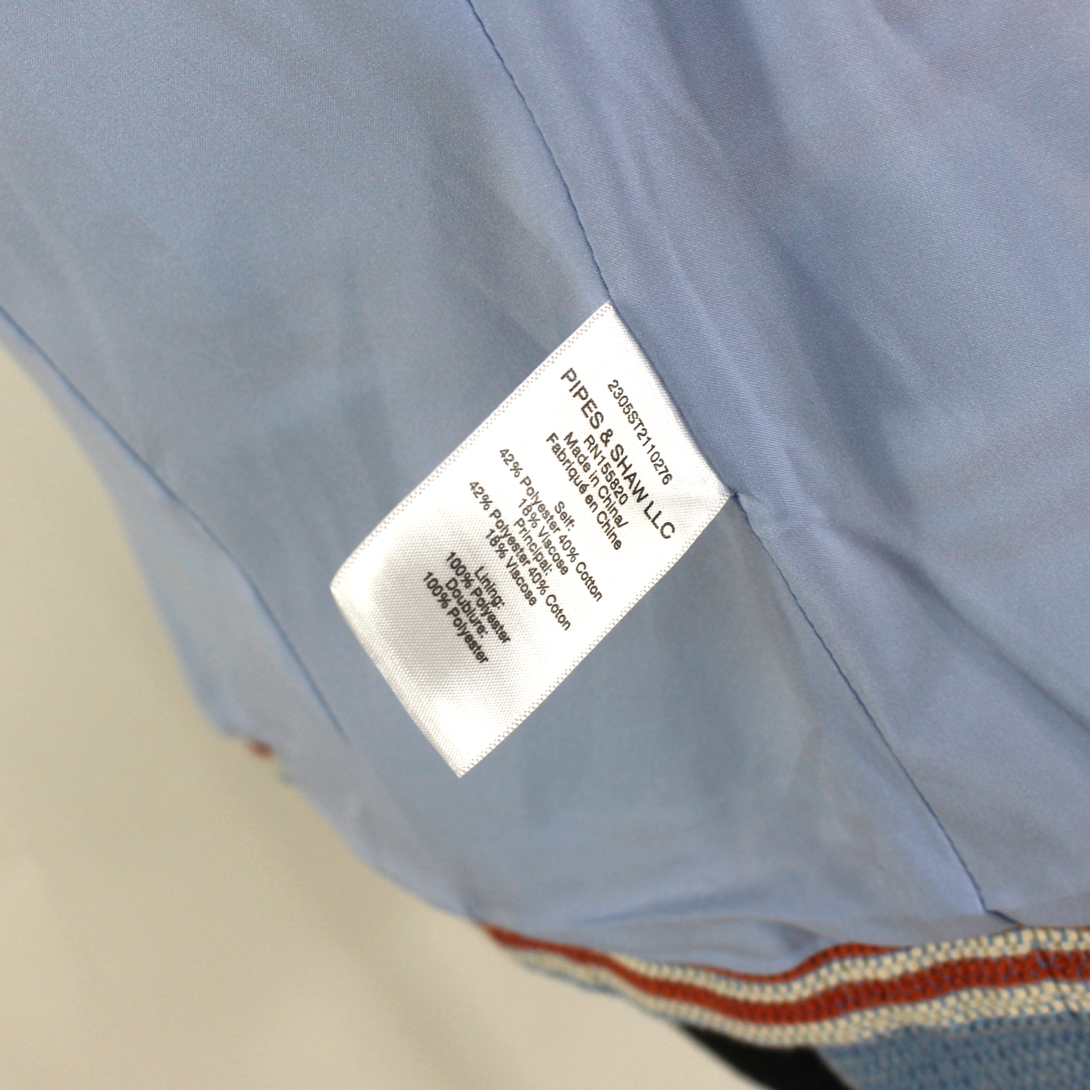 - Outer: 42% polyester, 40% cotton & 18% viscose