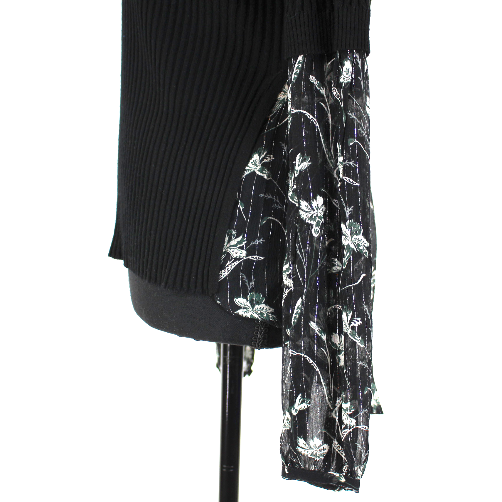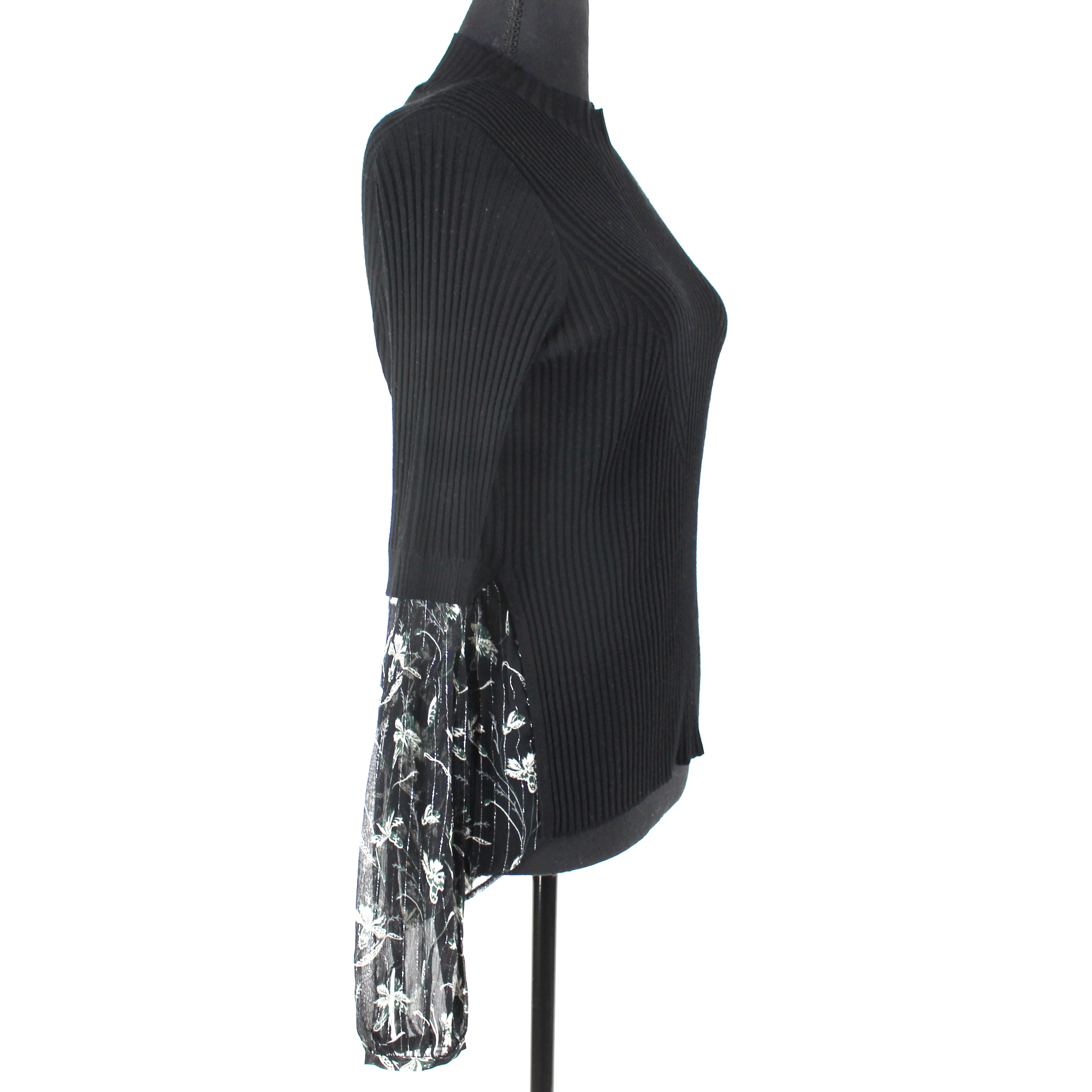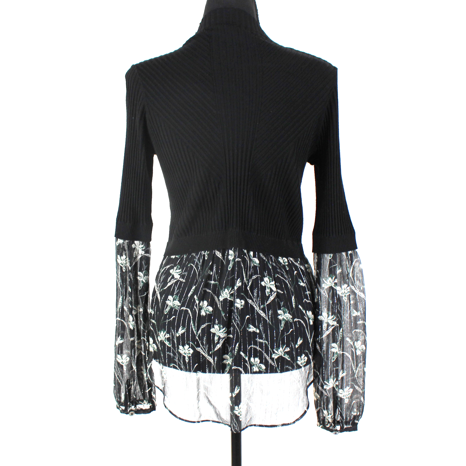 Veronica Beard Moon Mixed Media Combination Black Floral Metallic Silk Sweater
