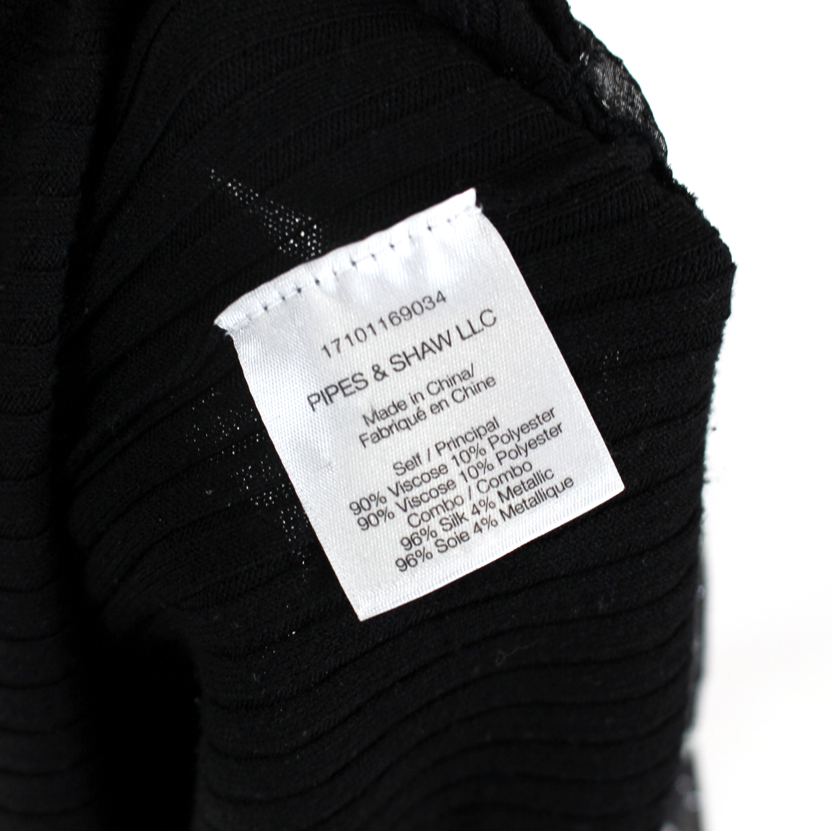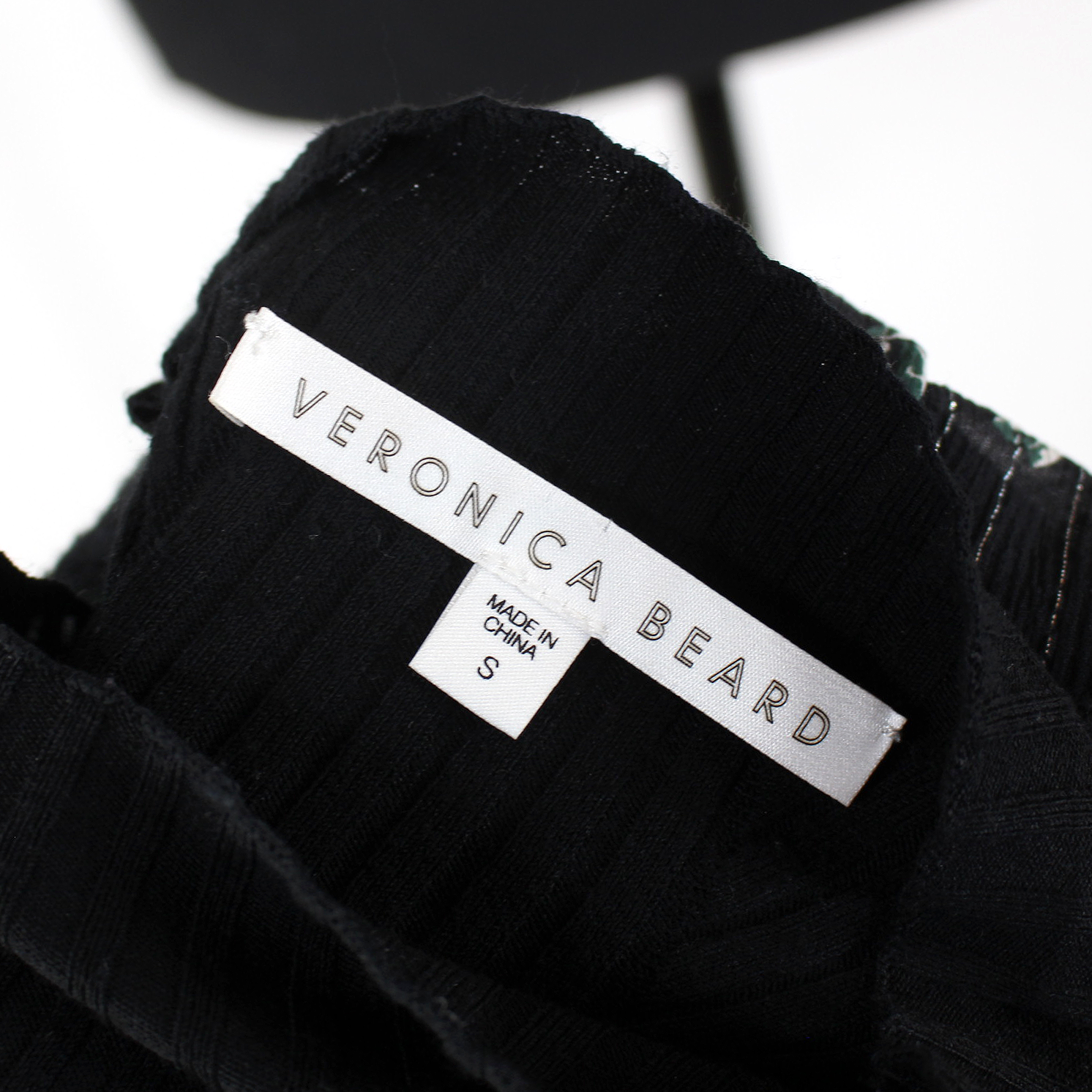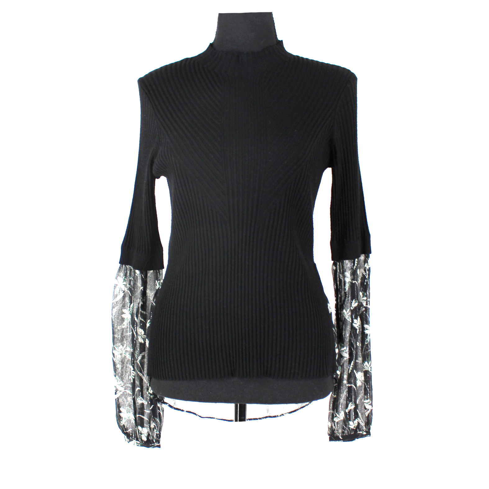 Veronica Beard Moon Mixed Media Combination Black Floral Metallic Silk Sweater