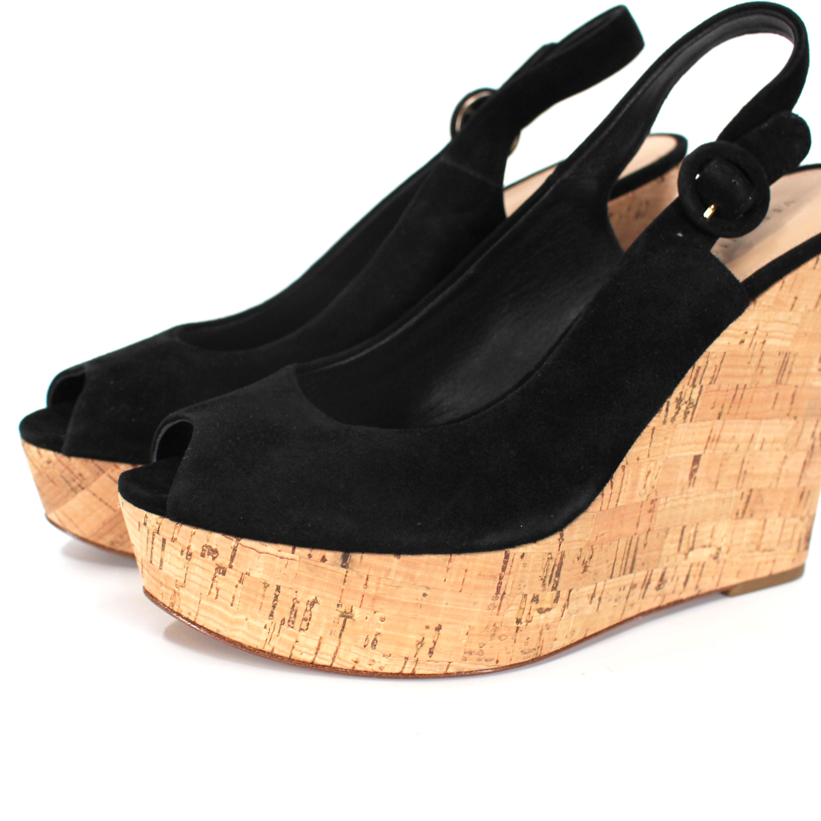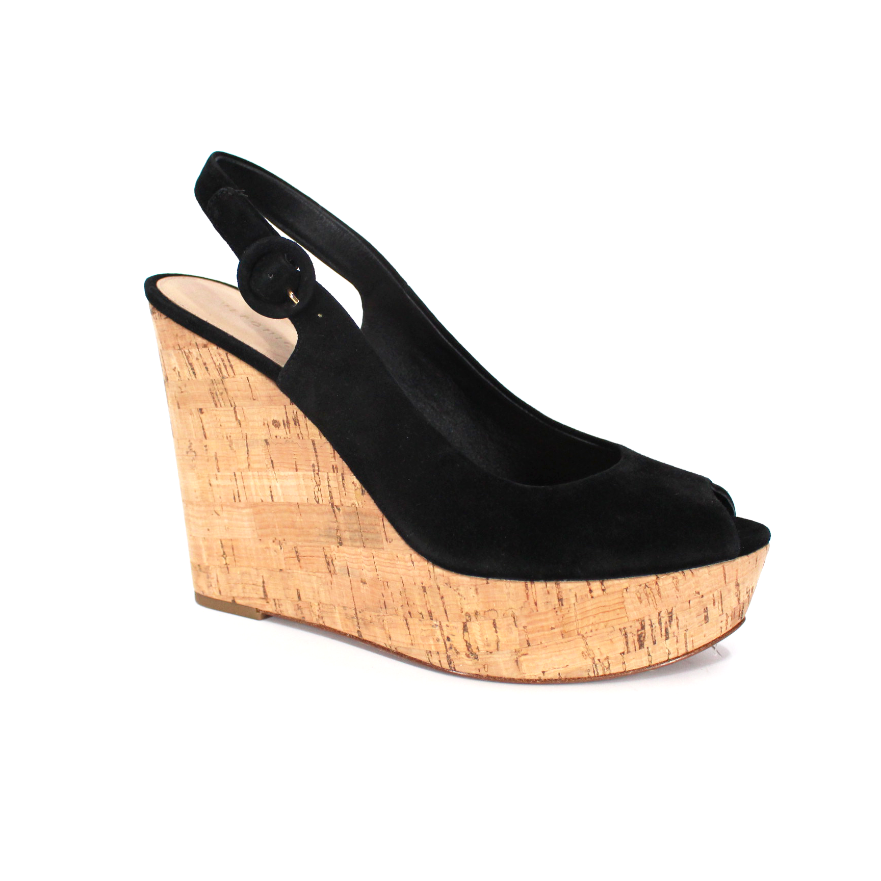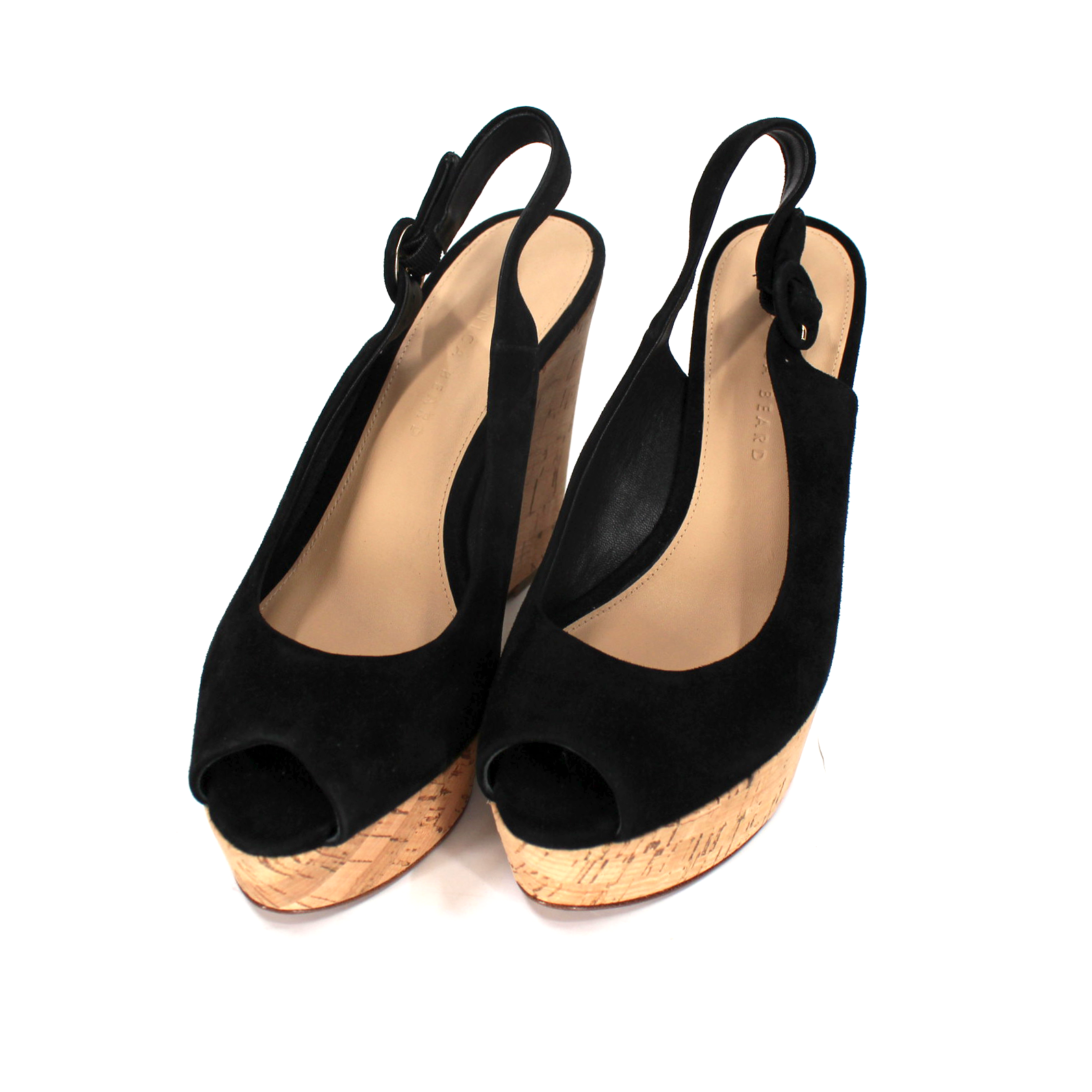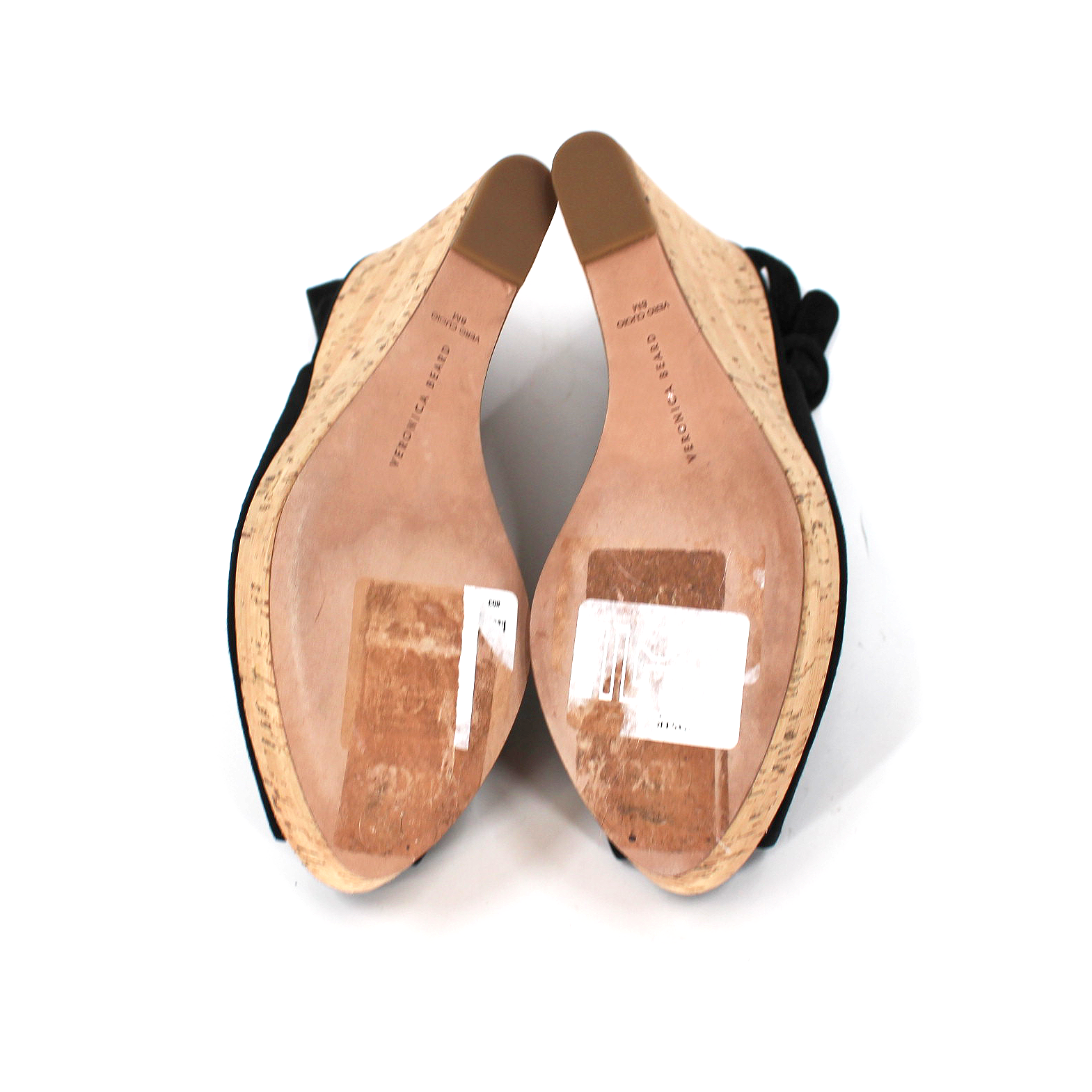 Veronica Beard Black Suede Peep Toe Cork Wedge Platform Sandal Shoes