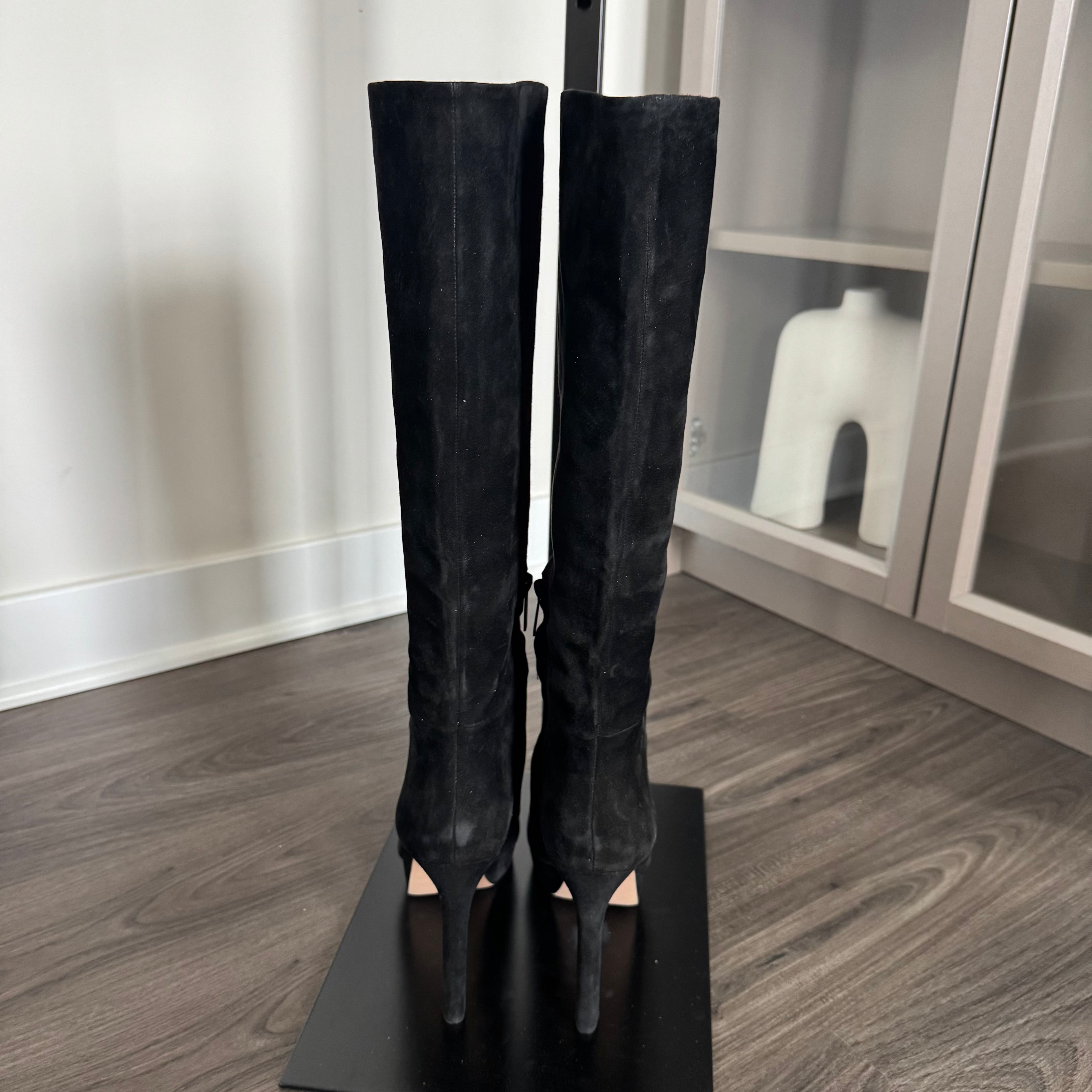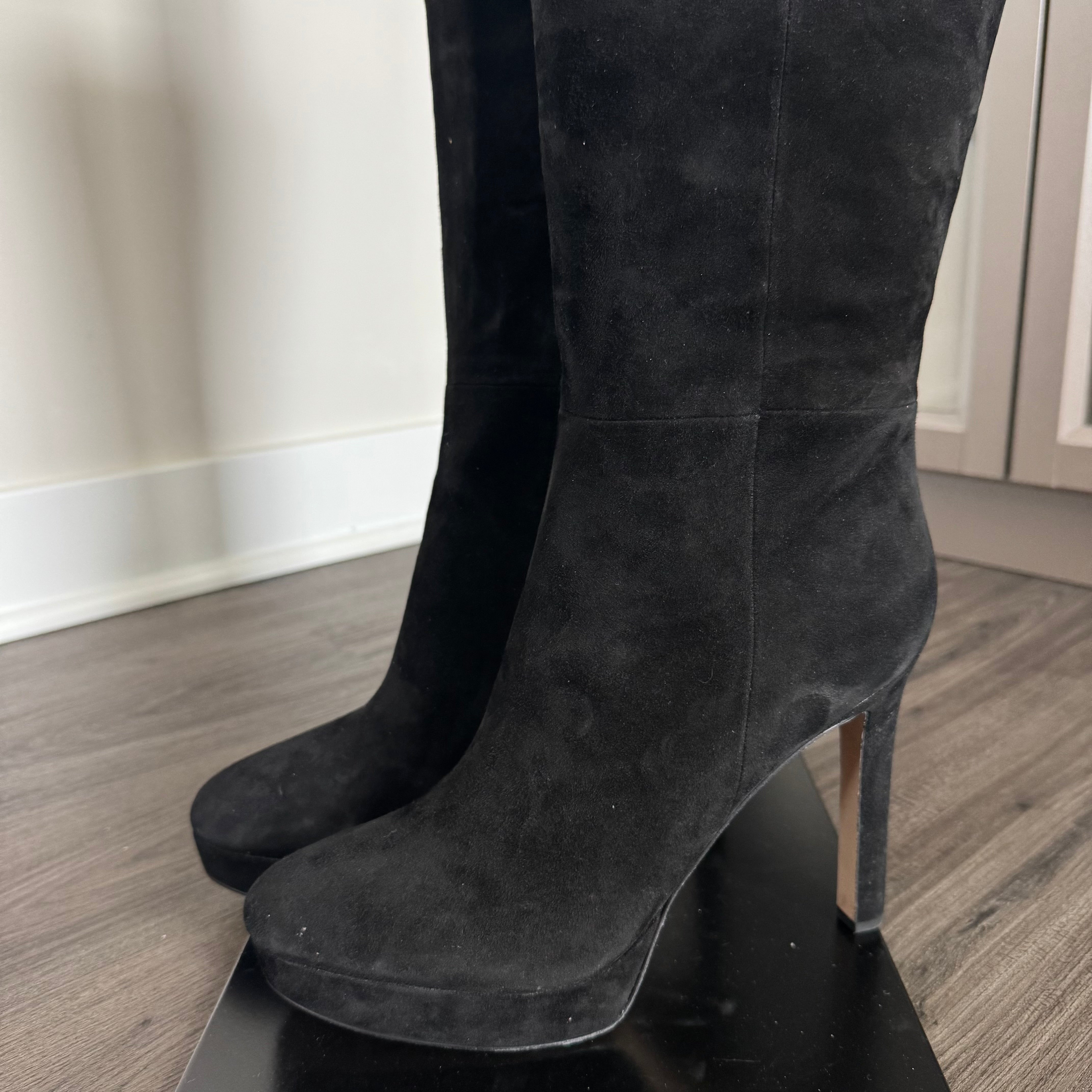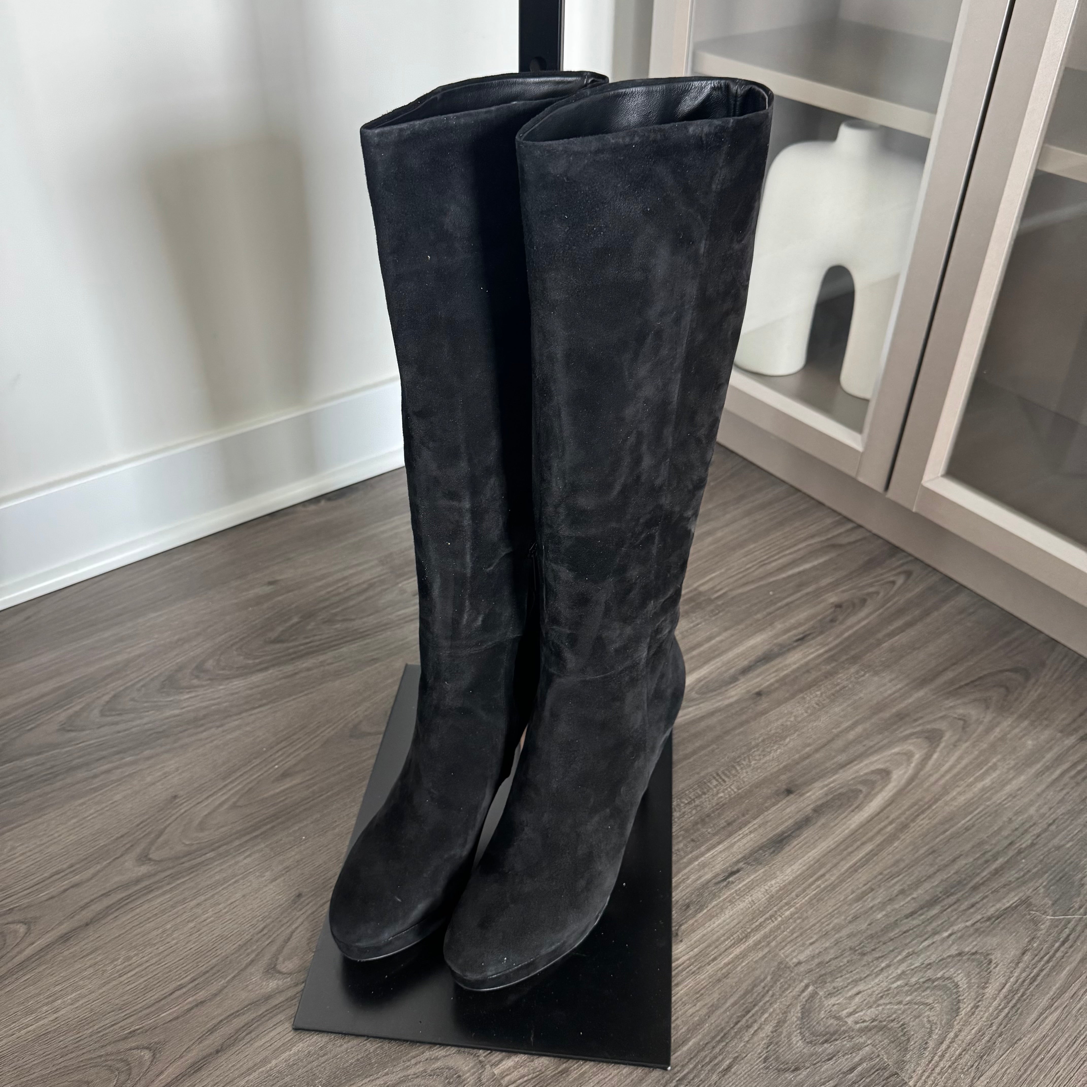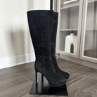 Veronica Beard Dali Black Suede Leather Platform Tall Stiletto Heel Boots