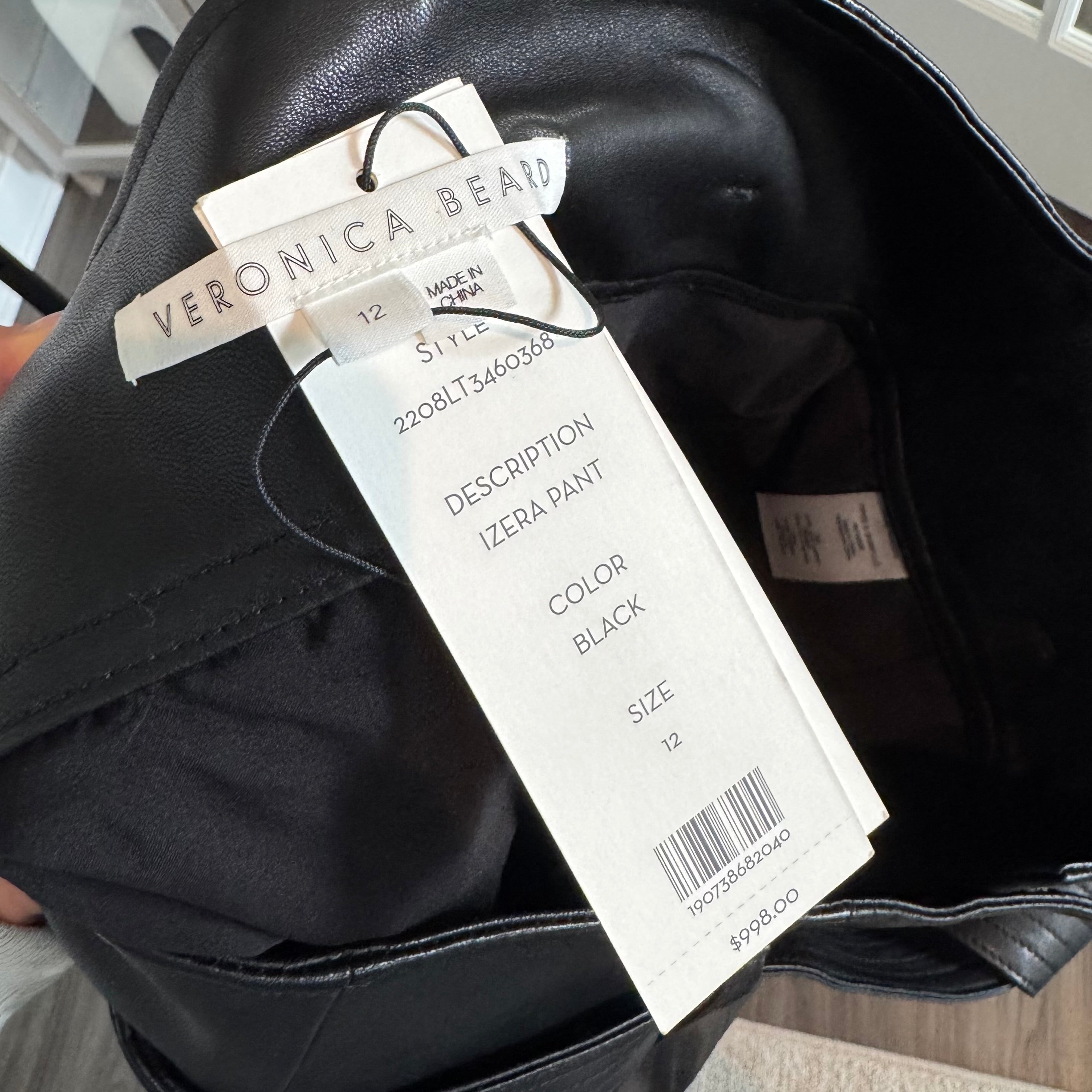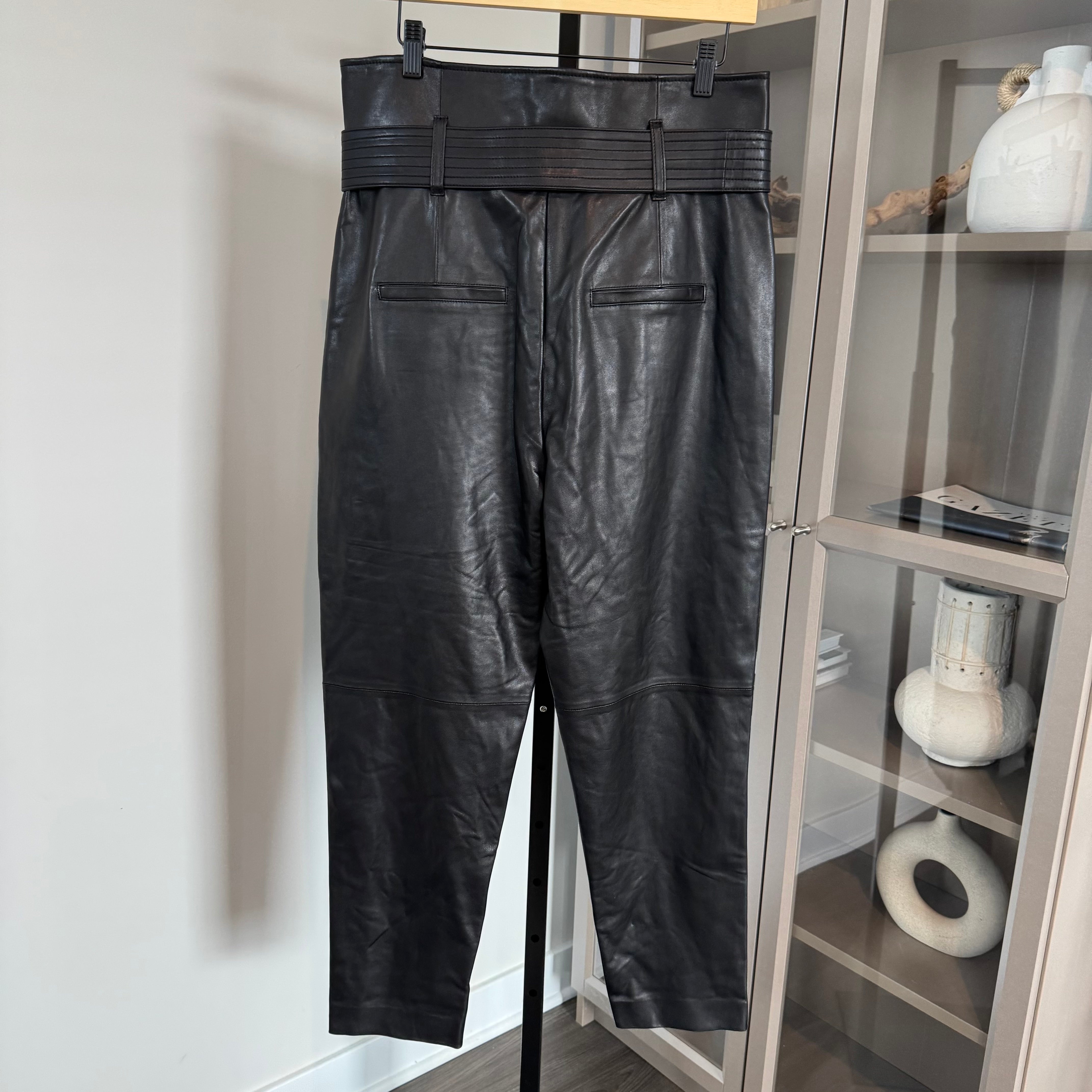 Veronica Beard Izera Black Lamb Leather Paper Bag Belted Pants