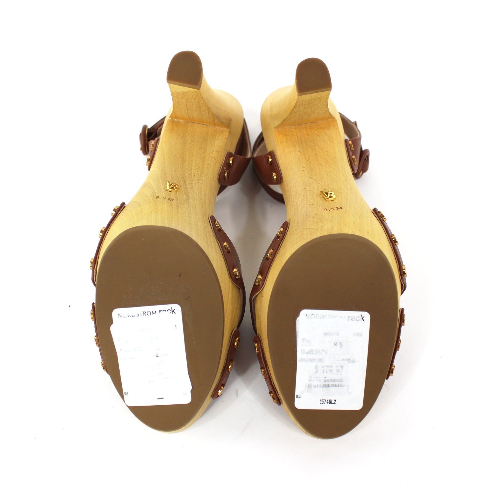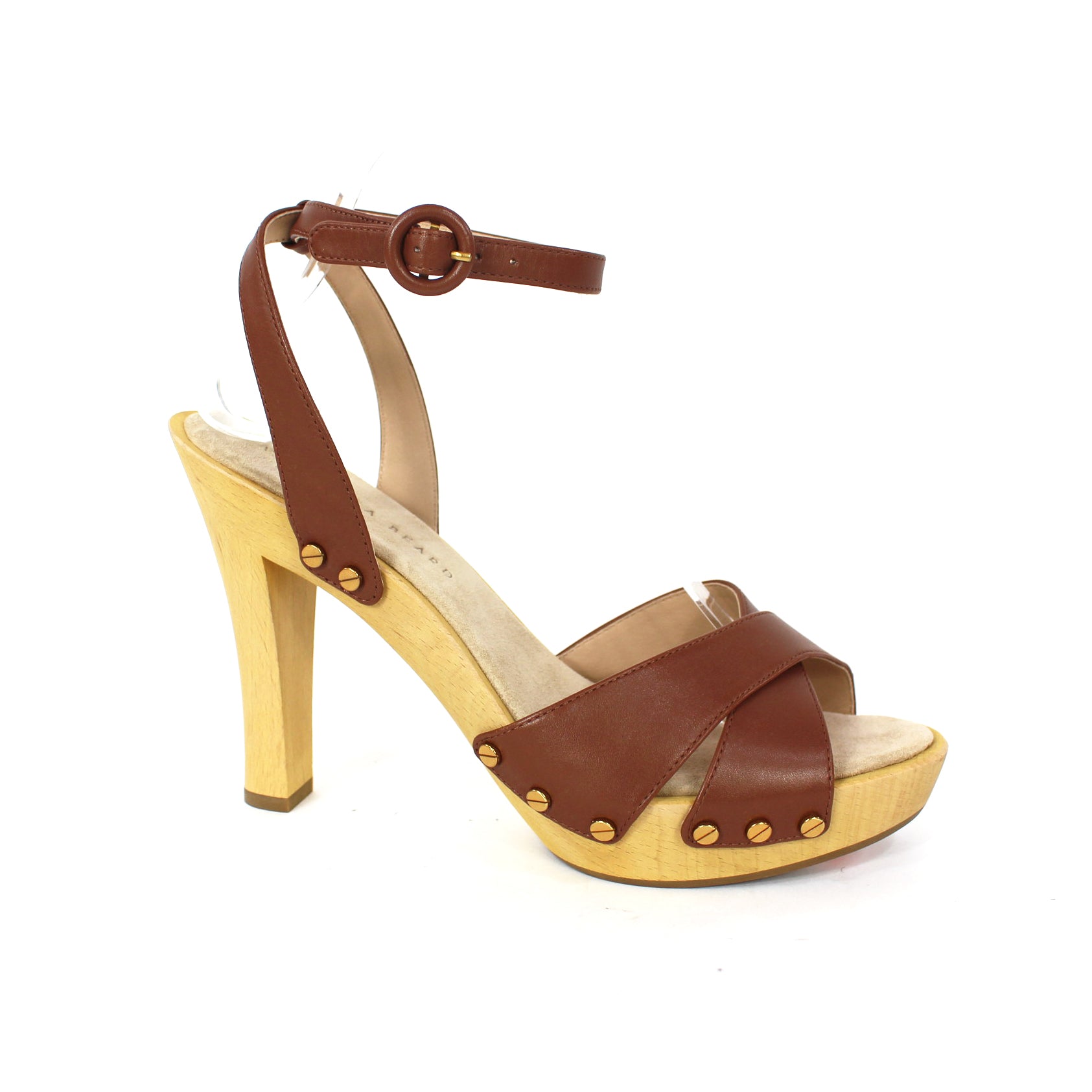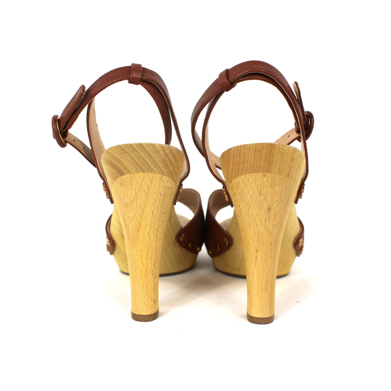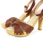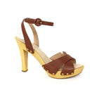 Veronica Beard Lamont Wooden Heeled Platform Brown Leather Strap Sandals