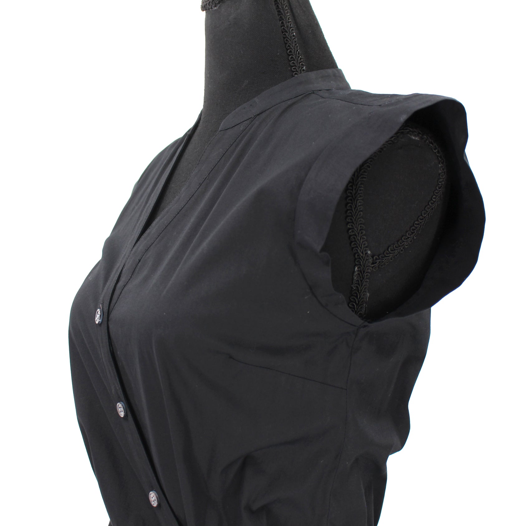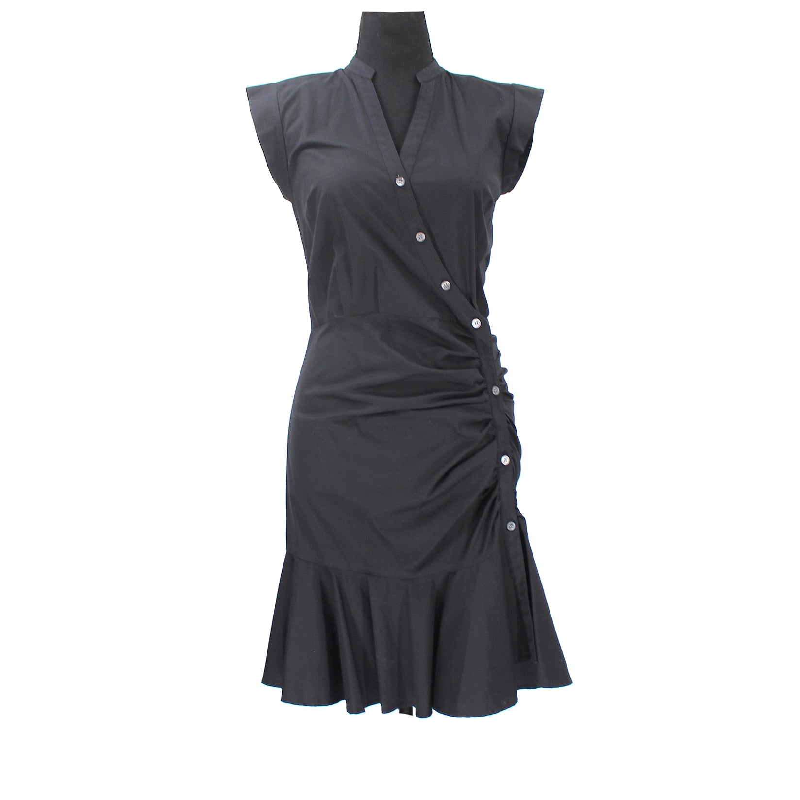 Veronica Beard Bell Black Ruched Button Up Poplin Shirt Dress
