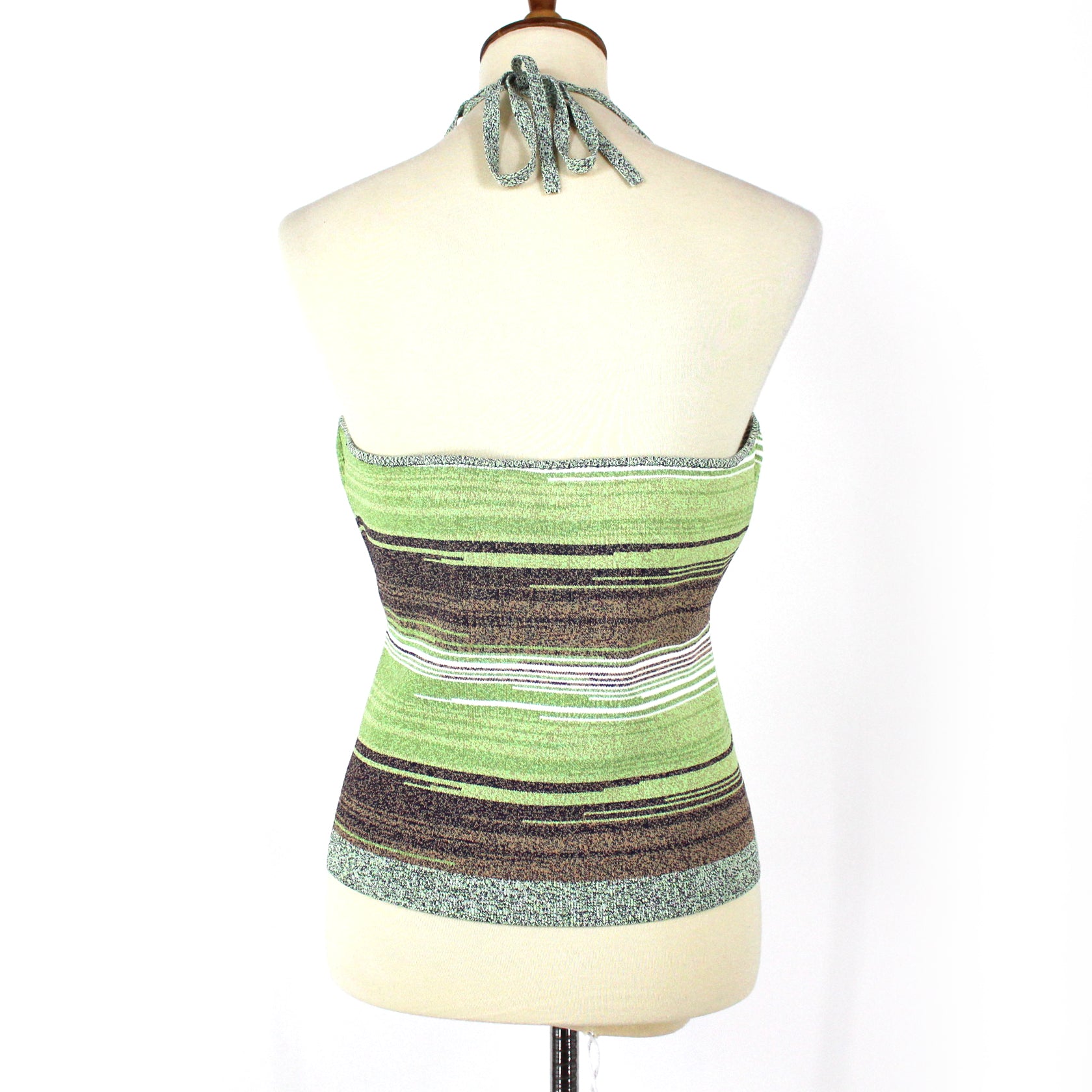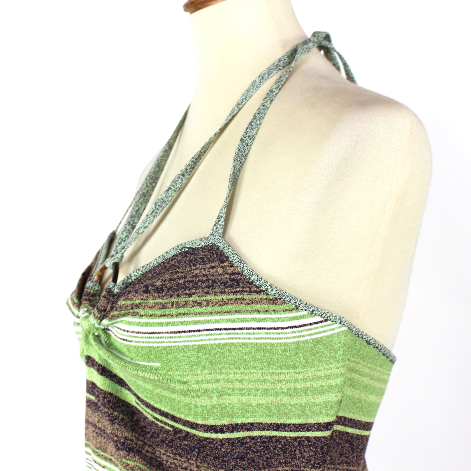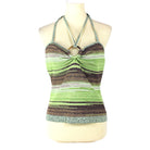 Veronica Beard Velza Ribbed Knit Stretch Multicolor Green Brown Halter Top