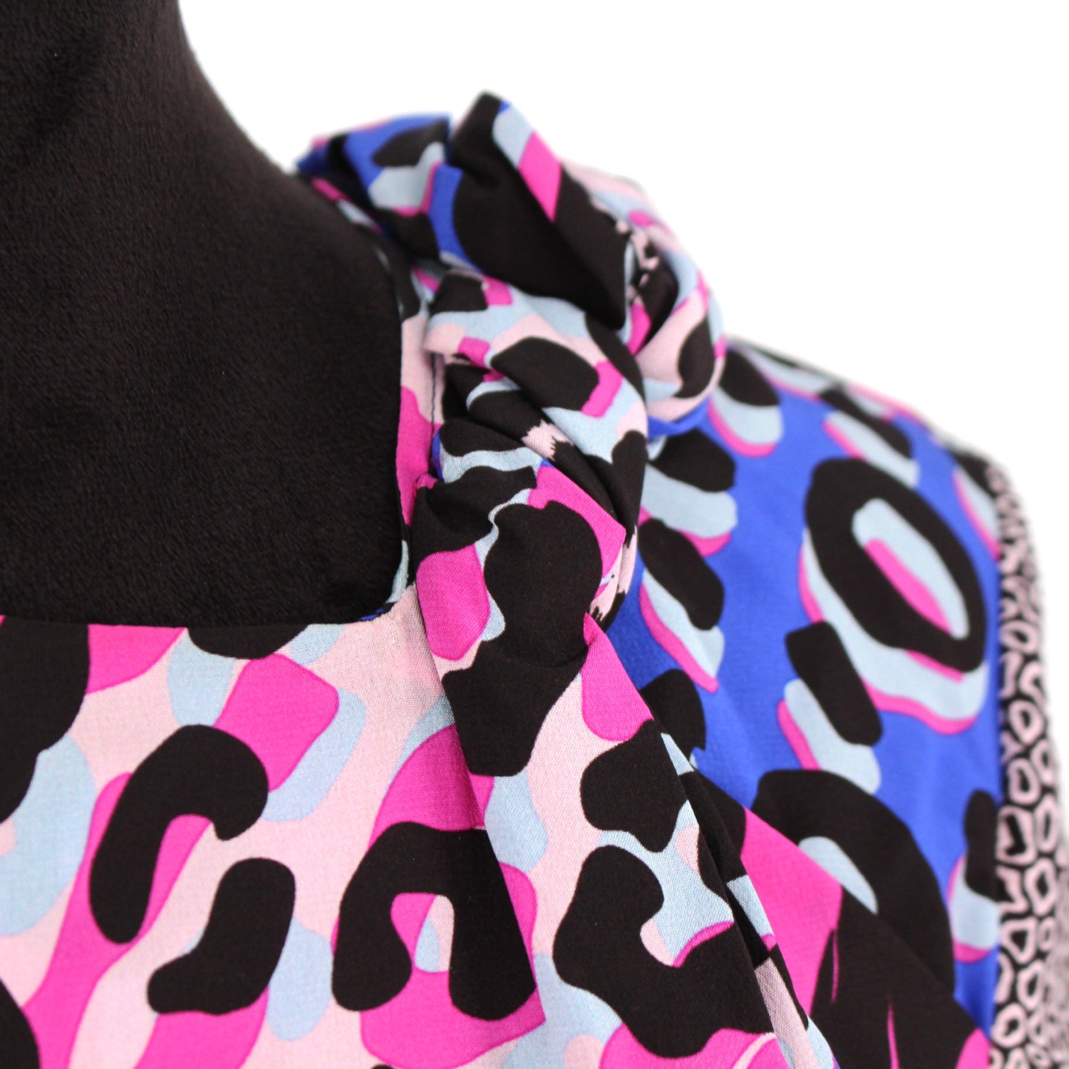 - Braided twisted detail on right near neckline.