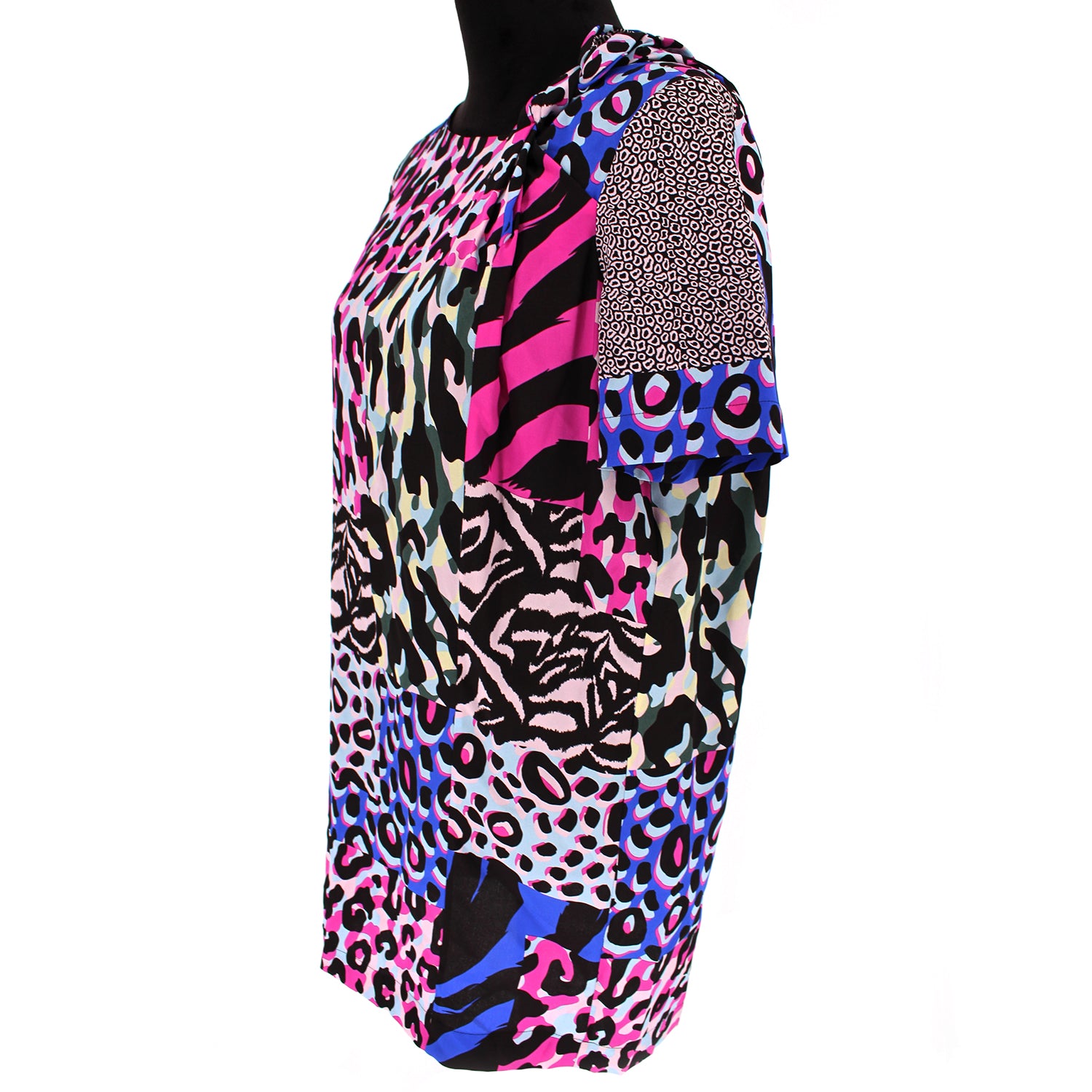 Vibrant and eye catching. This Versace t-shirt dress is everything but simple. Featuring different animals patterns in an array of colors.