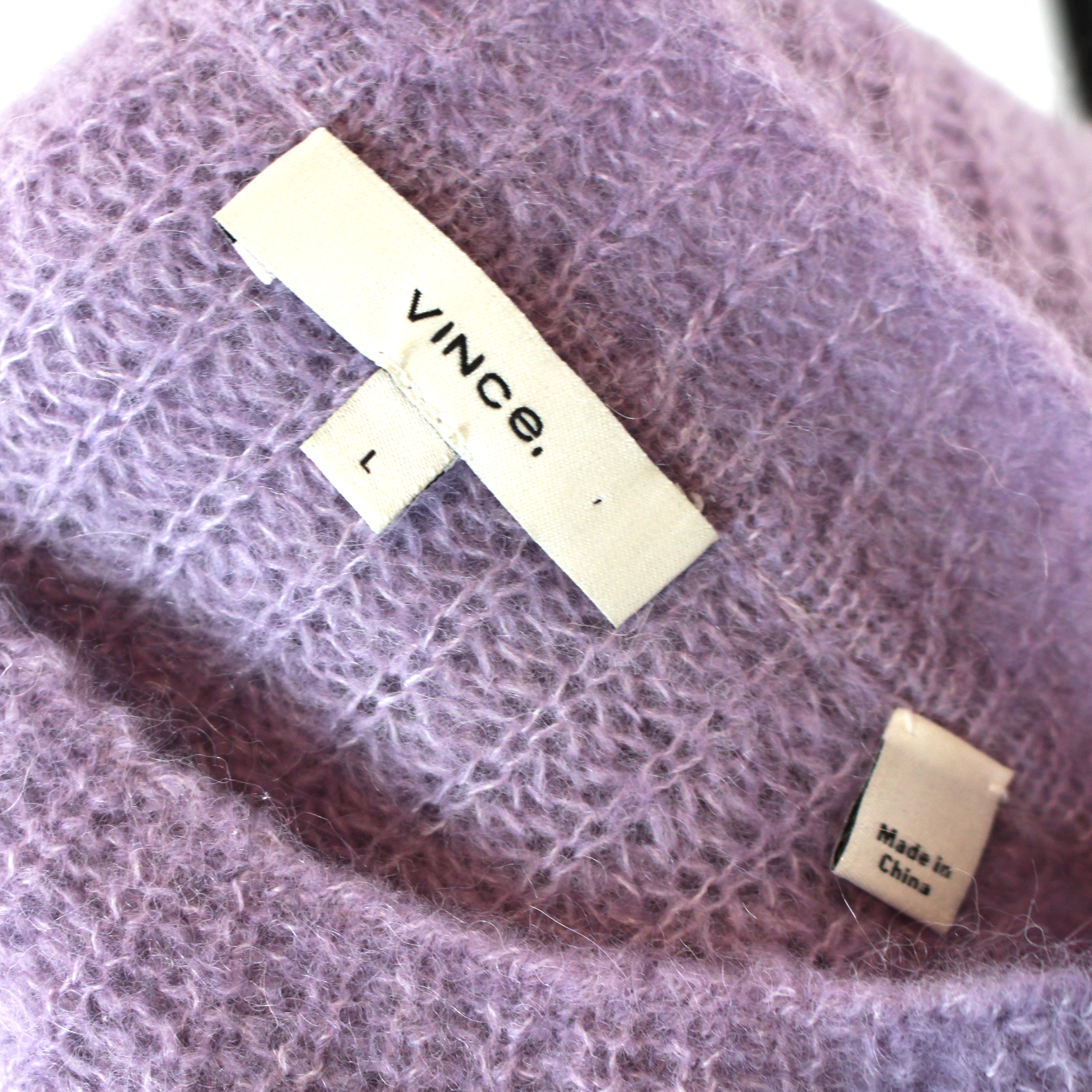 VINCE. Lilac Purple Featherweight Ribbed Knit Crewneck Sweater