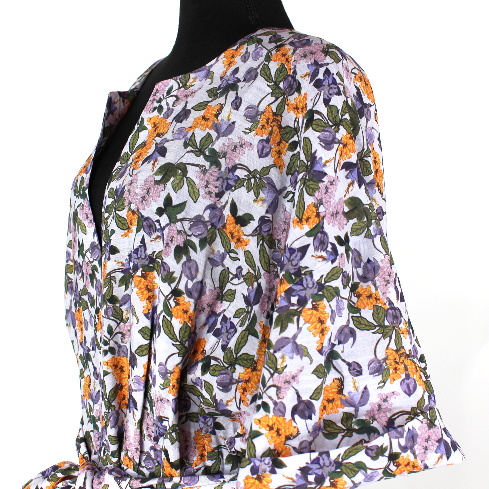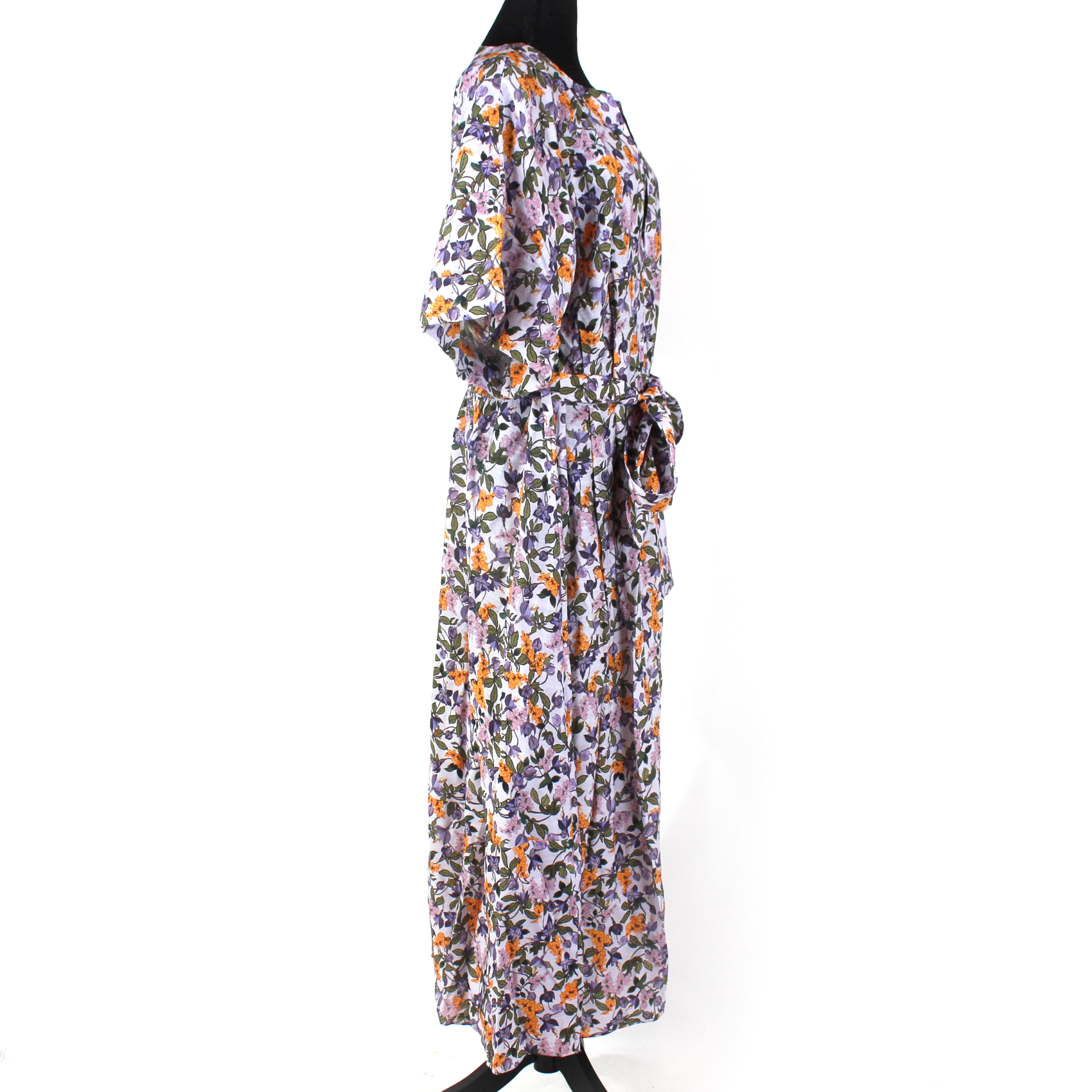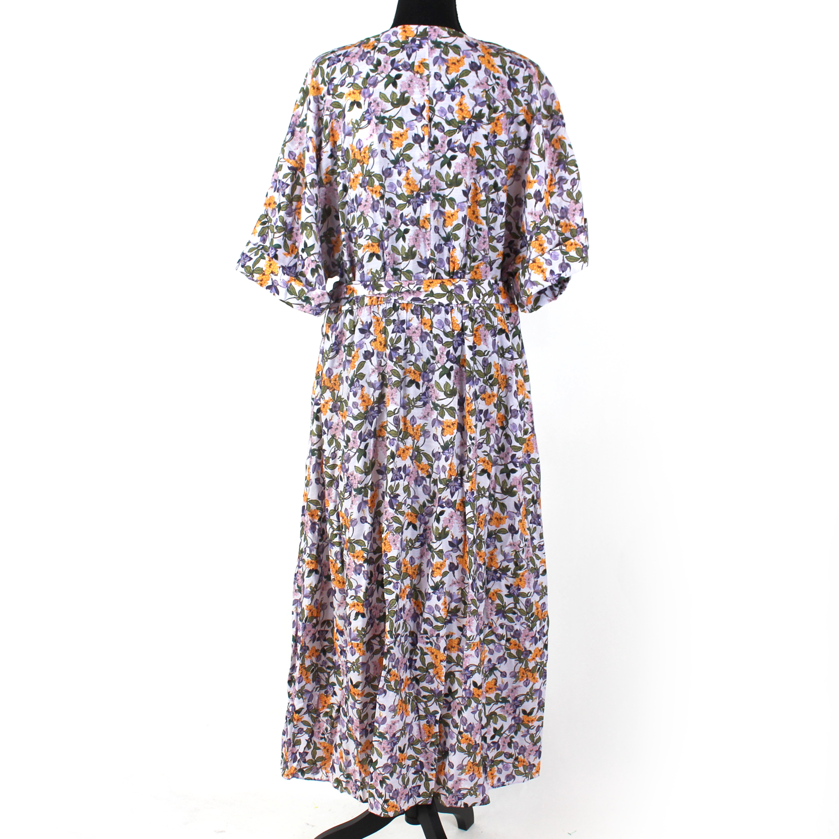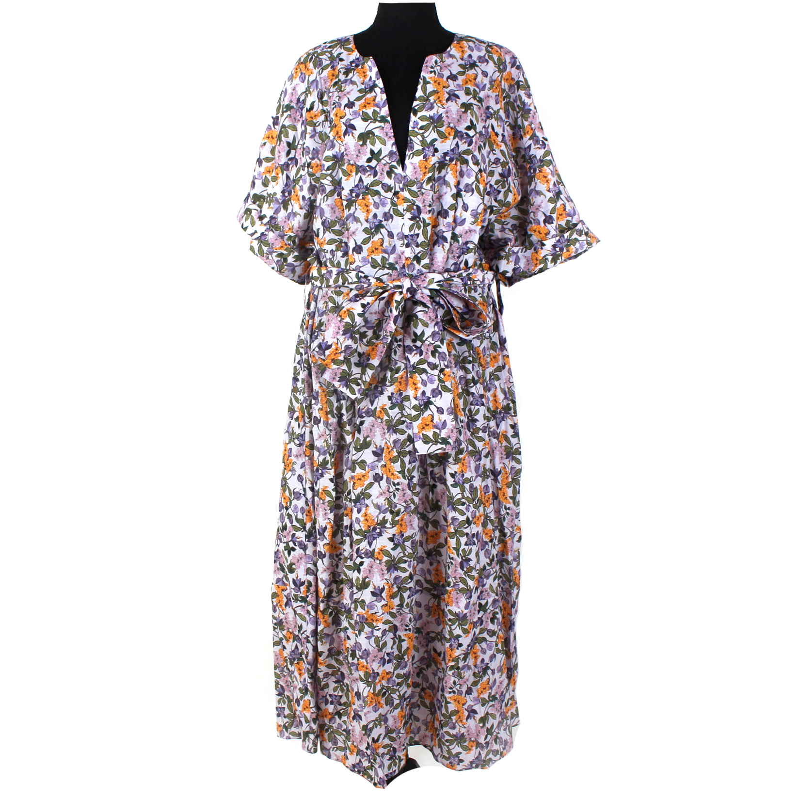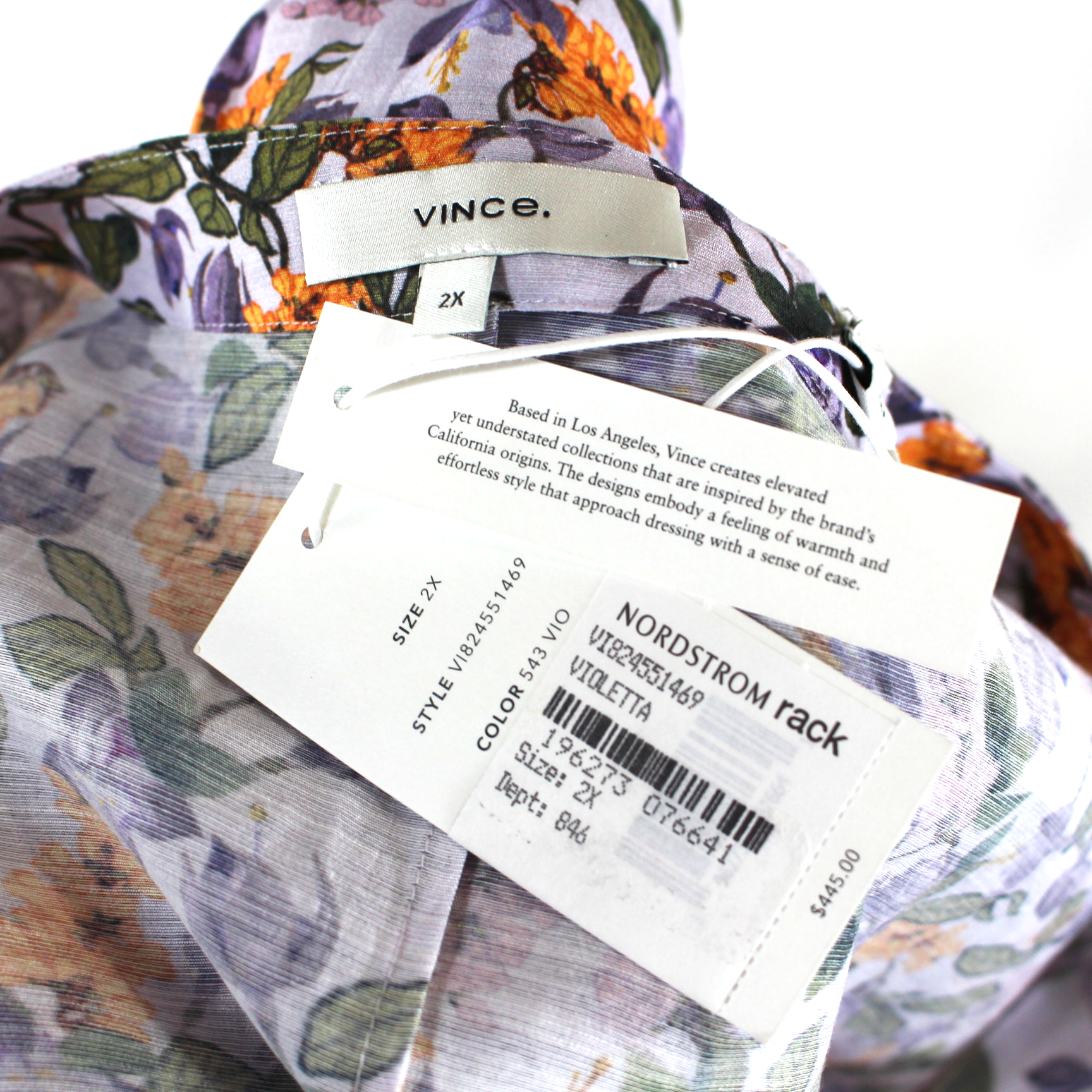 Vince Violetta Purple Floral V-Neck Short Sleeve Lightweight Midi Dress