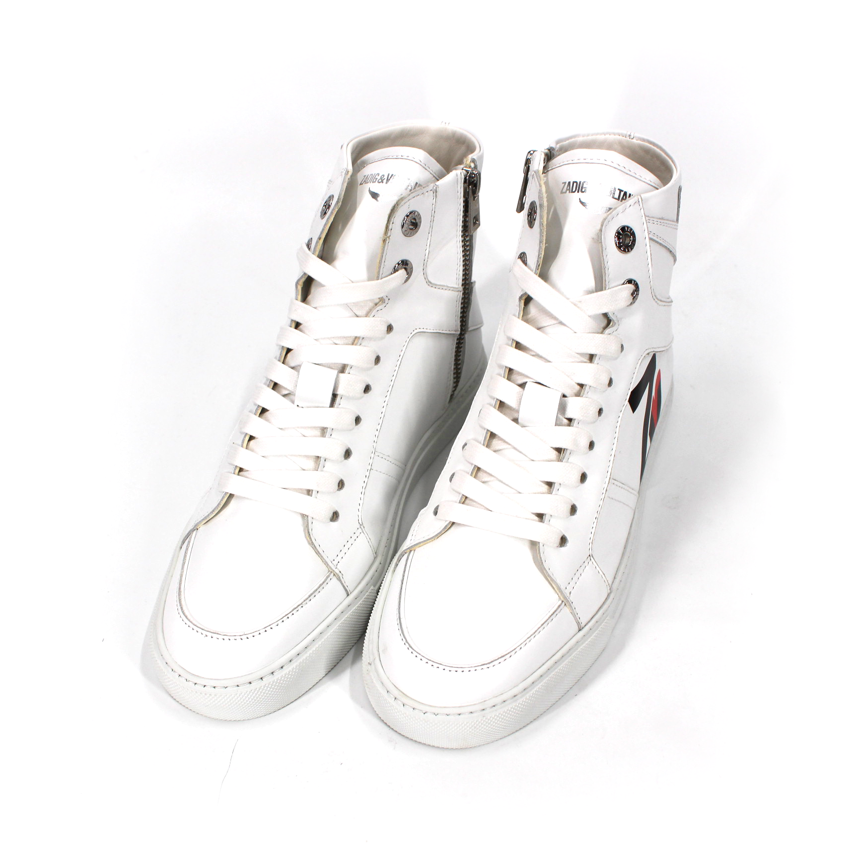 Zadig & Voltaire White Leather High Top Flash Heart Logo Sneakers