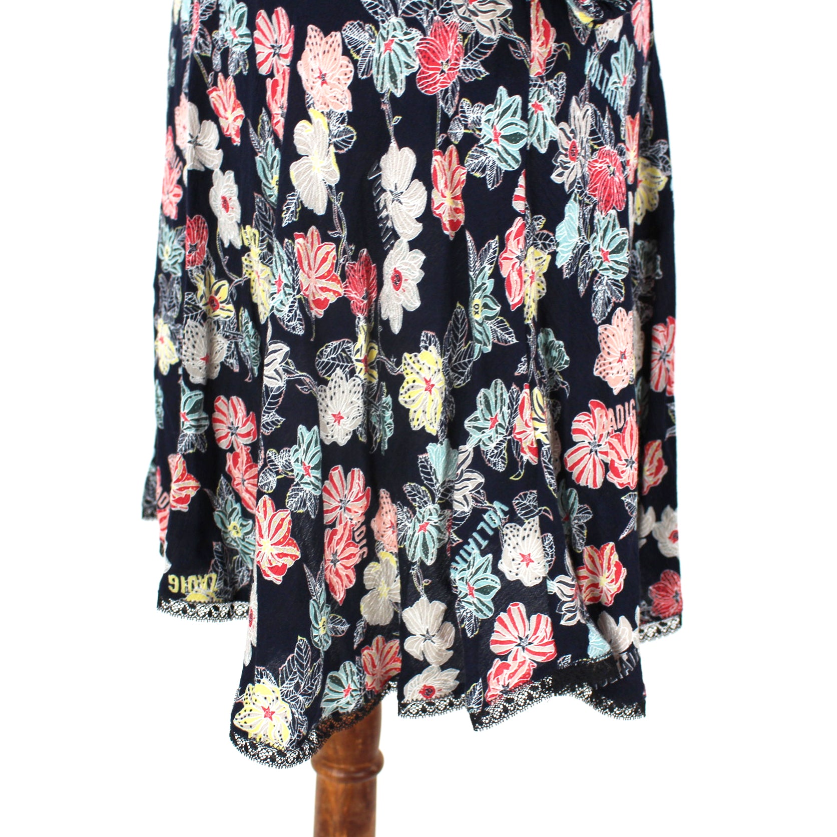 - Black lace trim hemline