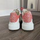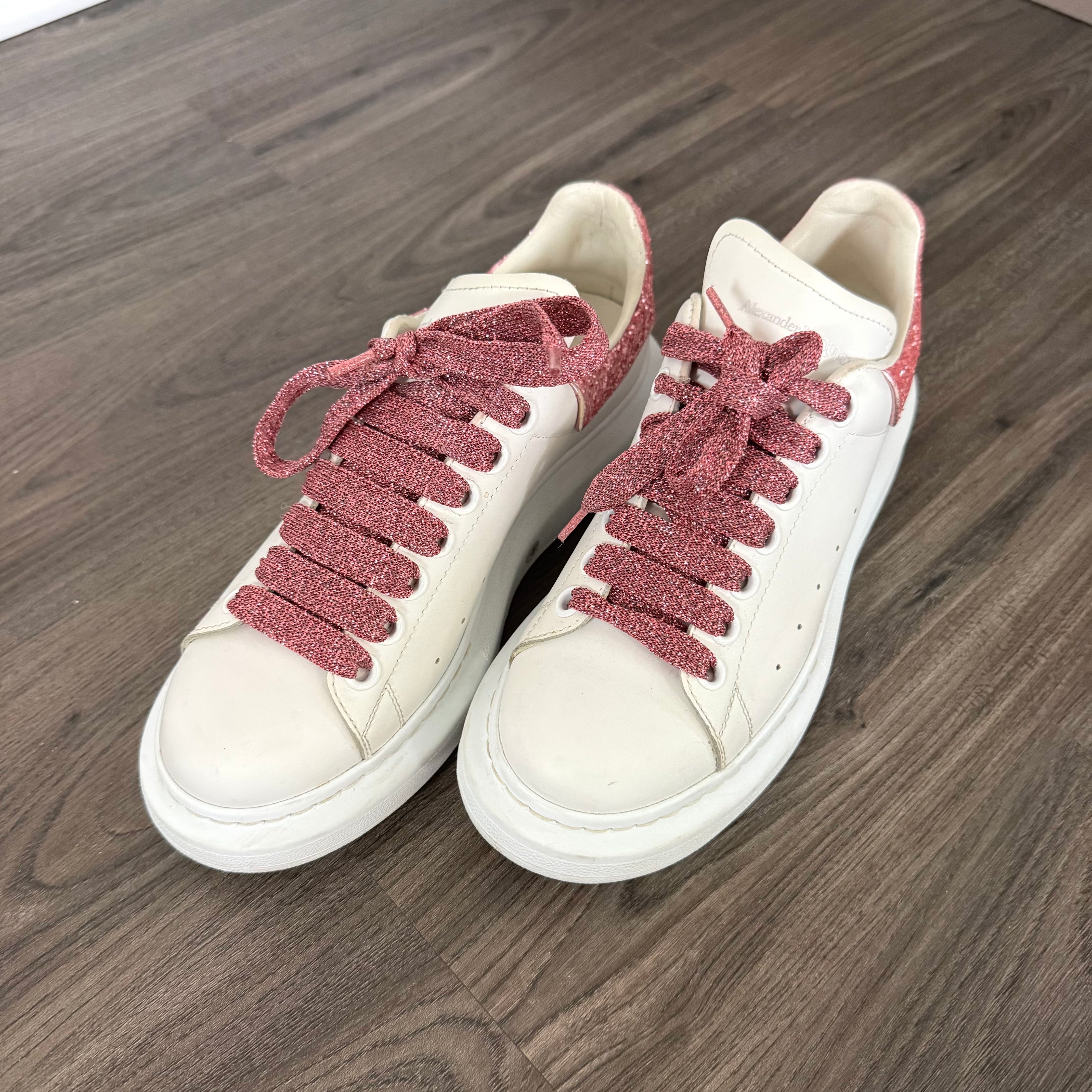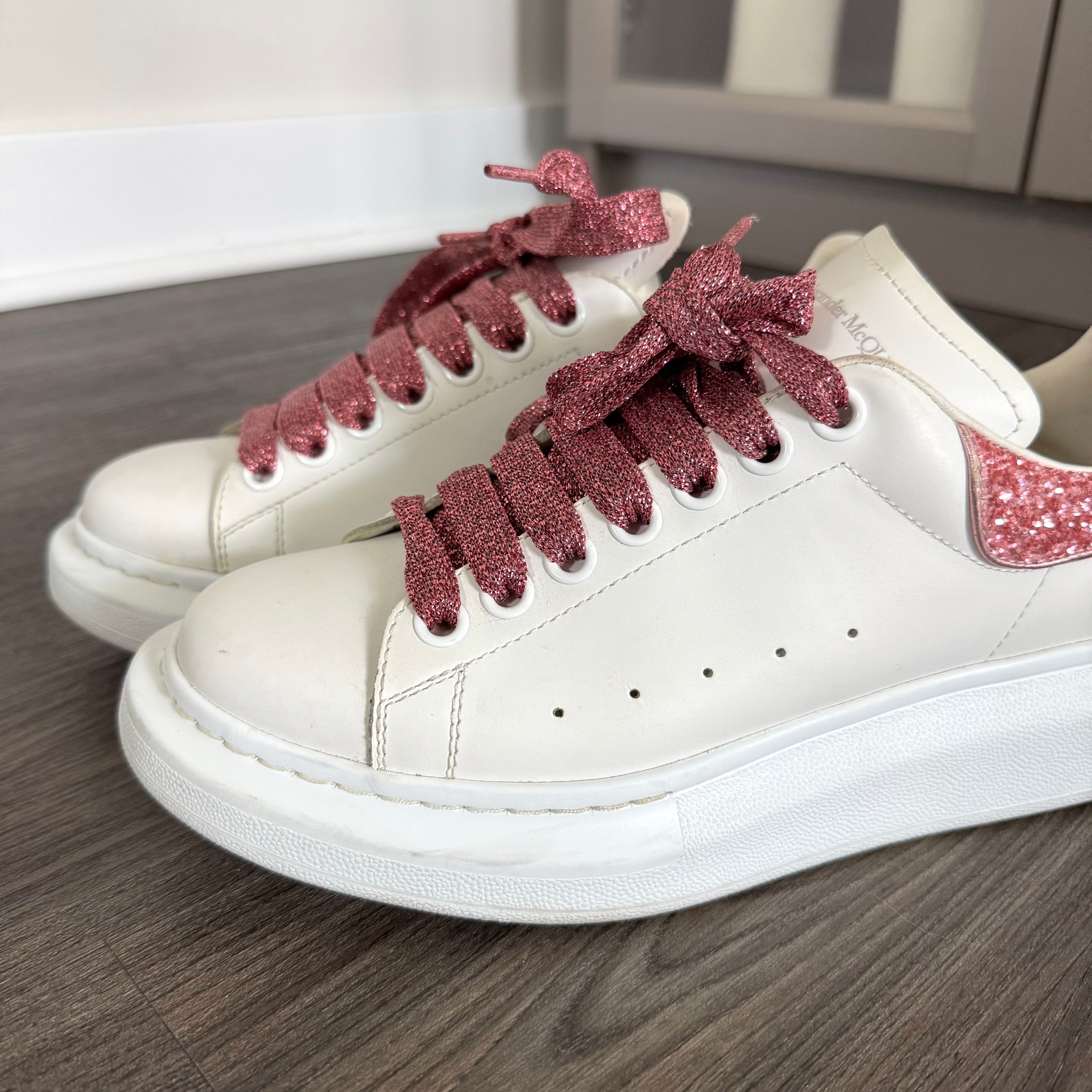 Alexander McQueen Oversized White Leather Pink Glitter Trim Laces Sneakers
