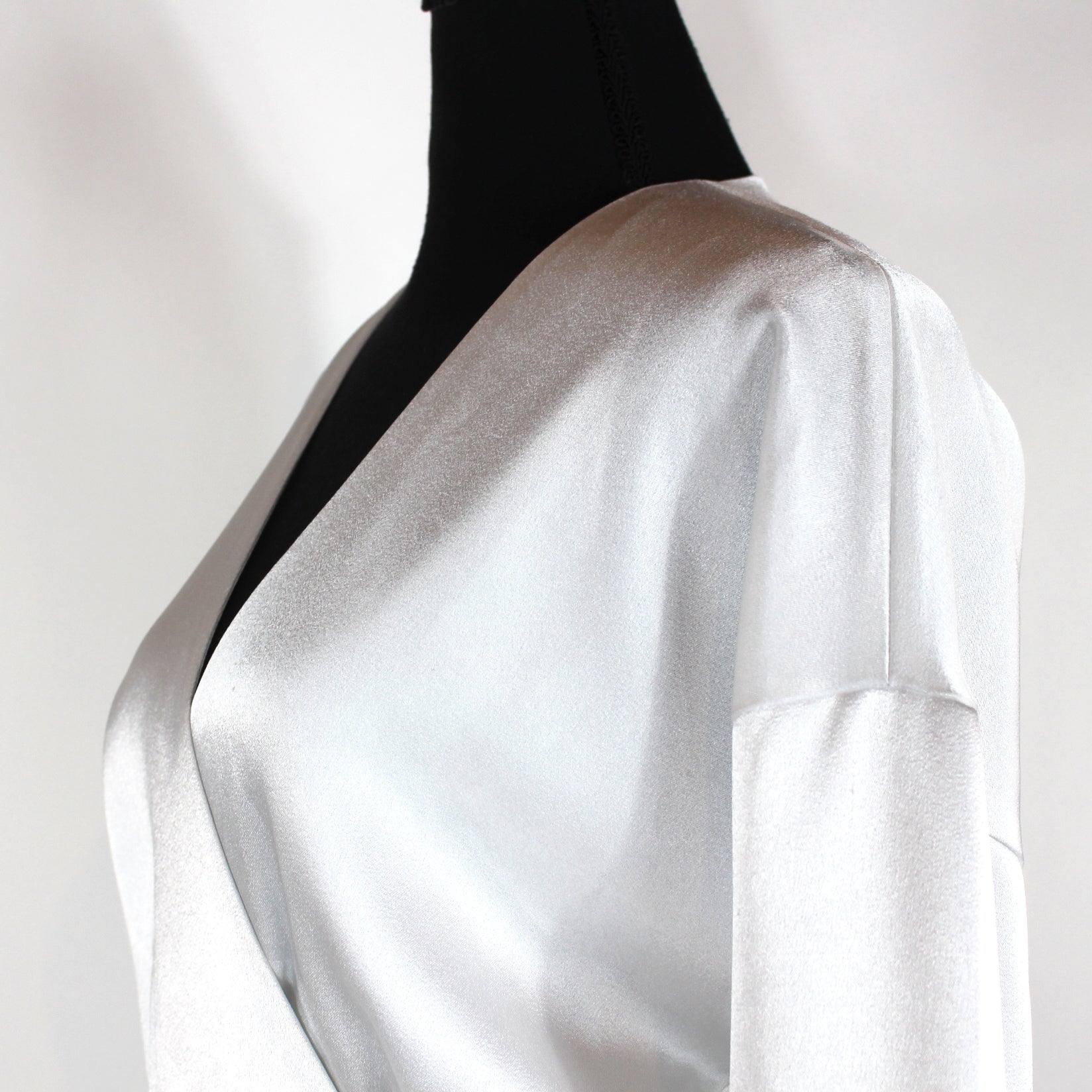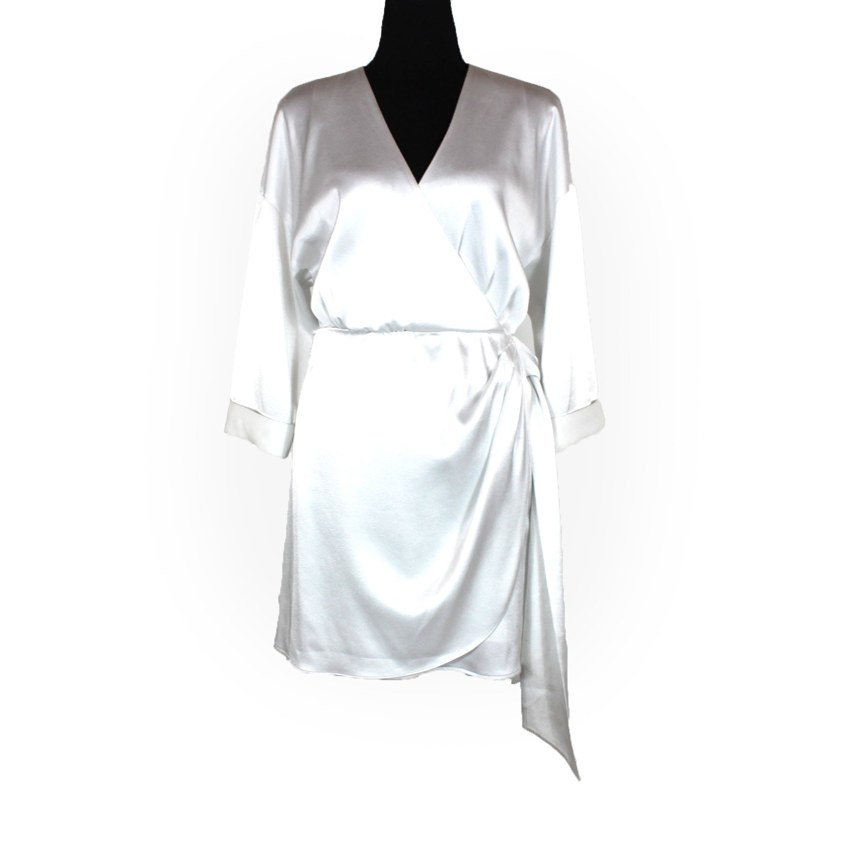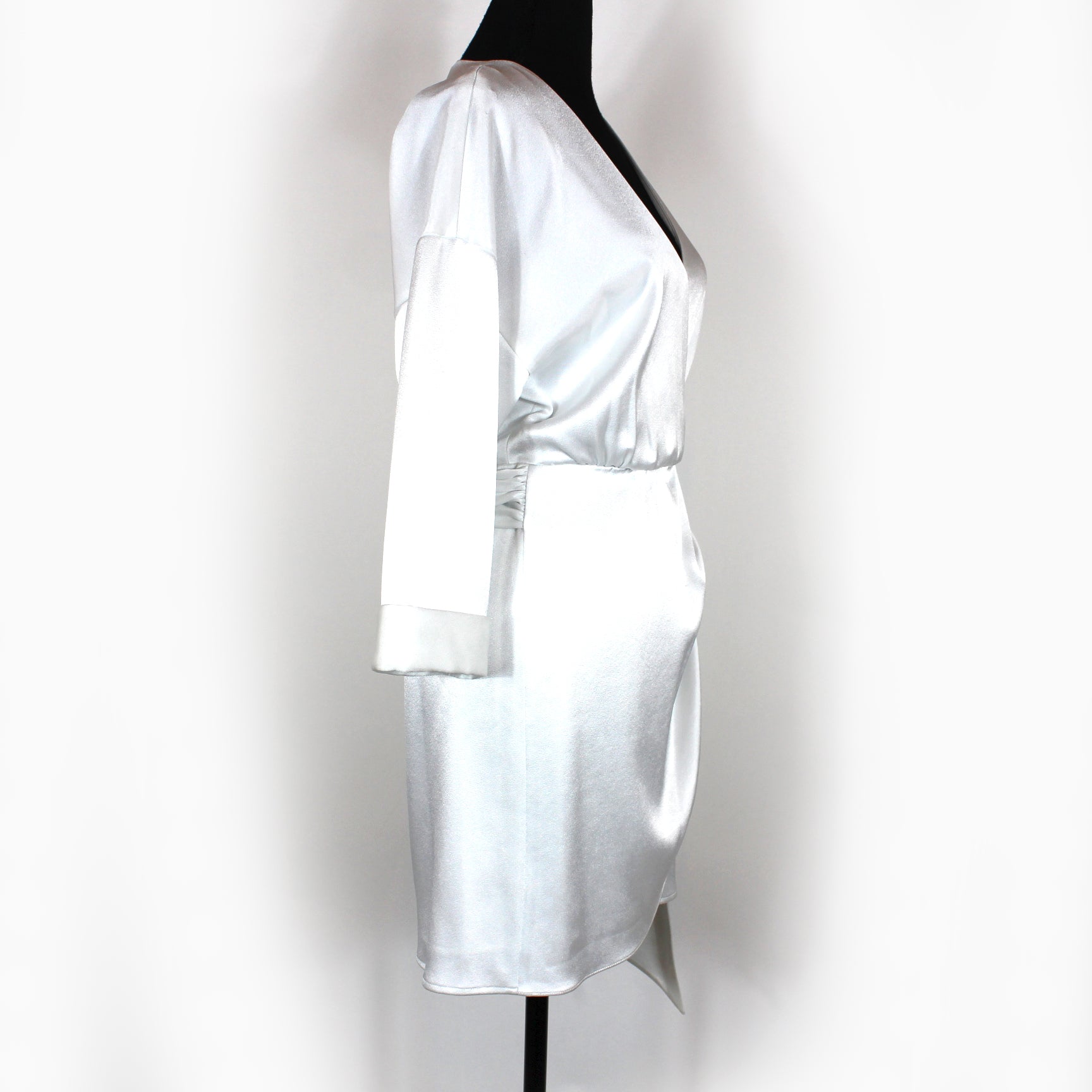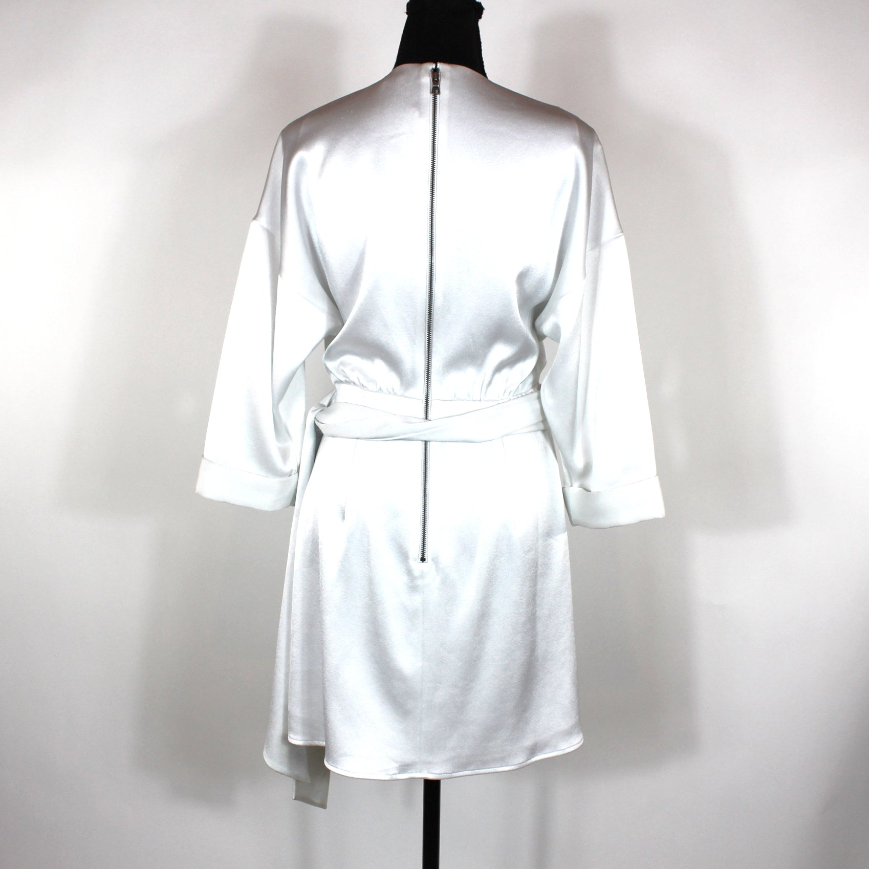 Alice + Olivia Ophelia White Satan Faux Wrap Belted Mini Dress