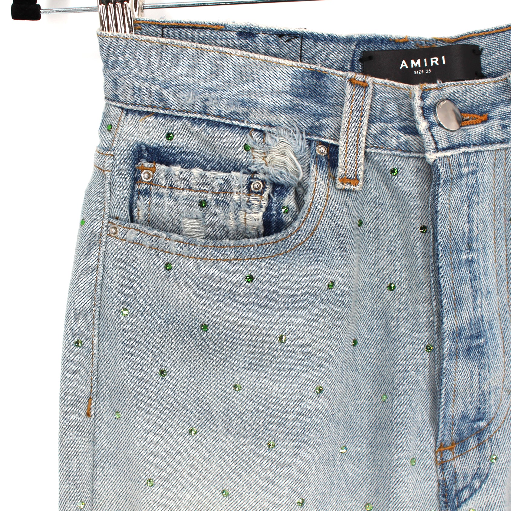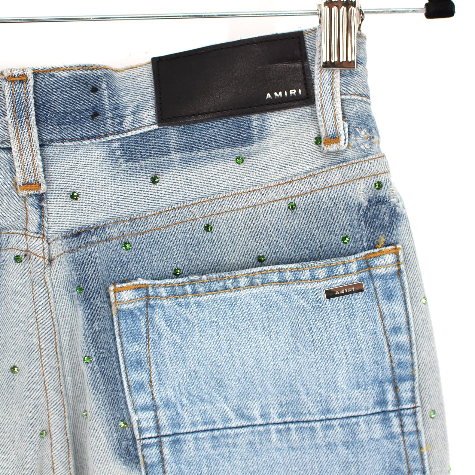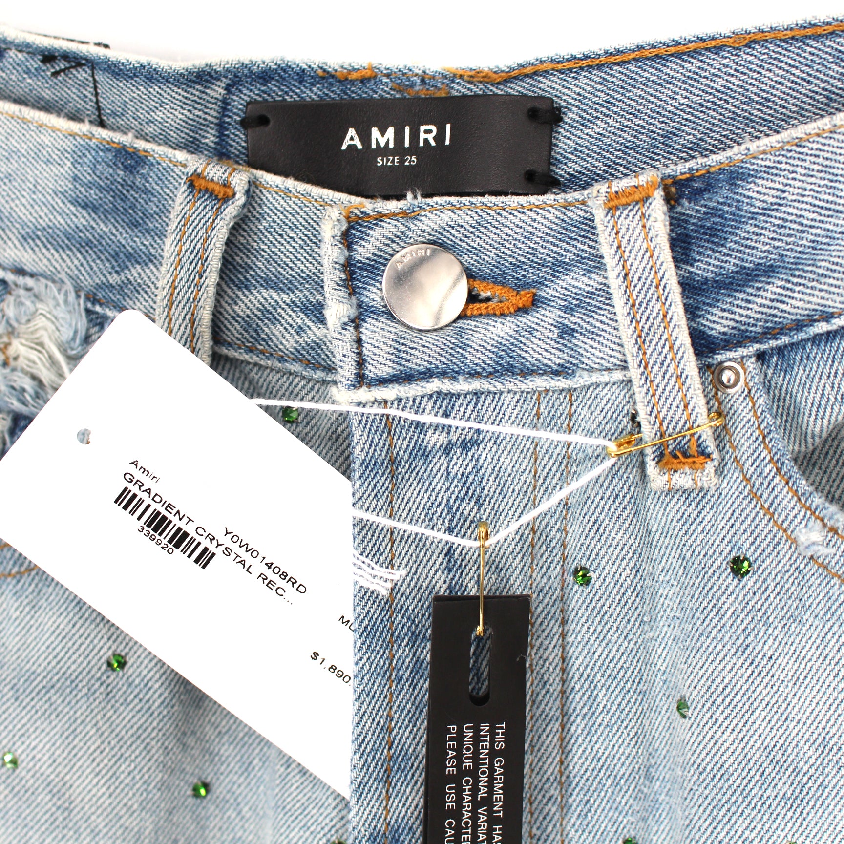 AMIRI Gradient Crystal Recon Distressed Indigo Denim Jeans.