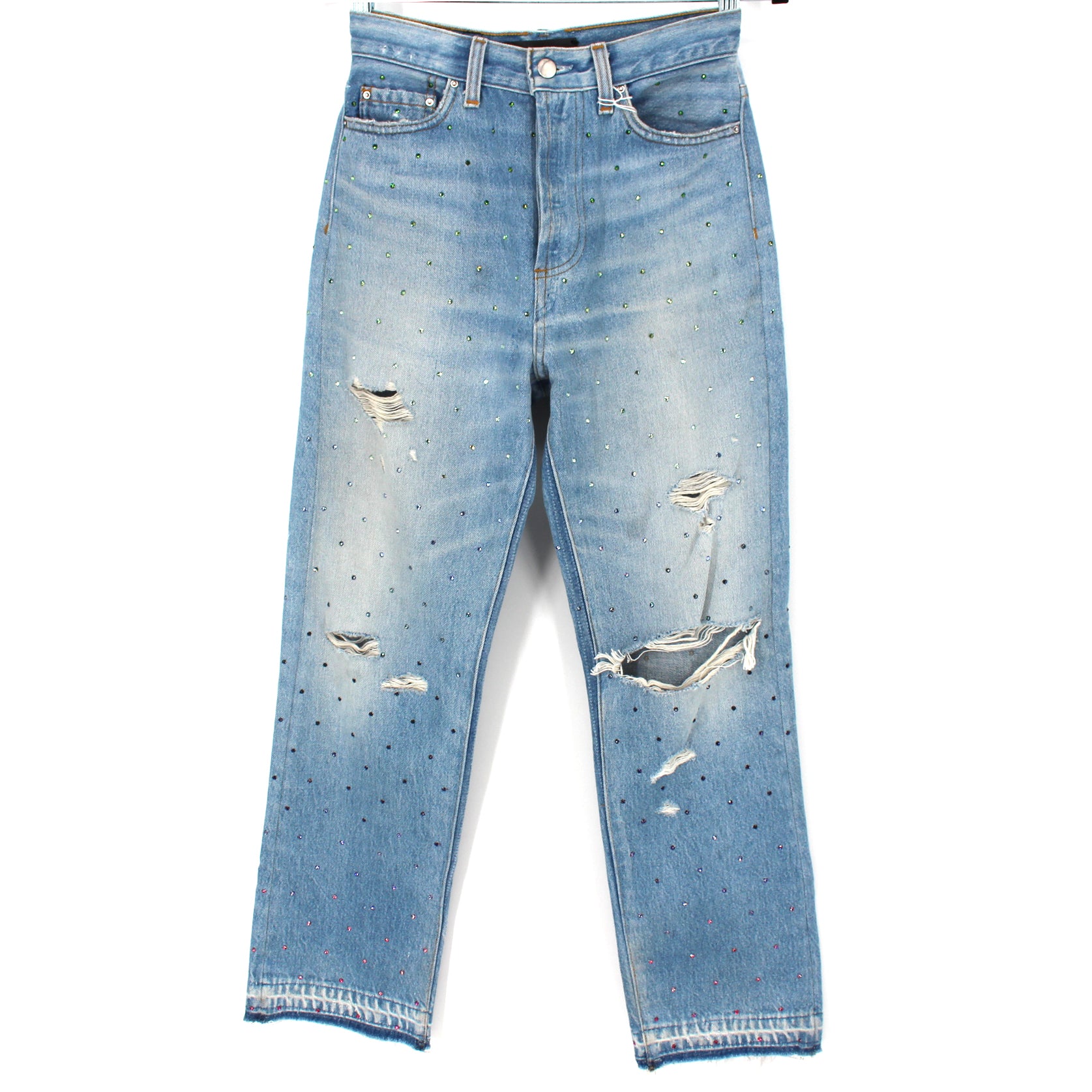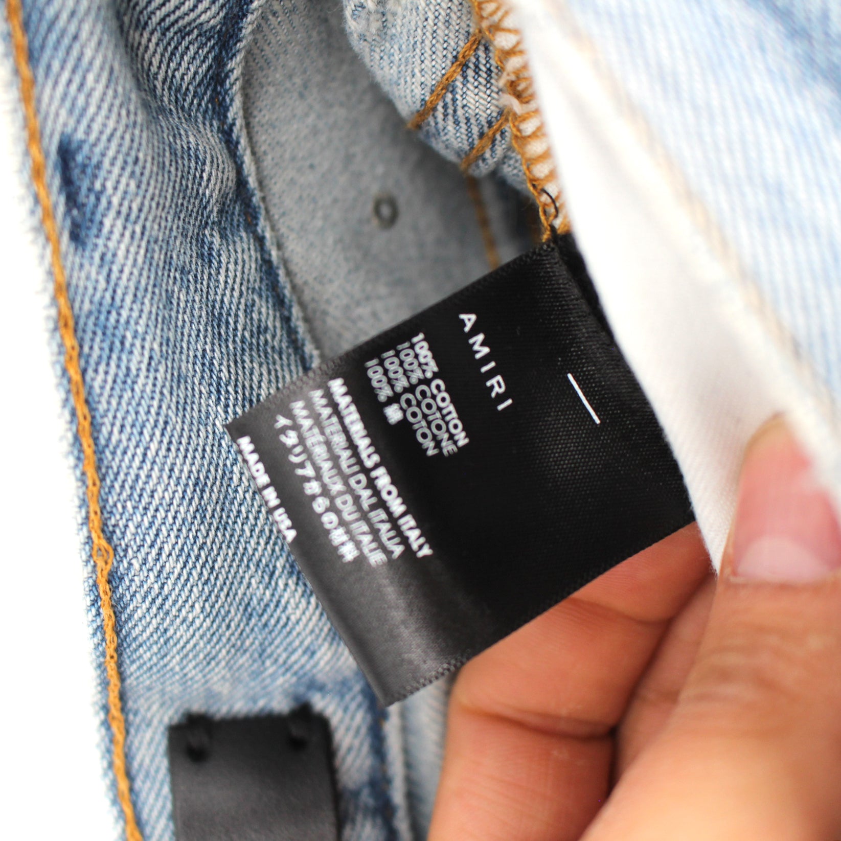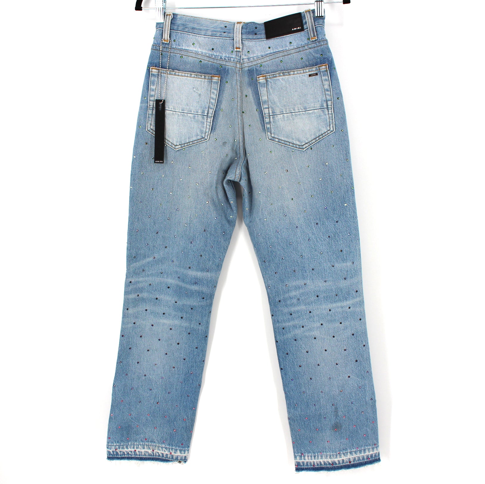 AMIRI Gradient Crystal Recon Distressed Indigo Denim Jeans.