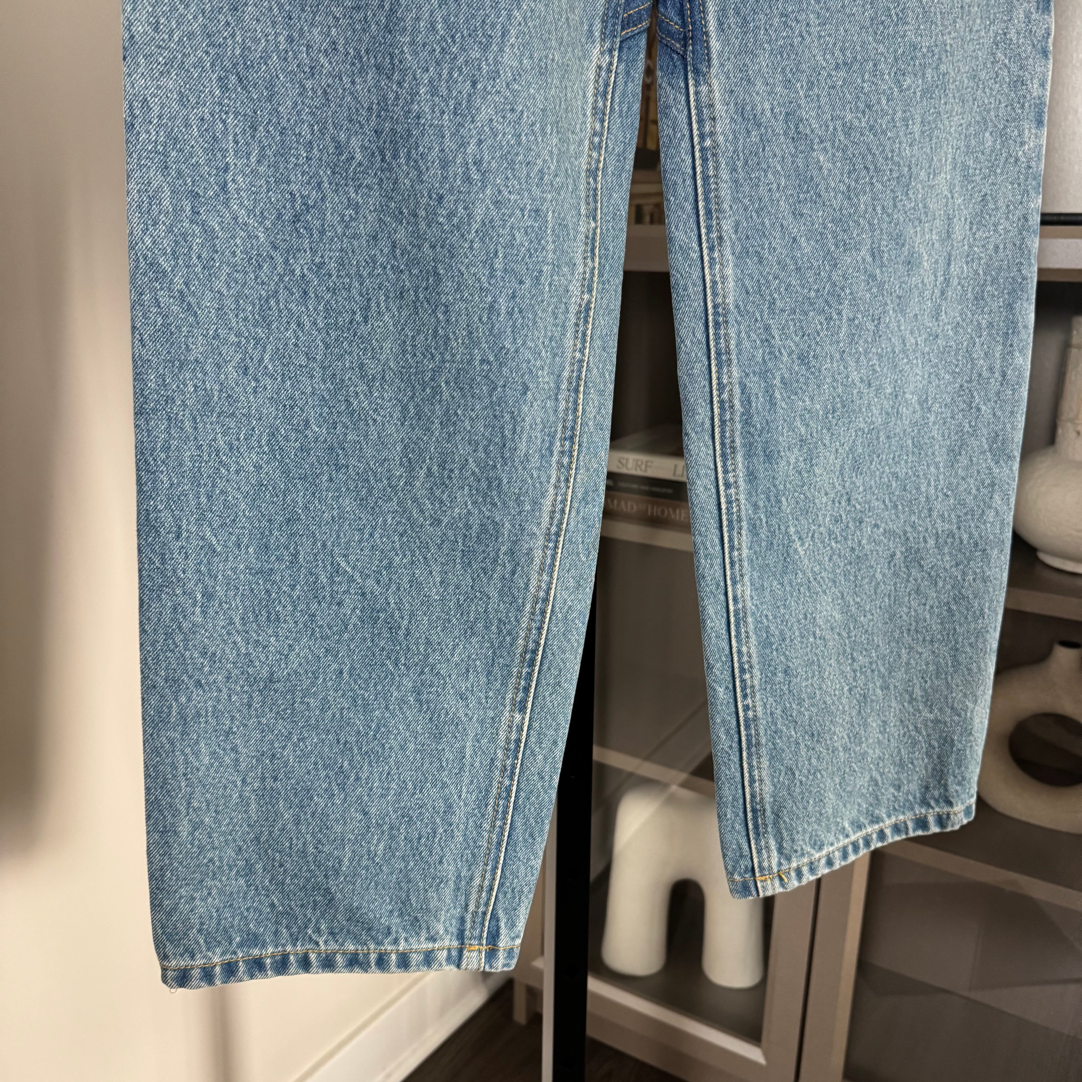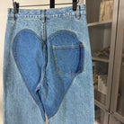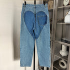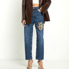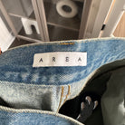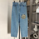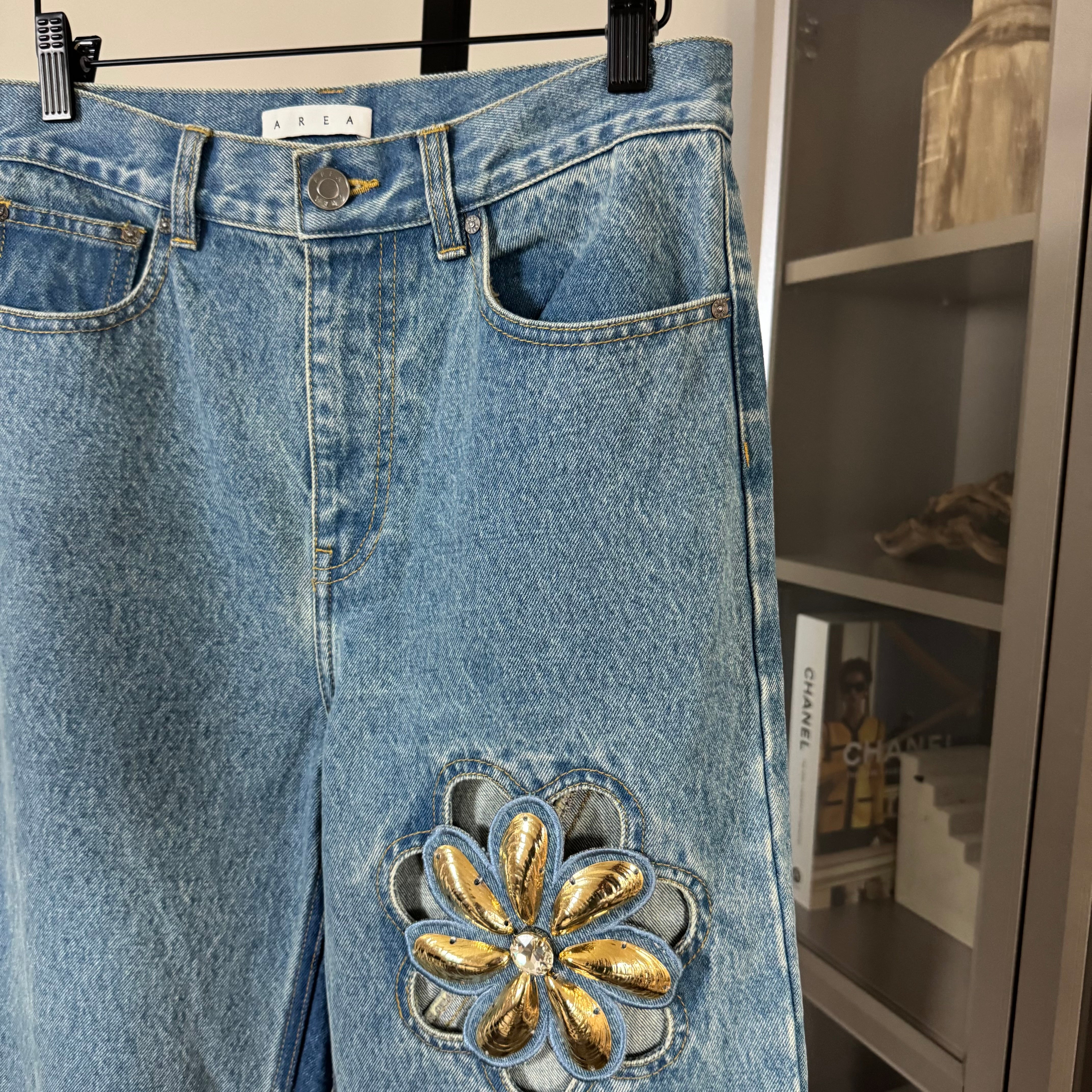 AREA Straight Leg Blue Jeans Mussel Flower Cut-Out Embellished Detail