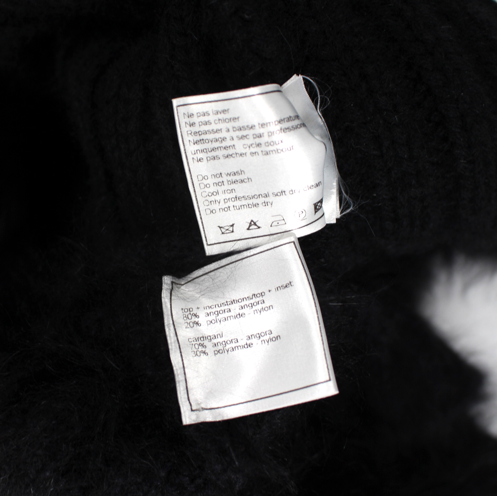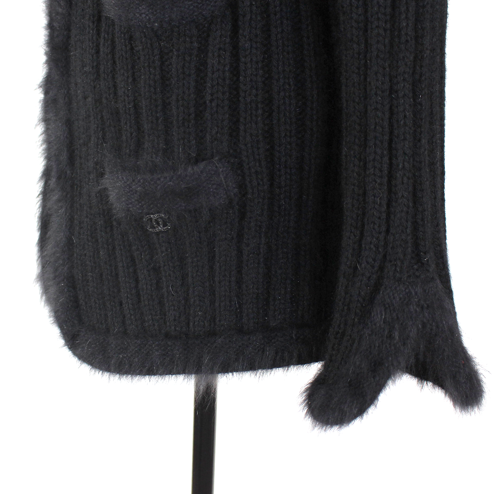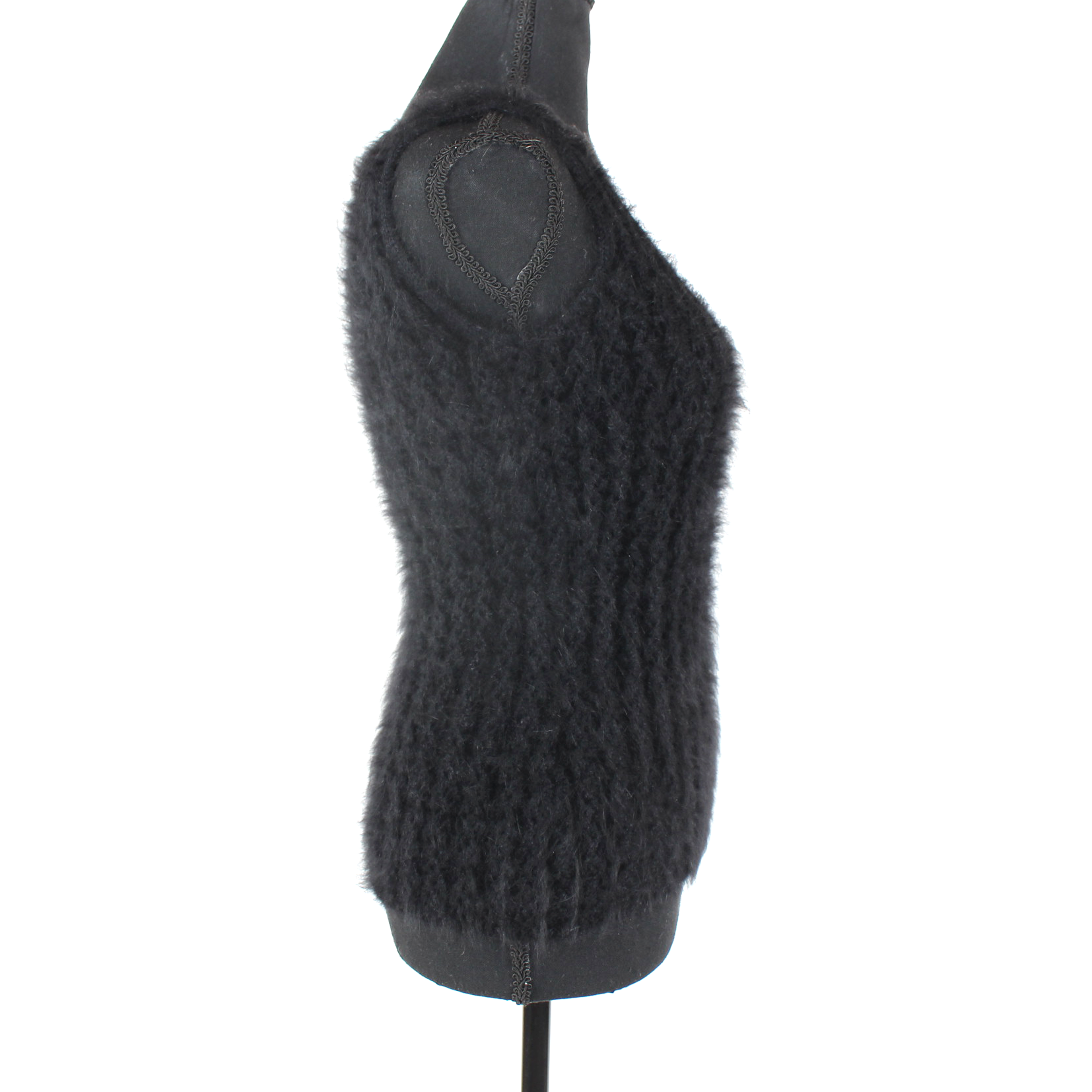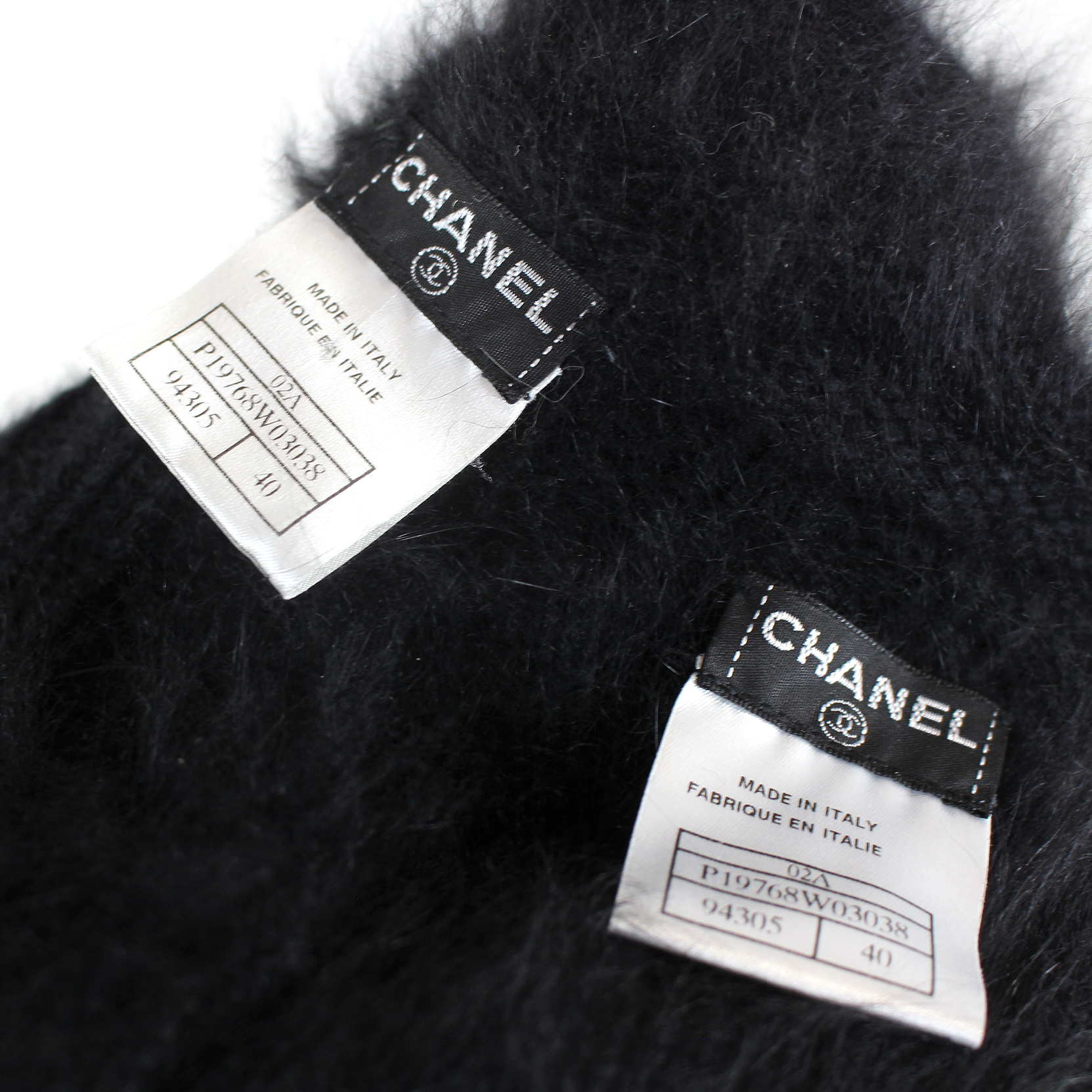 CHANEL Black Angora Wool Rib Knit Tank Top Sweater Cardigan 2 PC Set