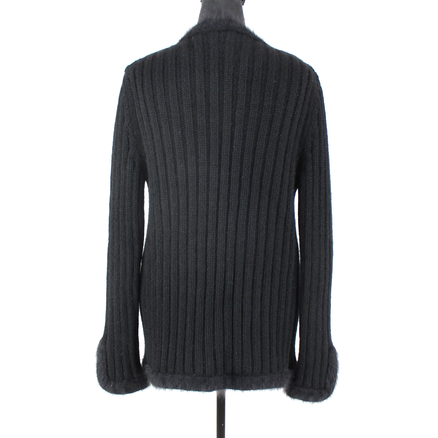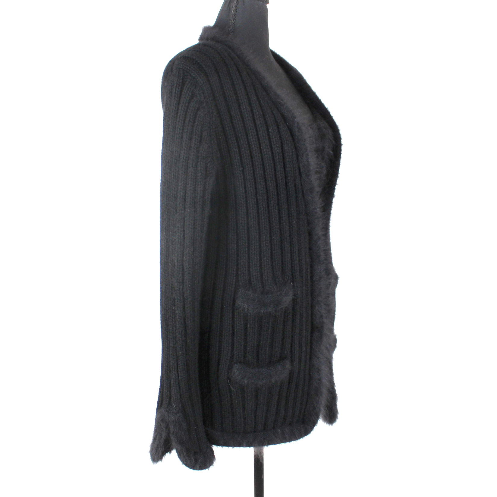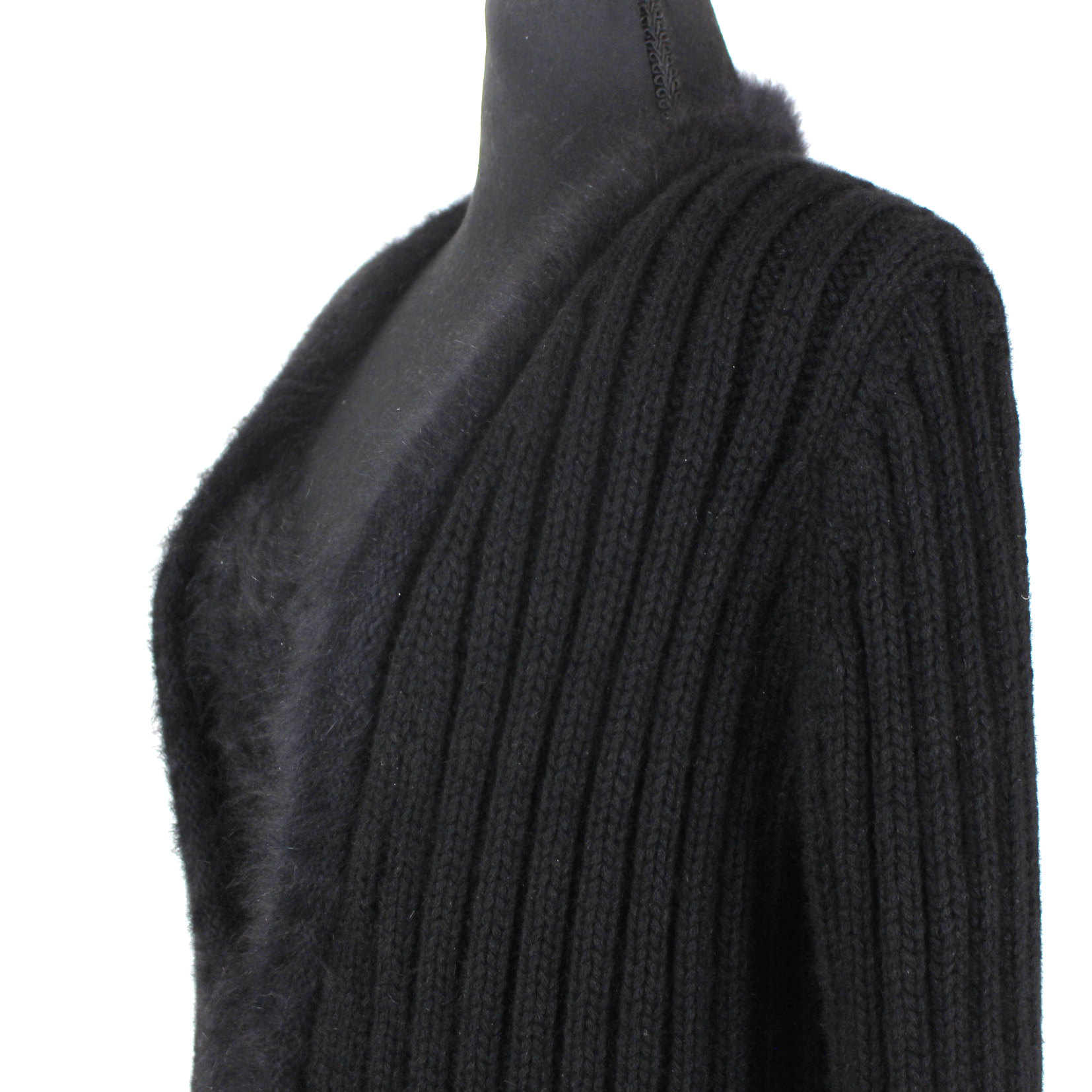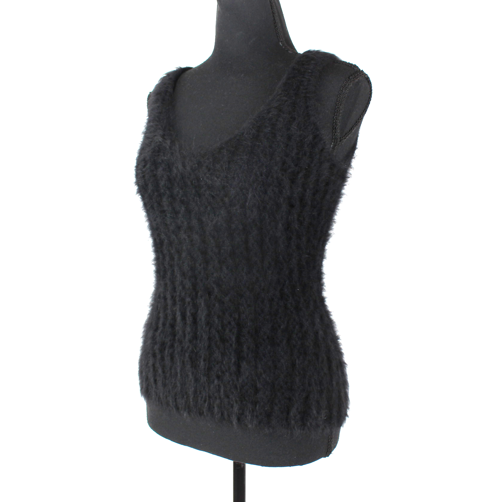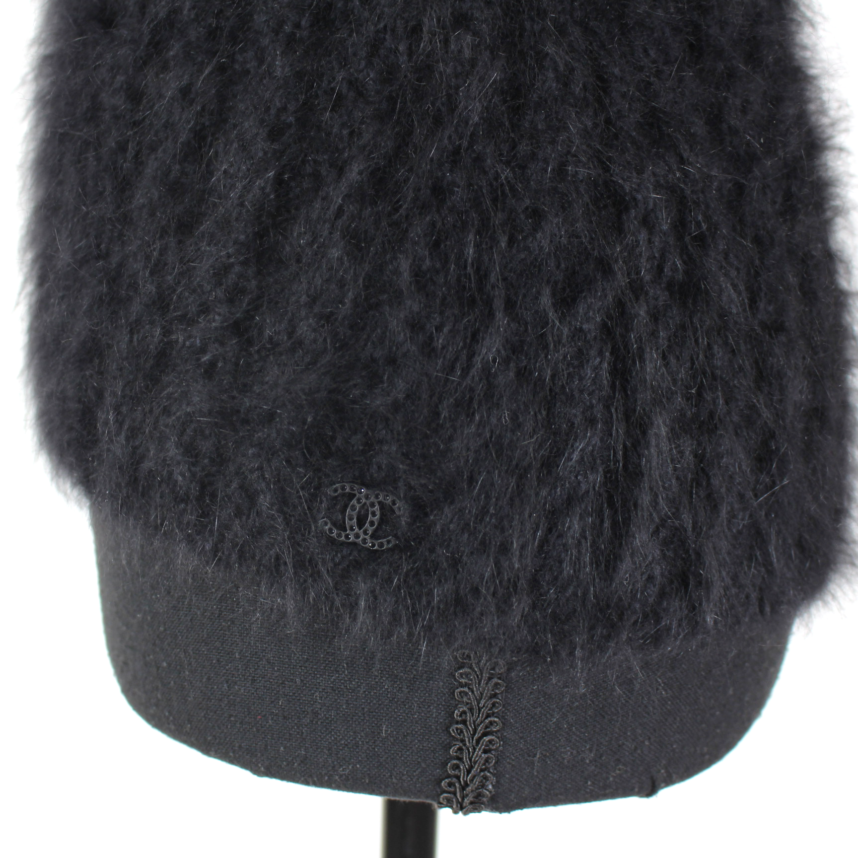 CHANEL Black Angora Wool Rib Knit Tank Top Sweater Cardigan 2 PC Set