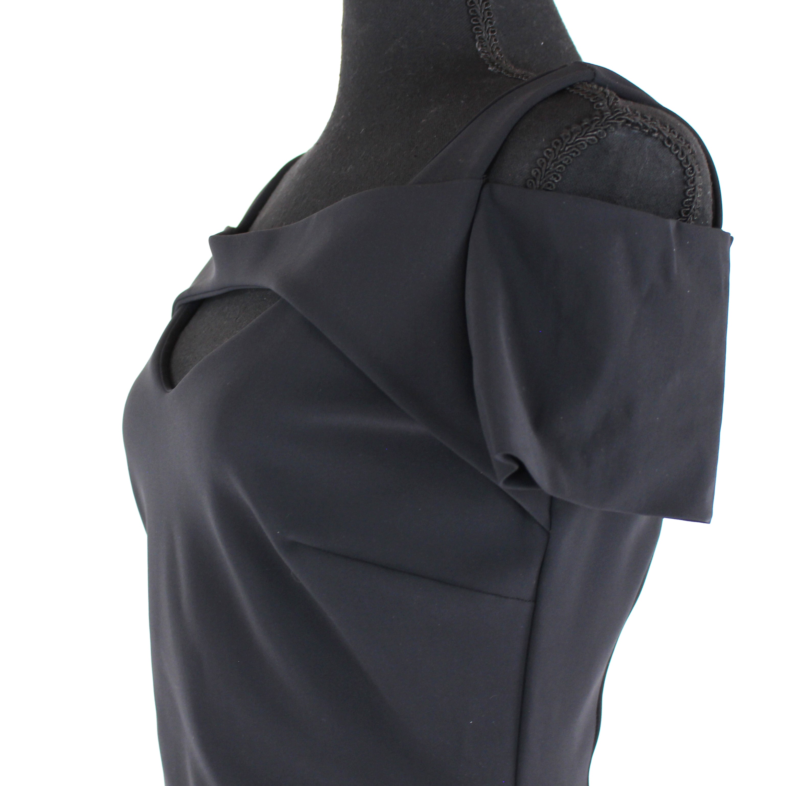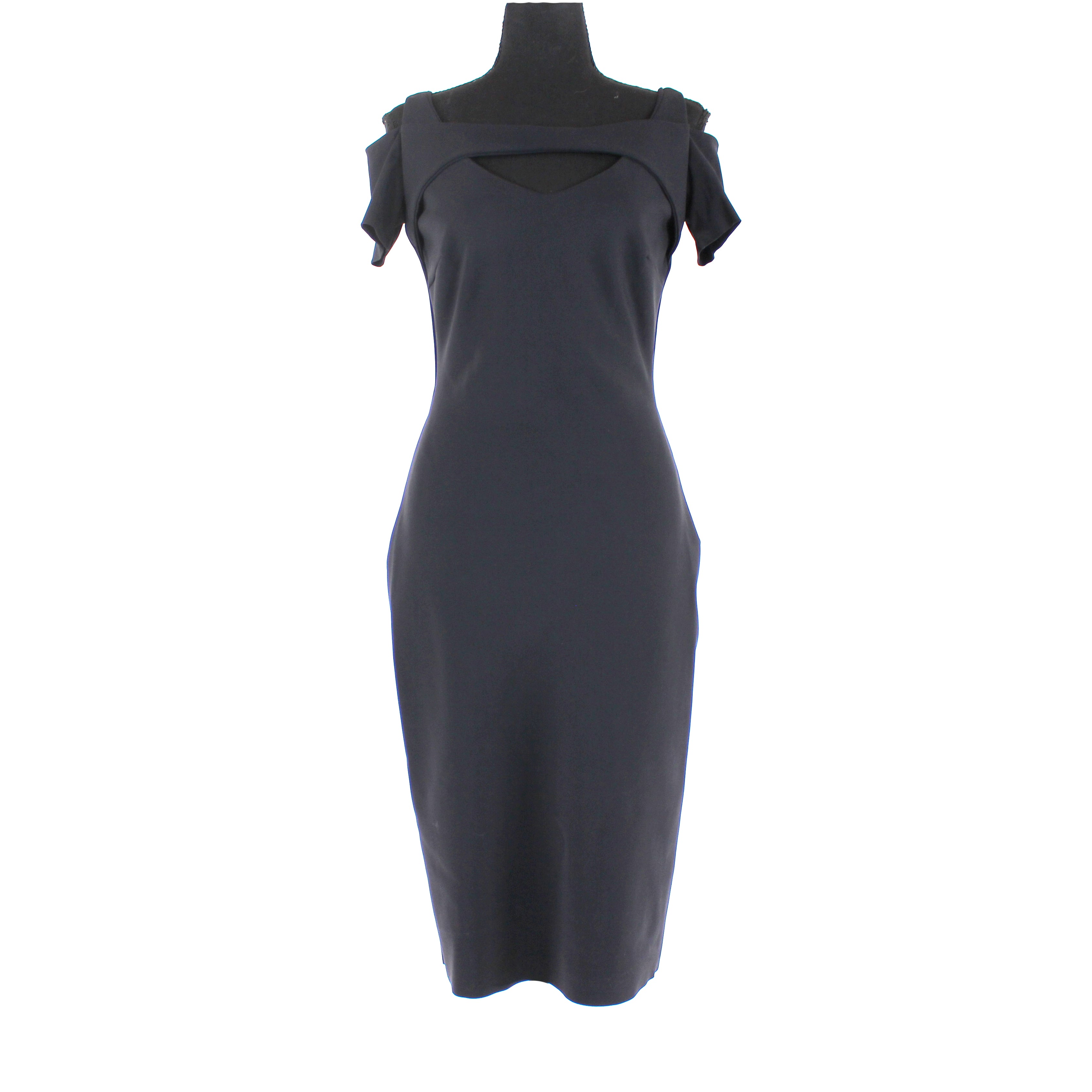 Chiara Boni Black Cold Shoulder Form Fitting Short Sleeve Midi Dress