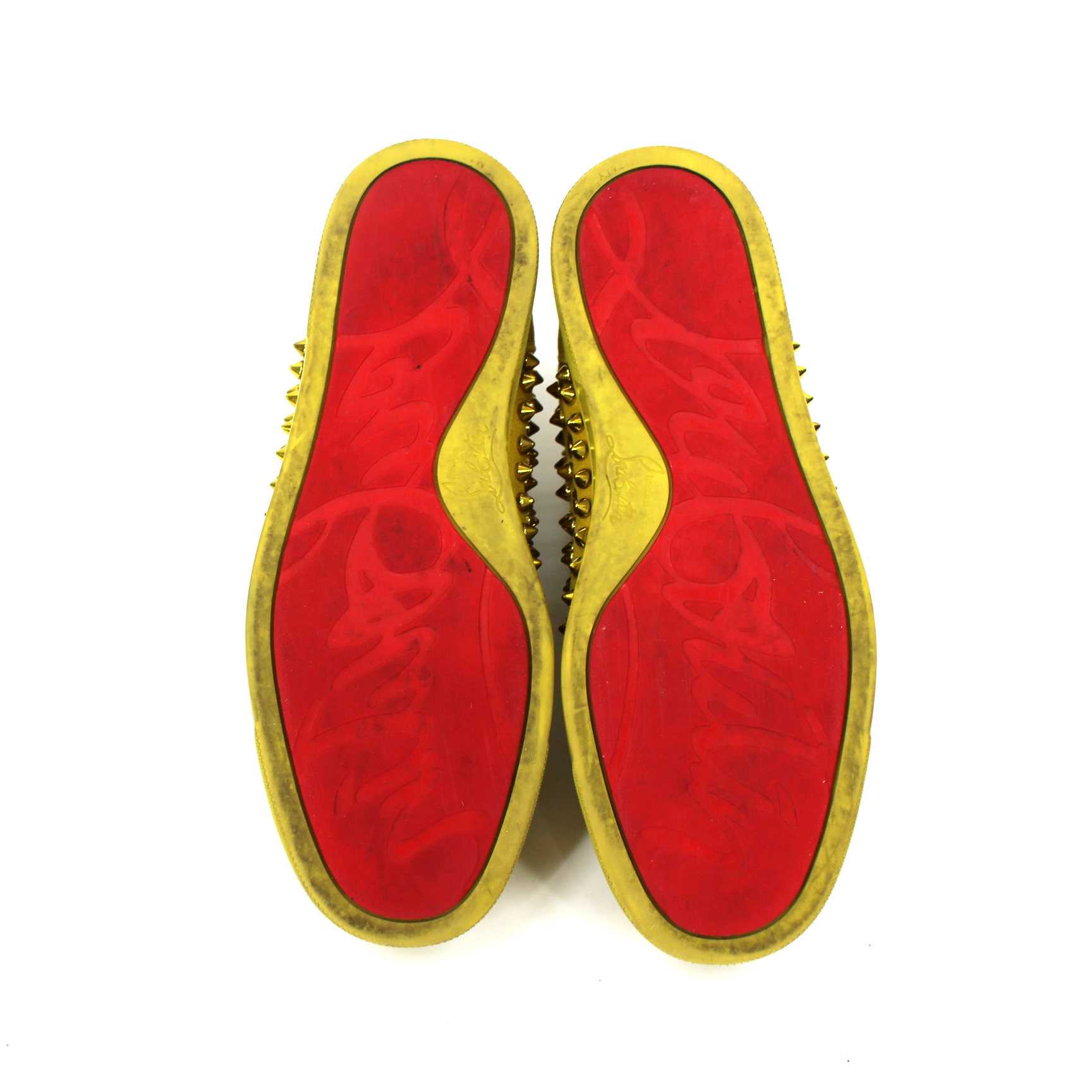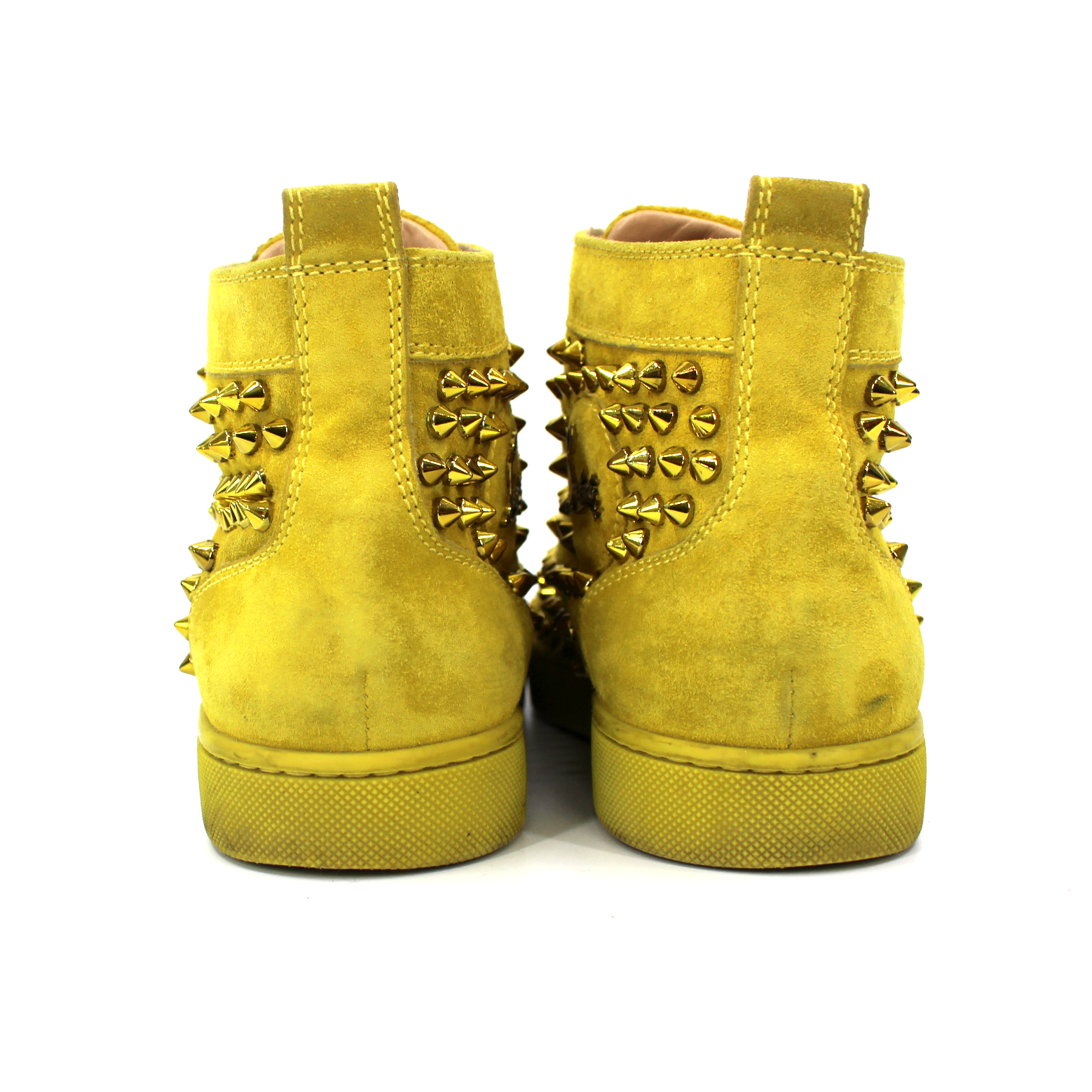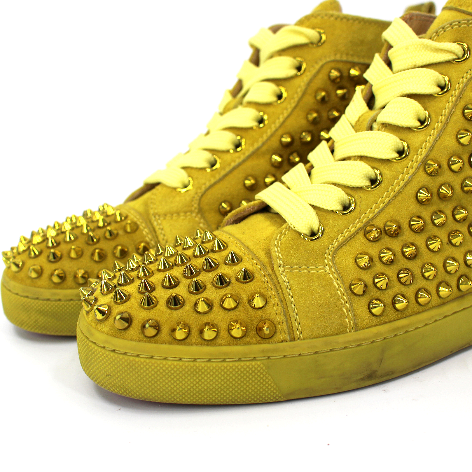 Christian Louboutin Louis Yellow Suede Gold Spike High Top Sneakers