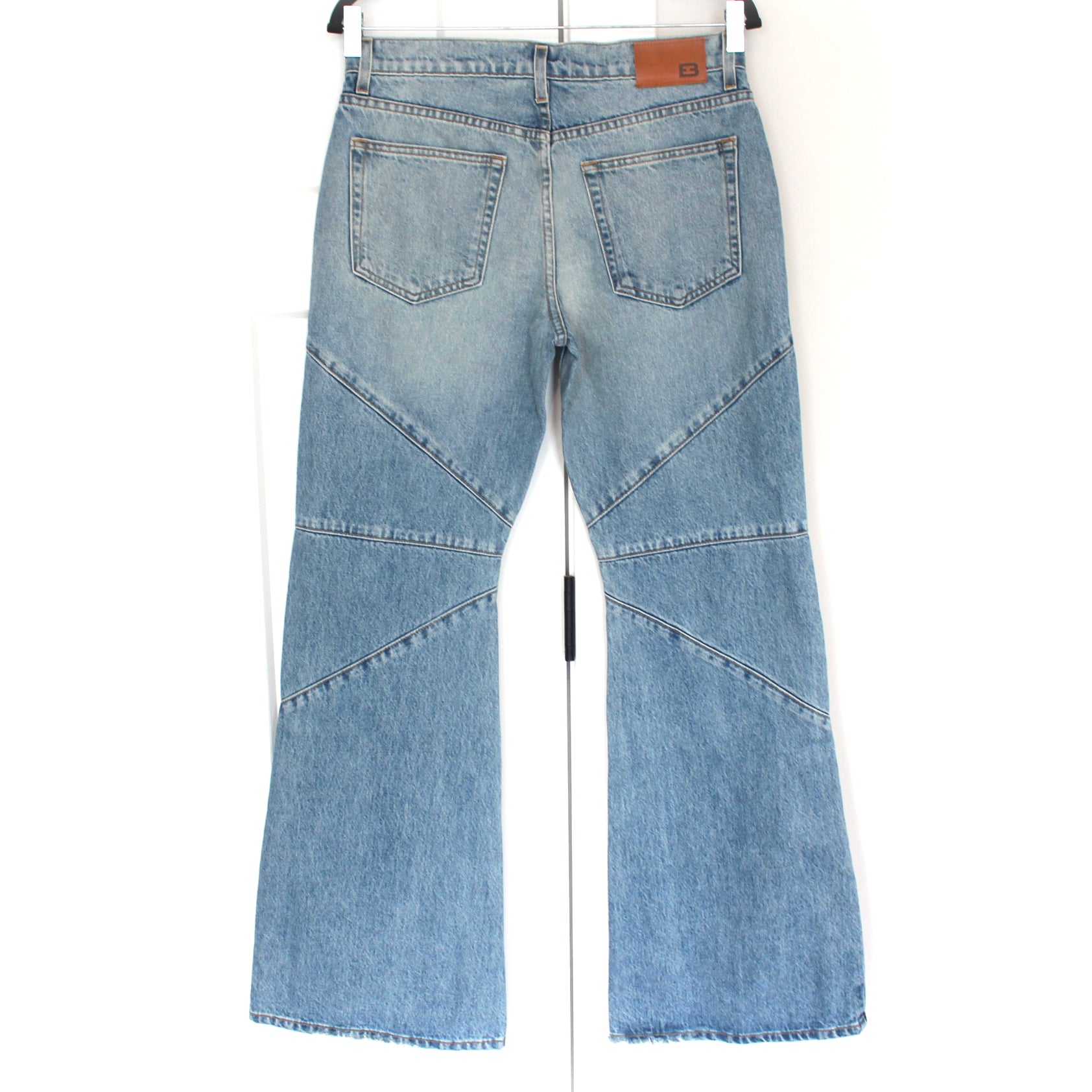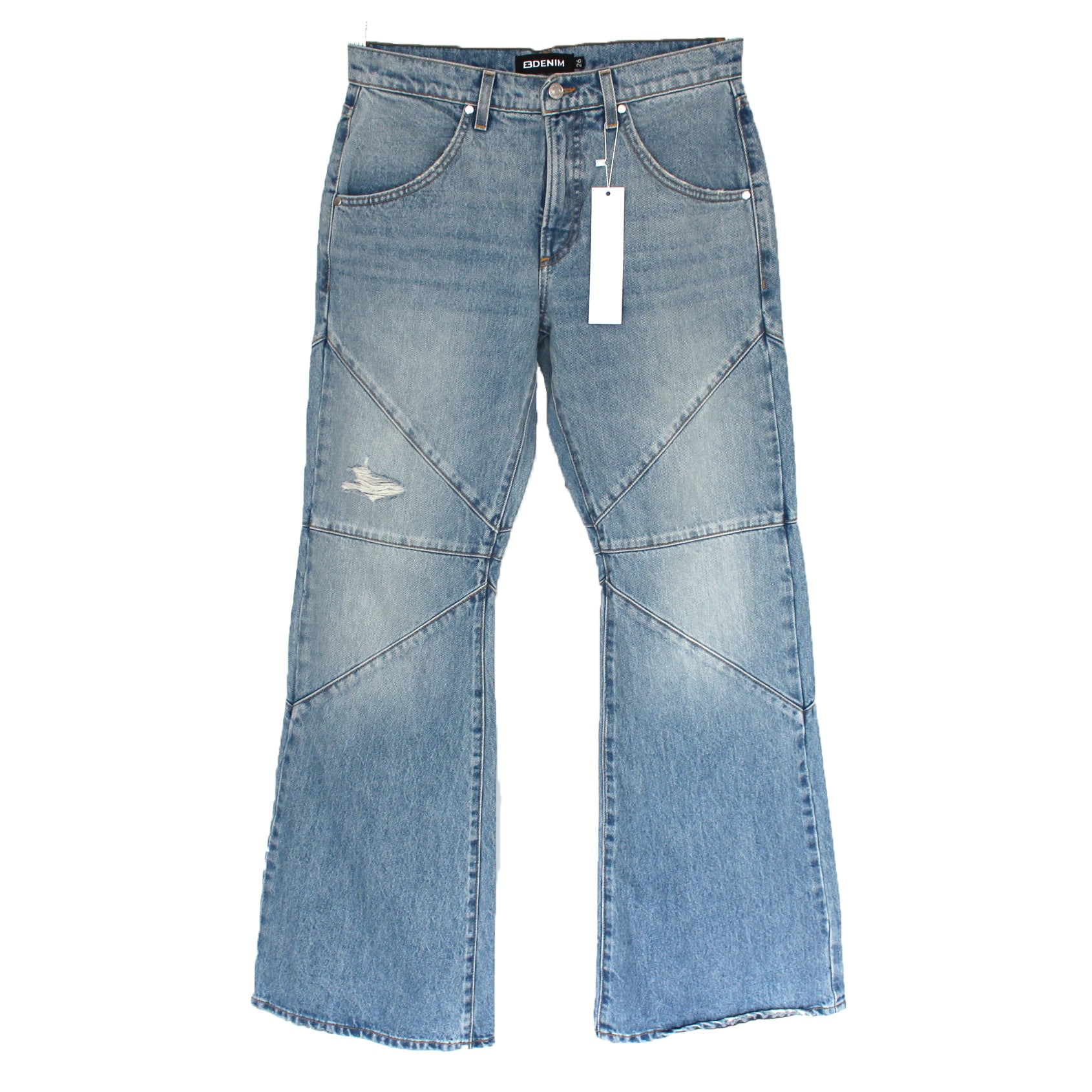 EB DENIM Bowie Flared Seamed Knee Detail Distressed Accent Jeans