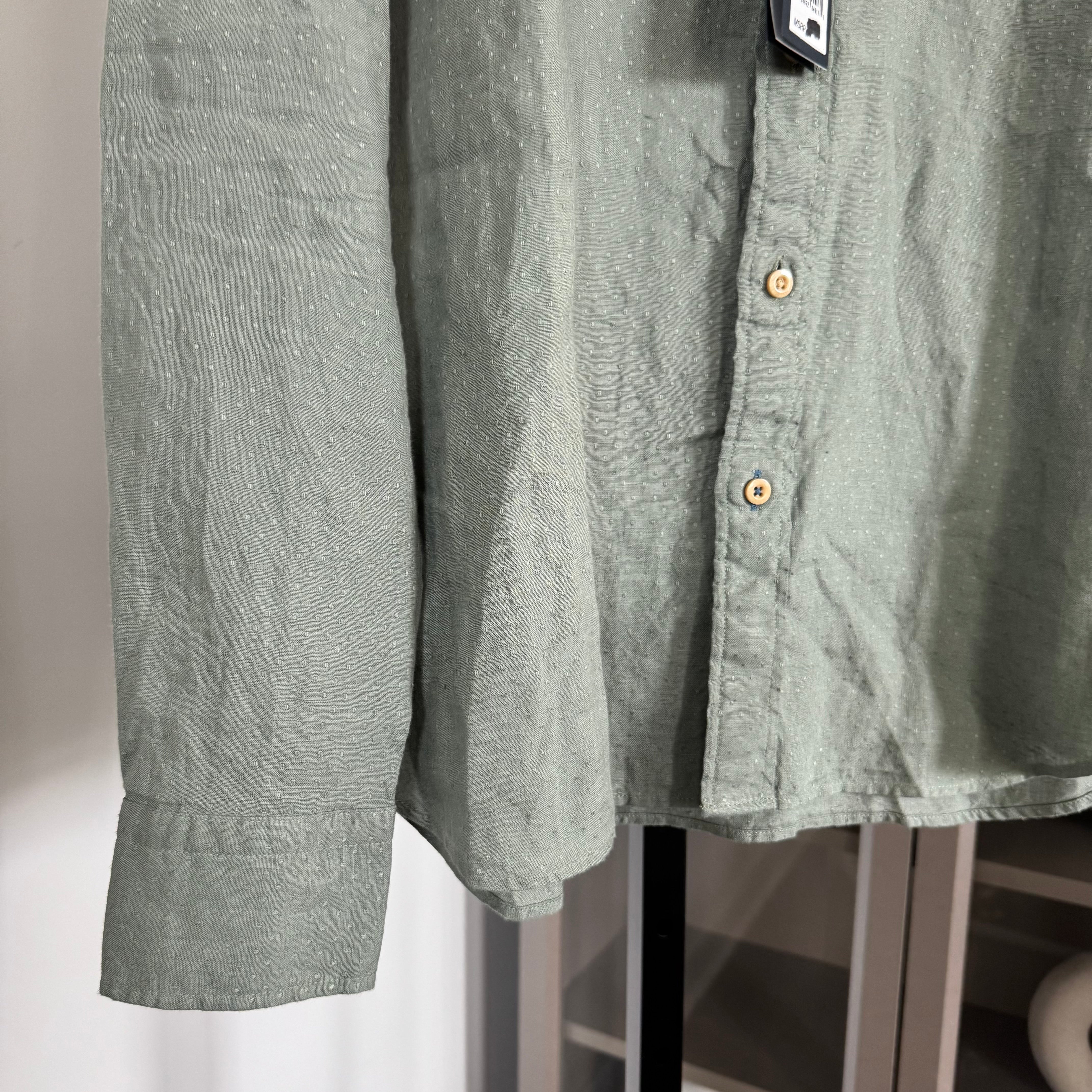 Faherty Laguna Linen Fairfield Dobby Green Textured Long Sleeve Shirt