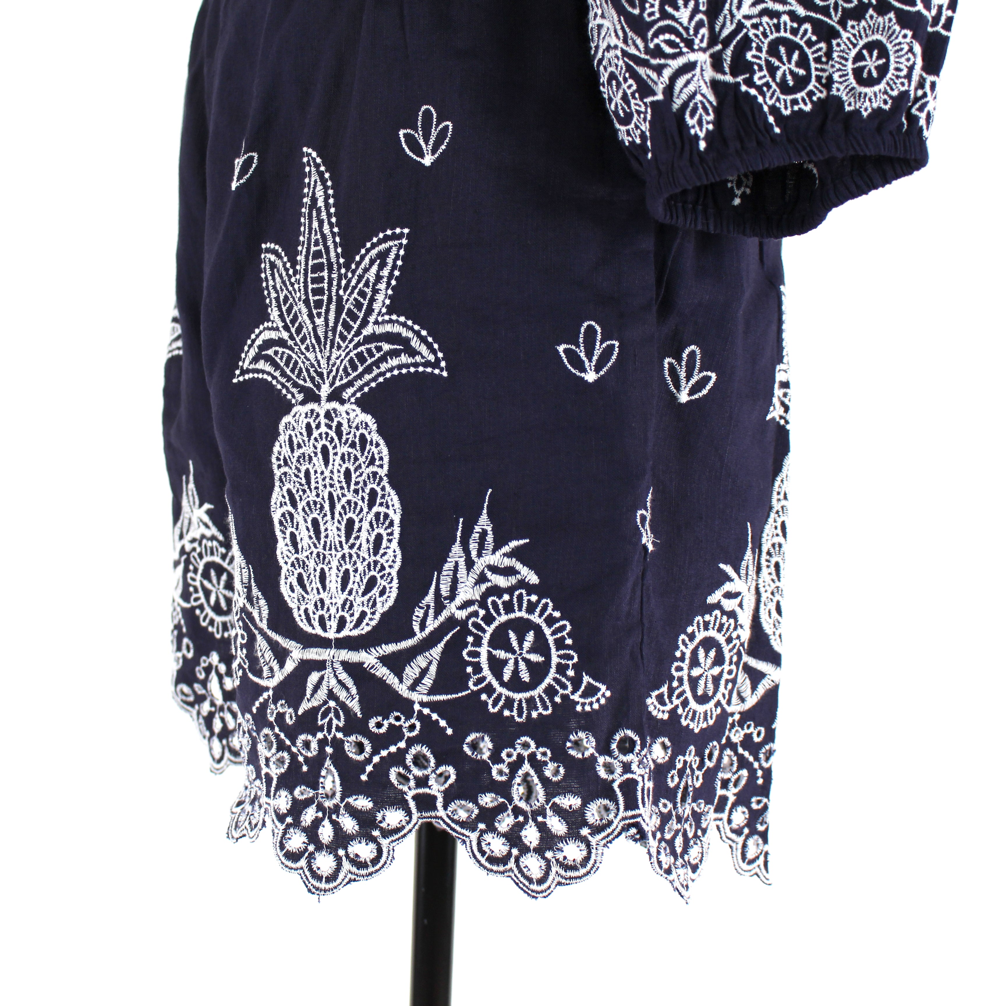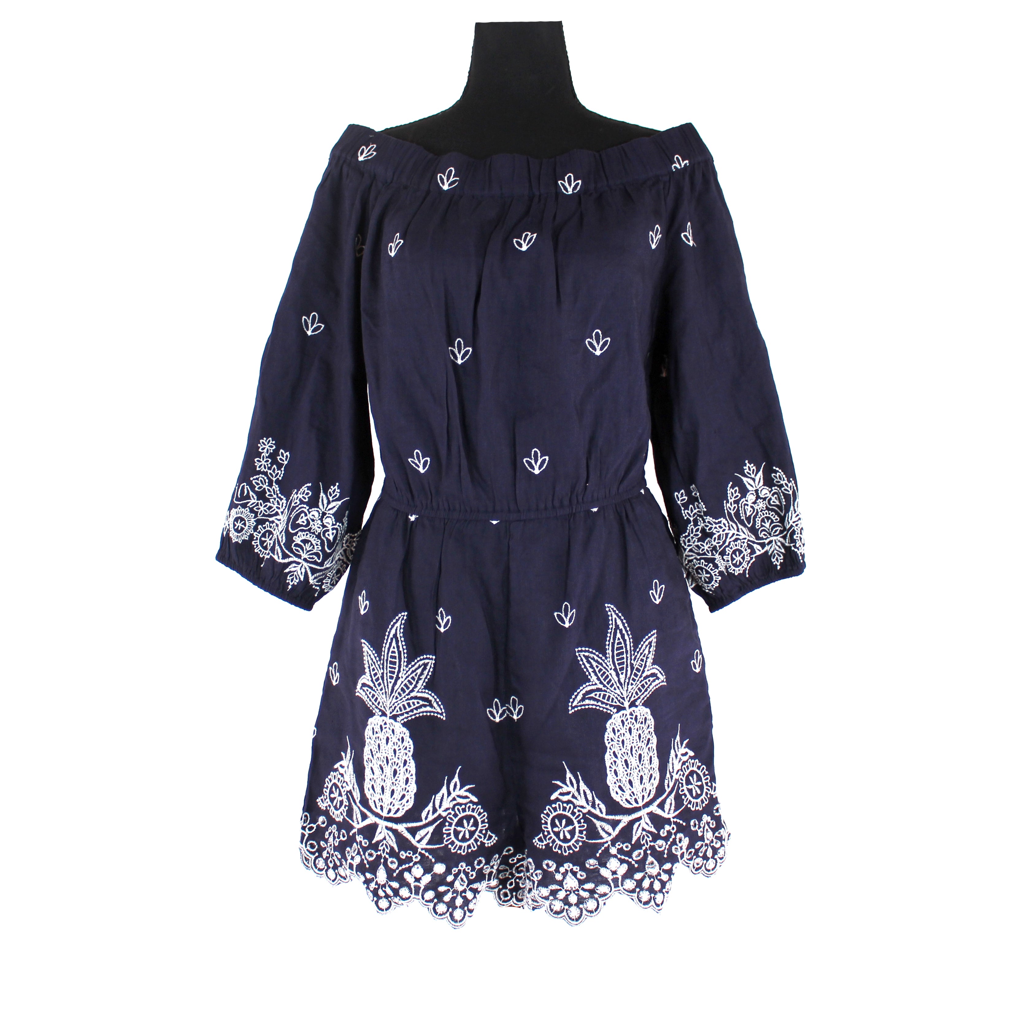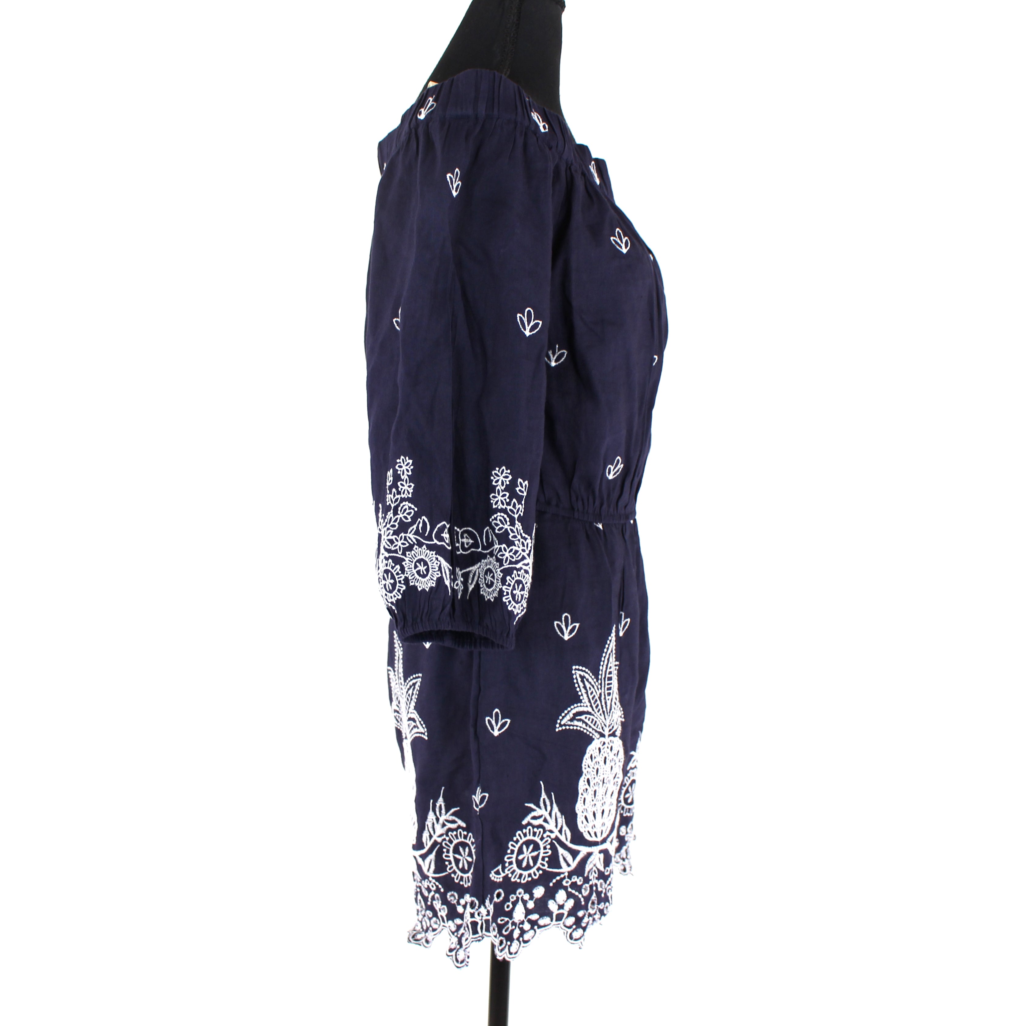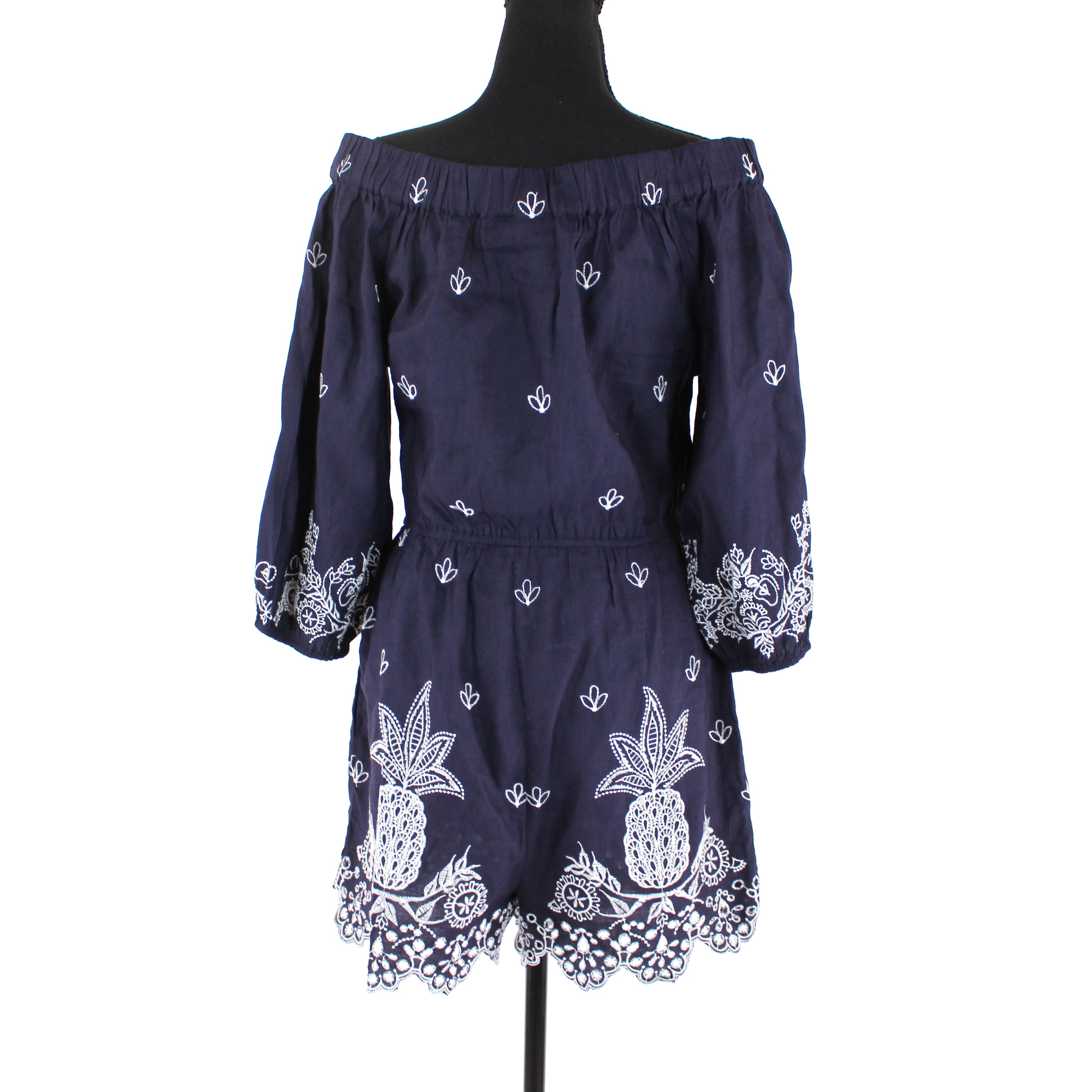 Farm Rio Anthropologie Jackie Navy White Eyelet Off Shoulder Romper Shorts
