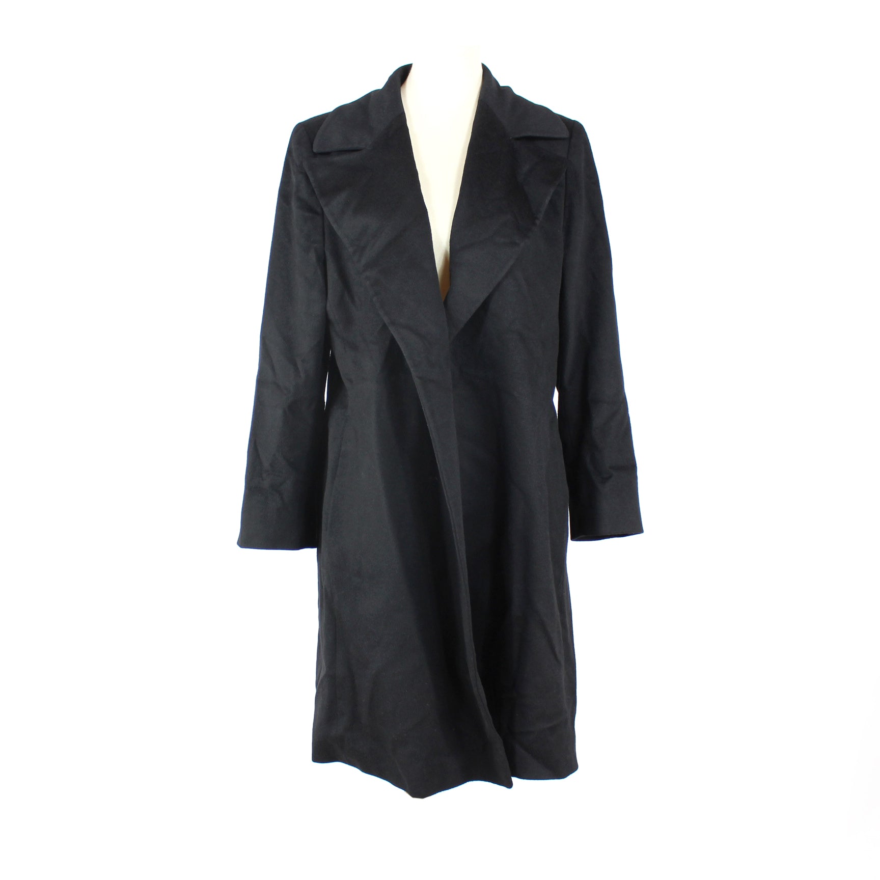 Fleurette Black Soft Cashmere Collared Wrap Long Coat Jacket