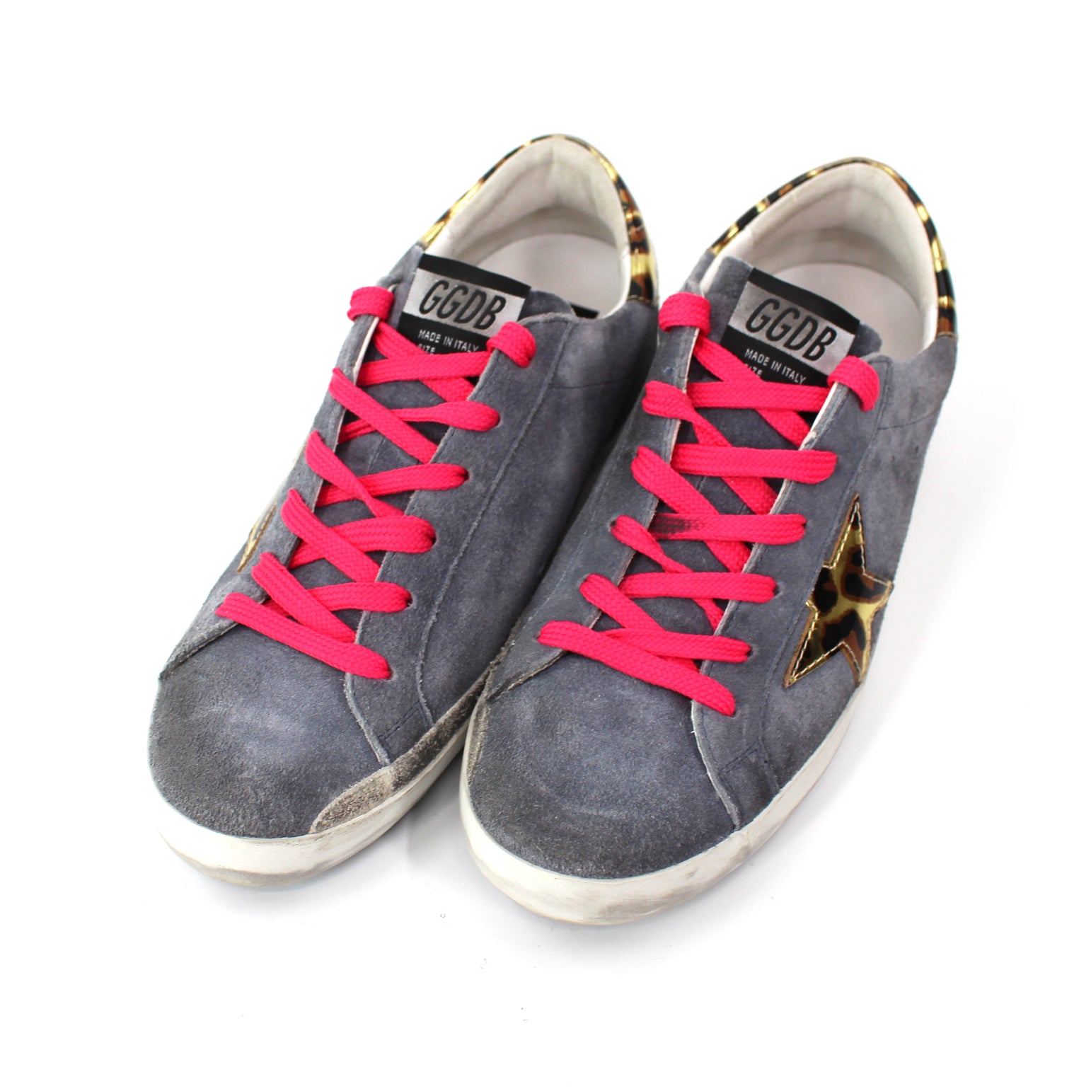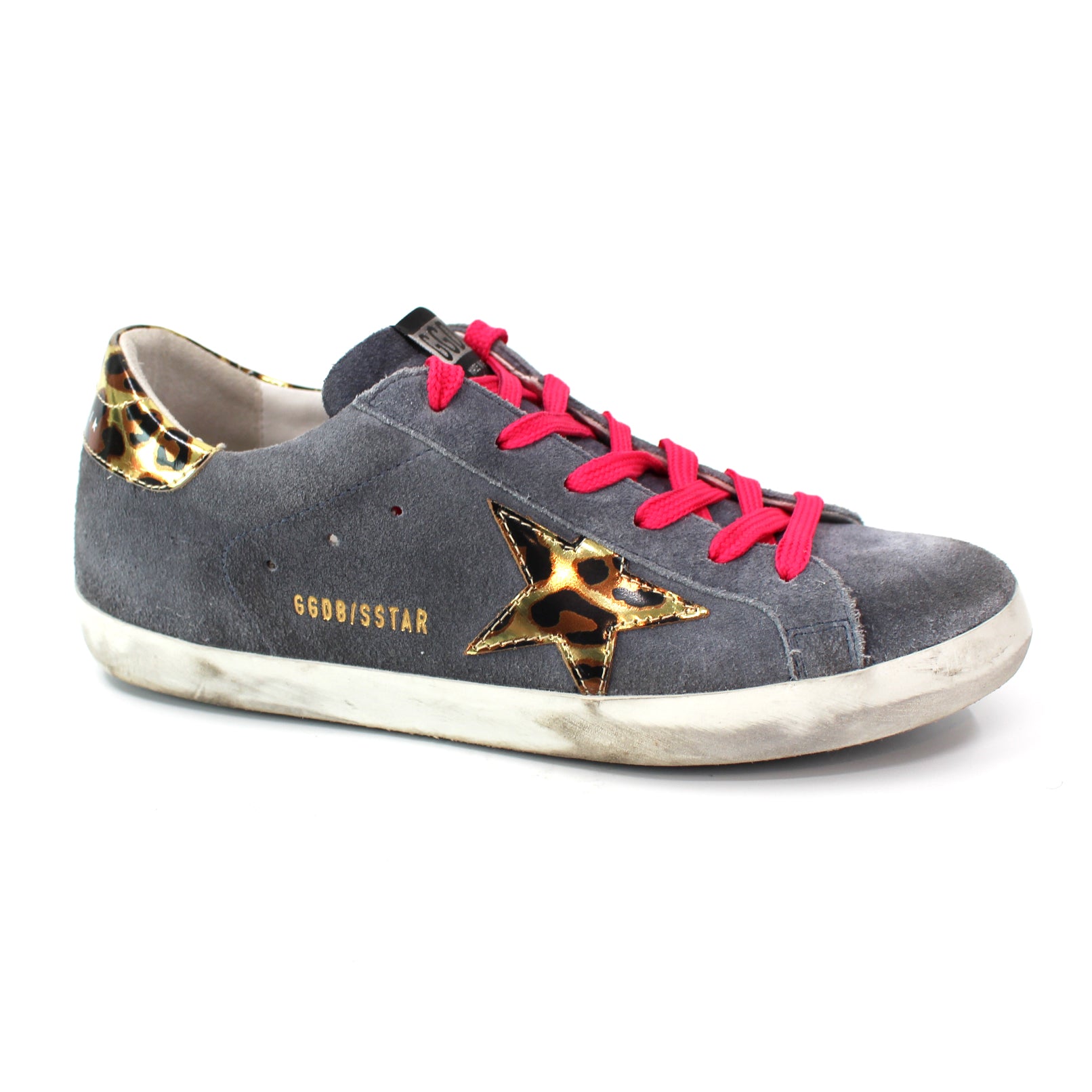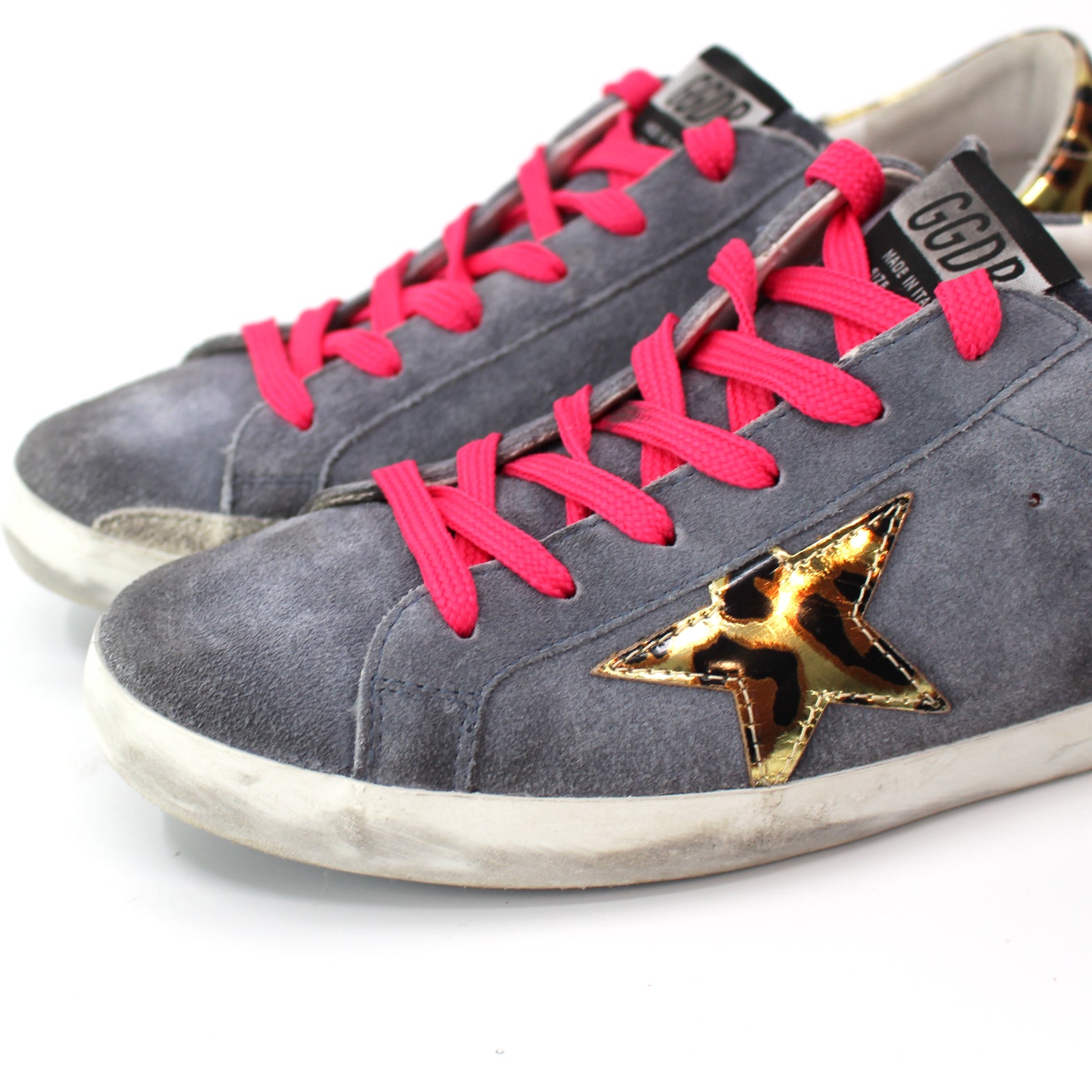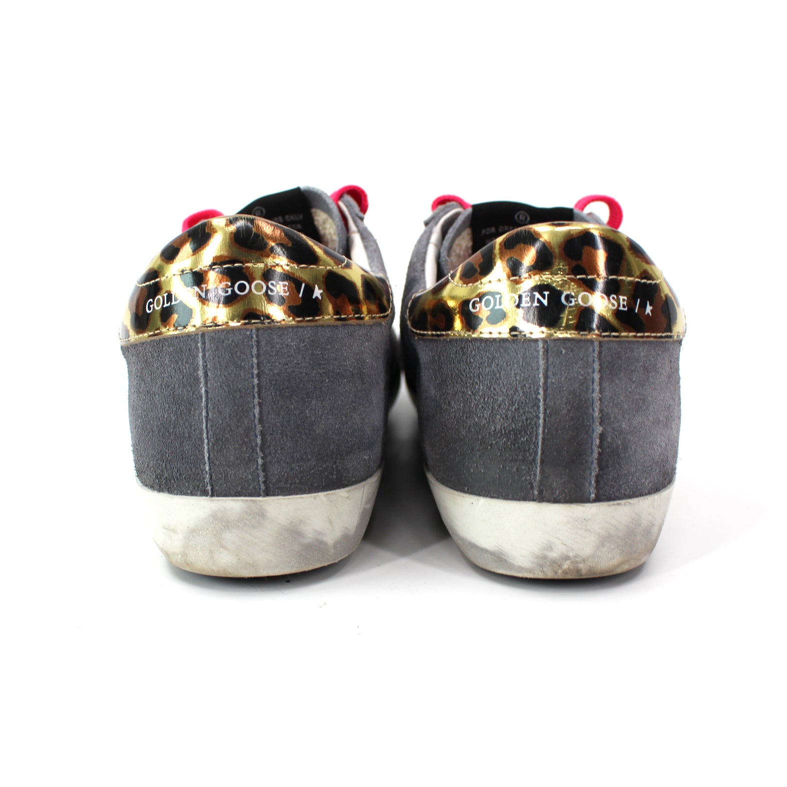 Golden Goose Super-Star Low Top Grey Suede Leopard Sneakers