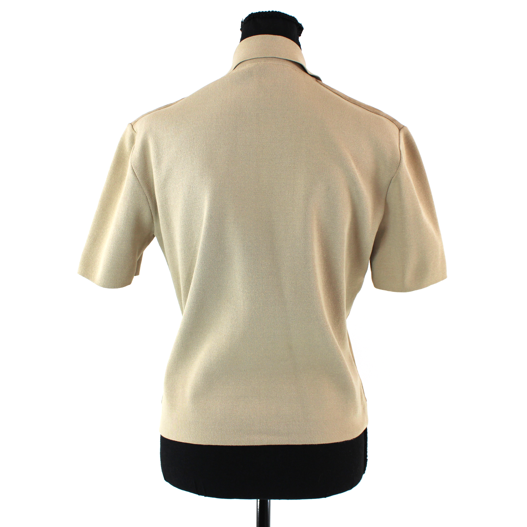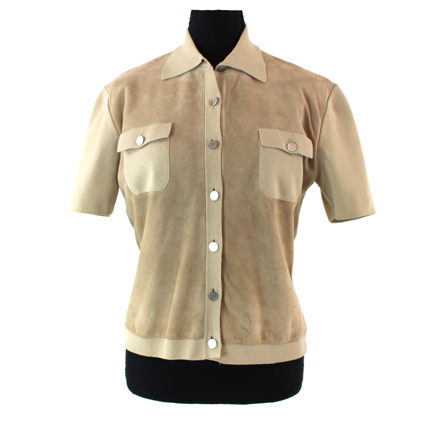 Hermes Paris Vintage Tan Suede Cotton Knit Trim Button Front Polo Shirt
