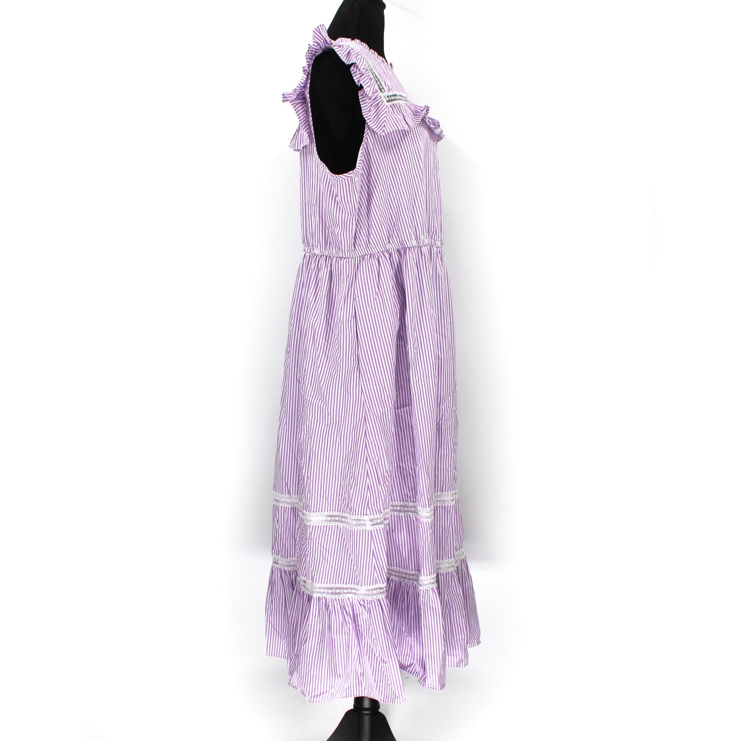 J. Crew Purple Lilac White Pinstripe Ruffle Trim Lace Detail Tiered Maxi Dress