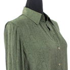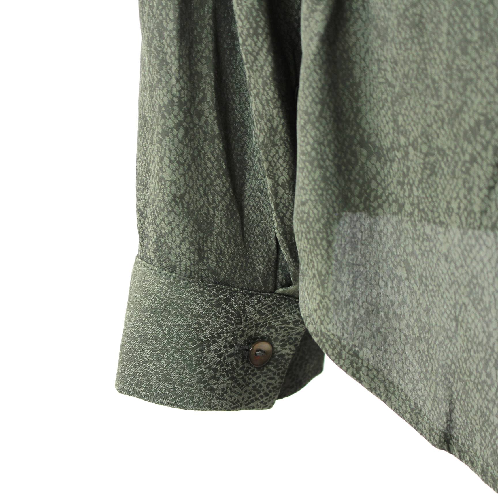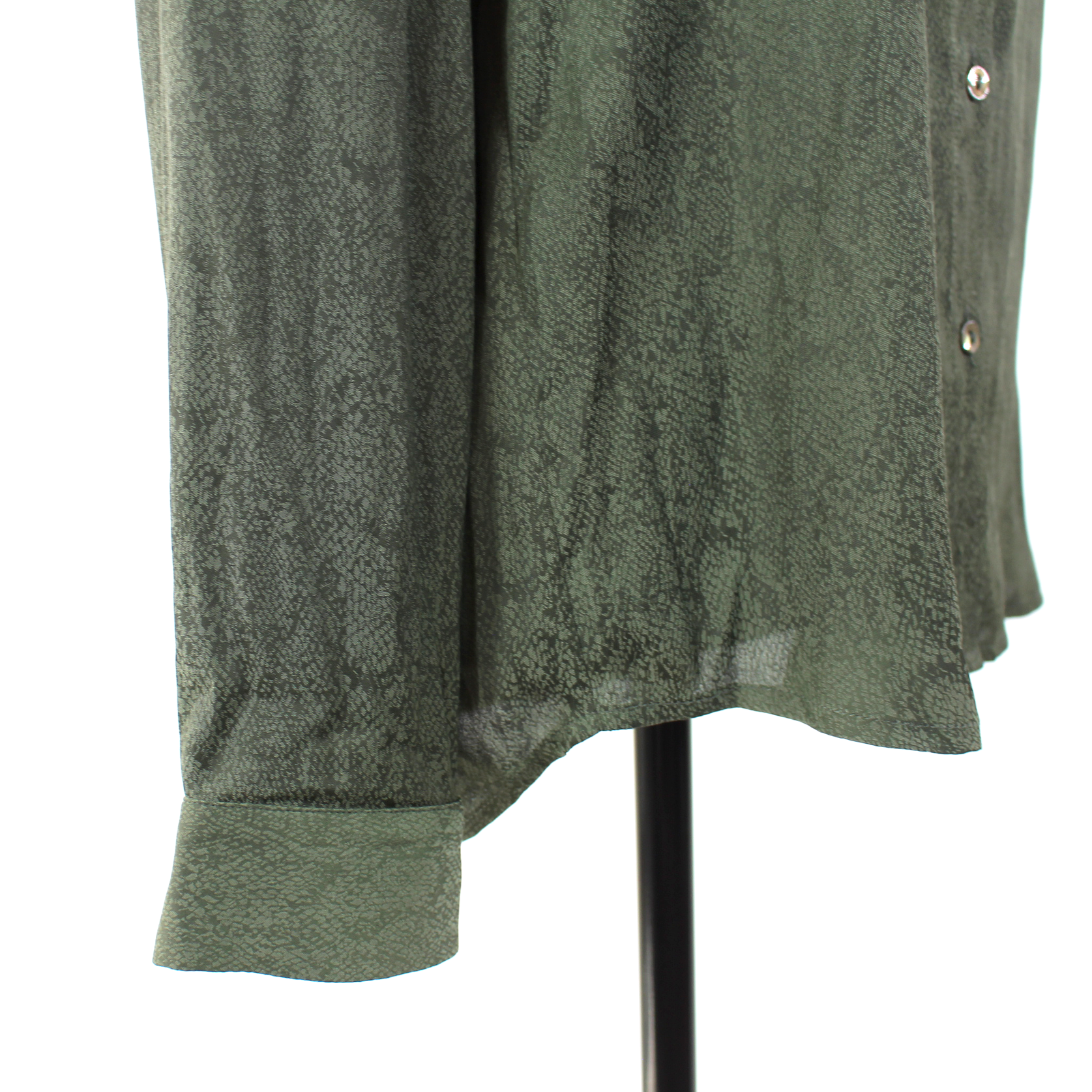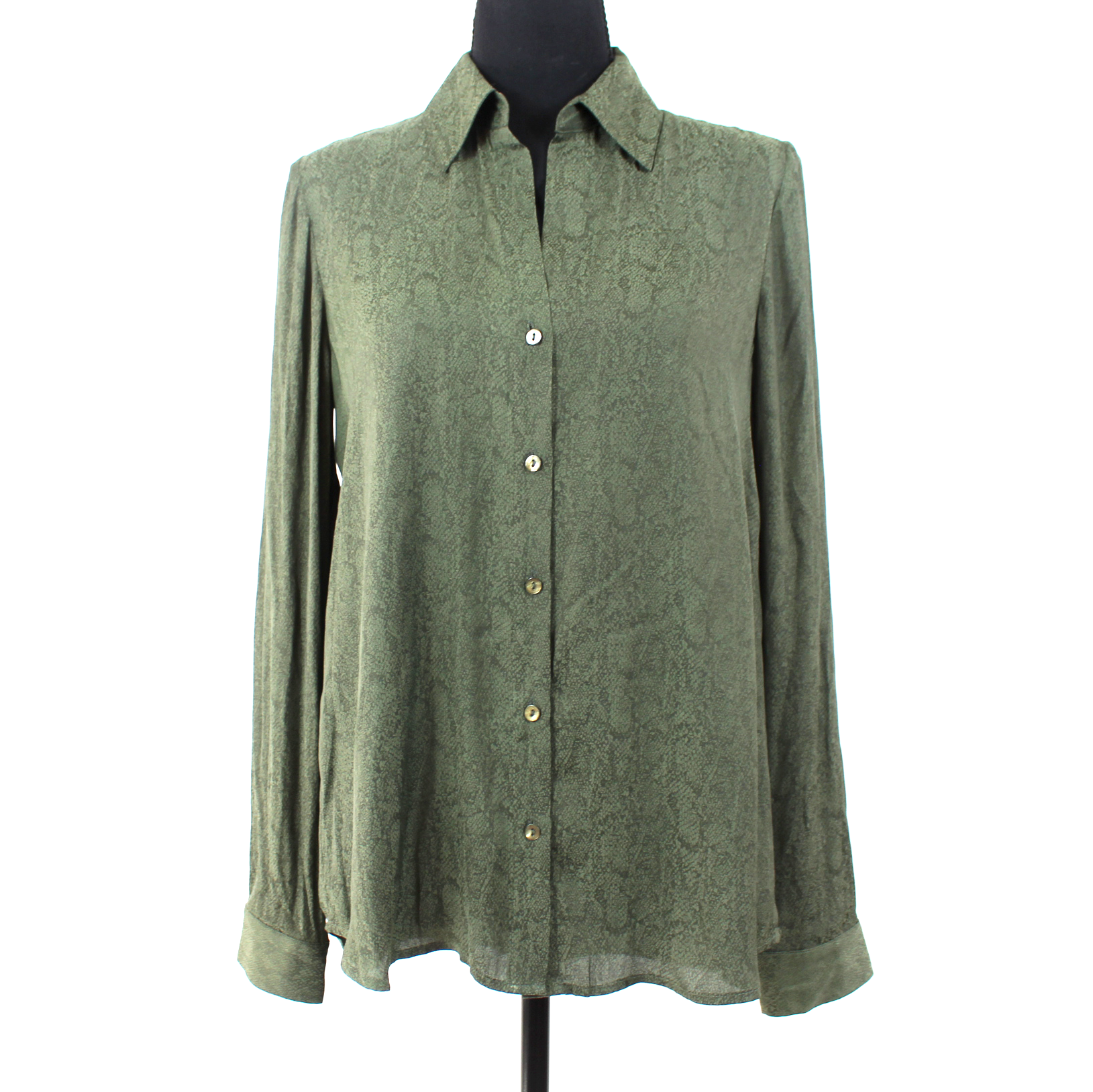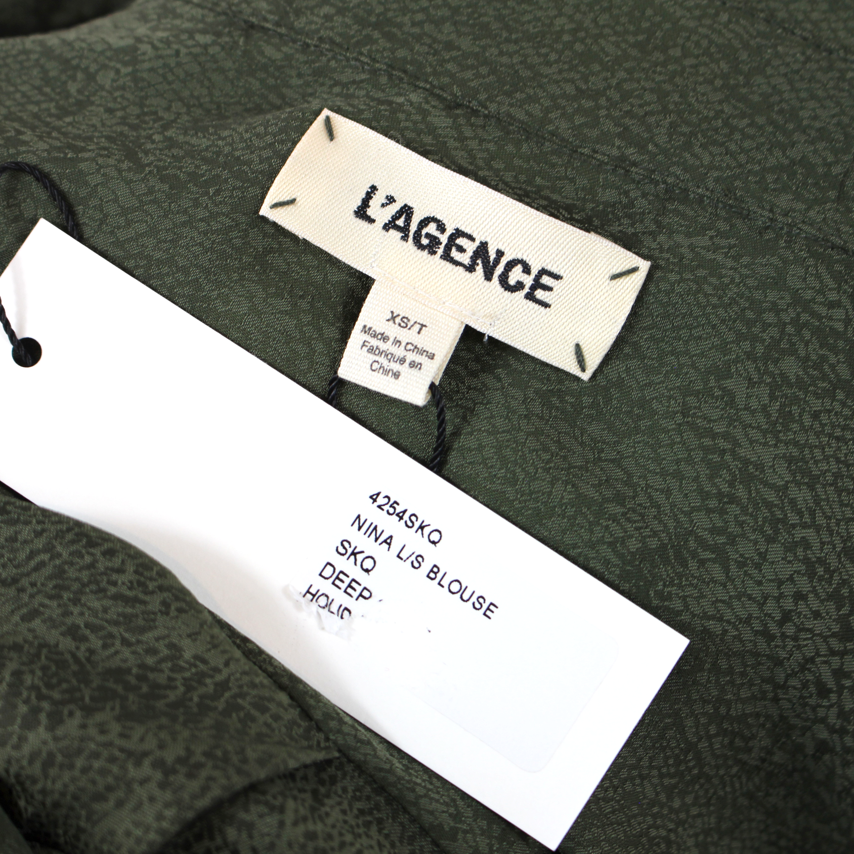 L'AGENCE Nina Dark Green Satin Long Sleeve Collared Snake Print Blouse