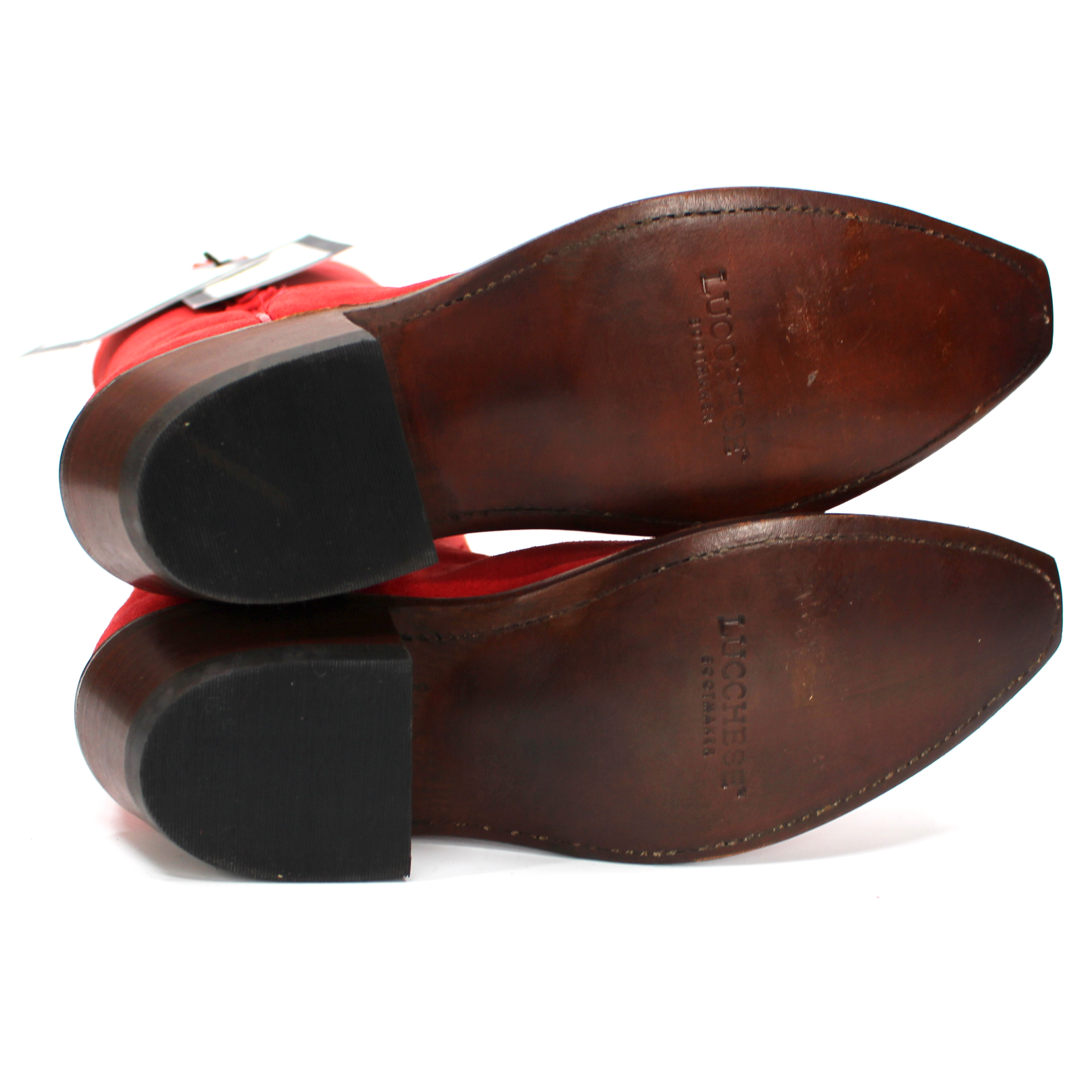 Lucchese Eleanor Red Suede Leather Western Cowboy Boots