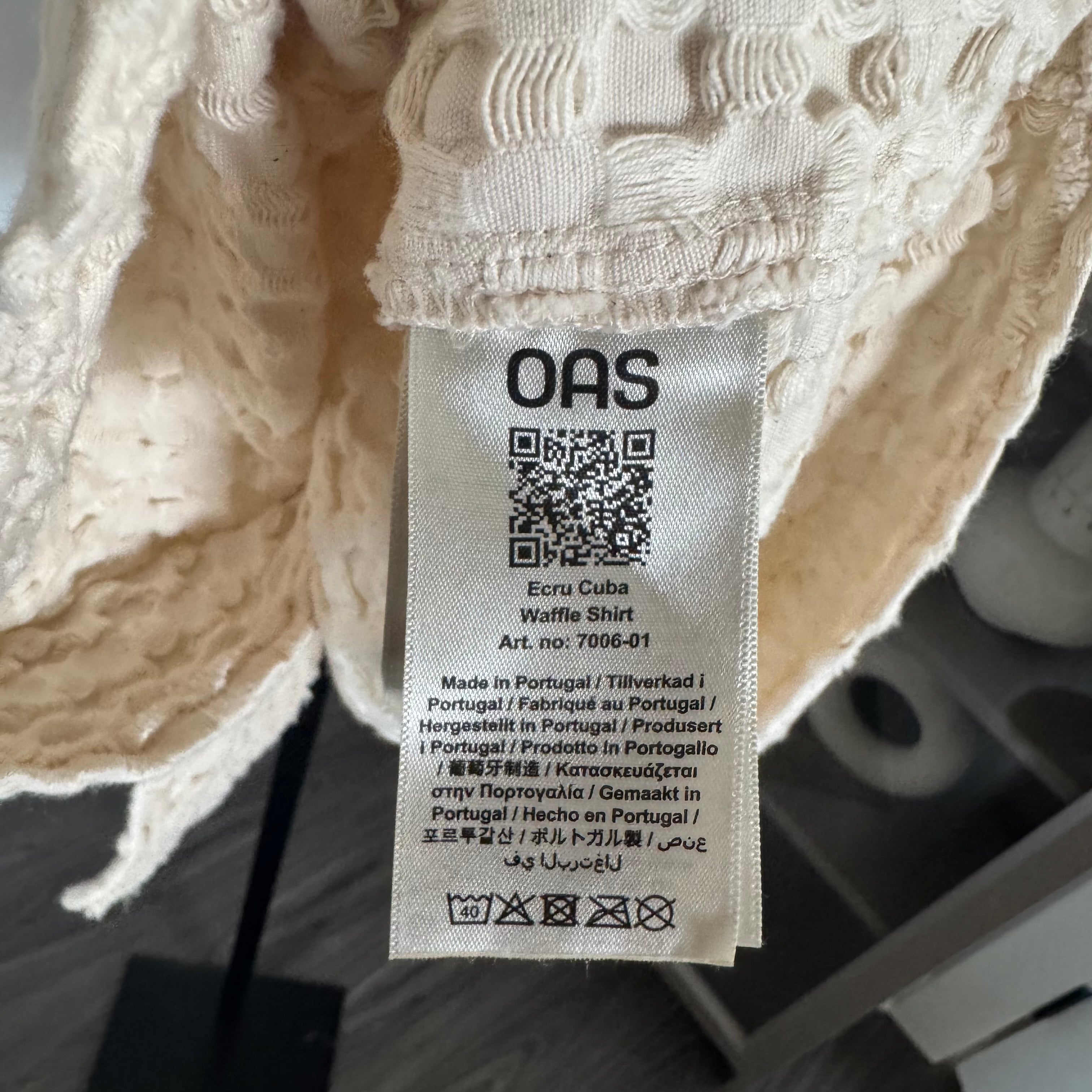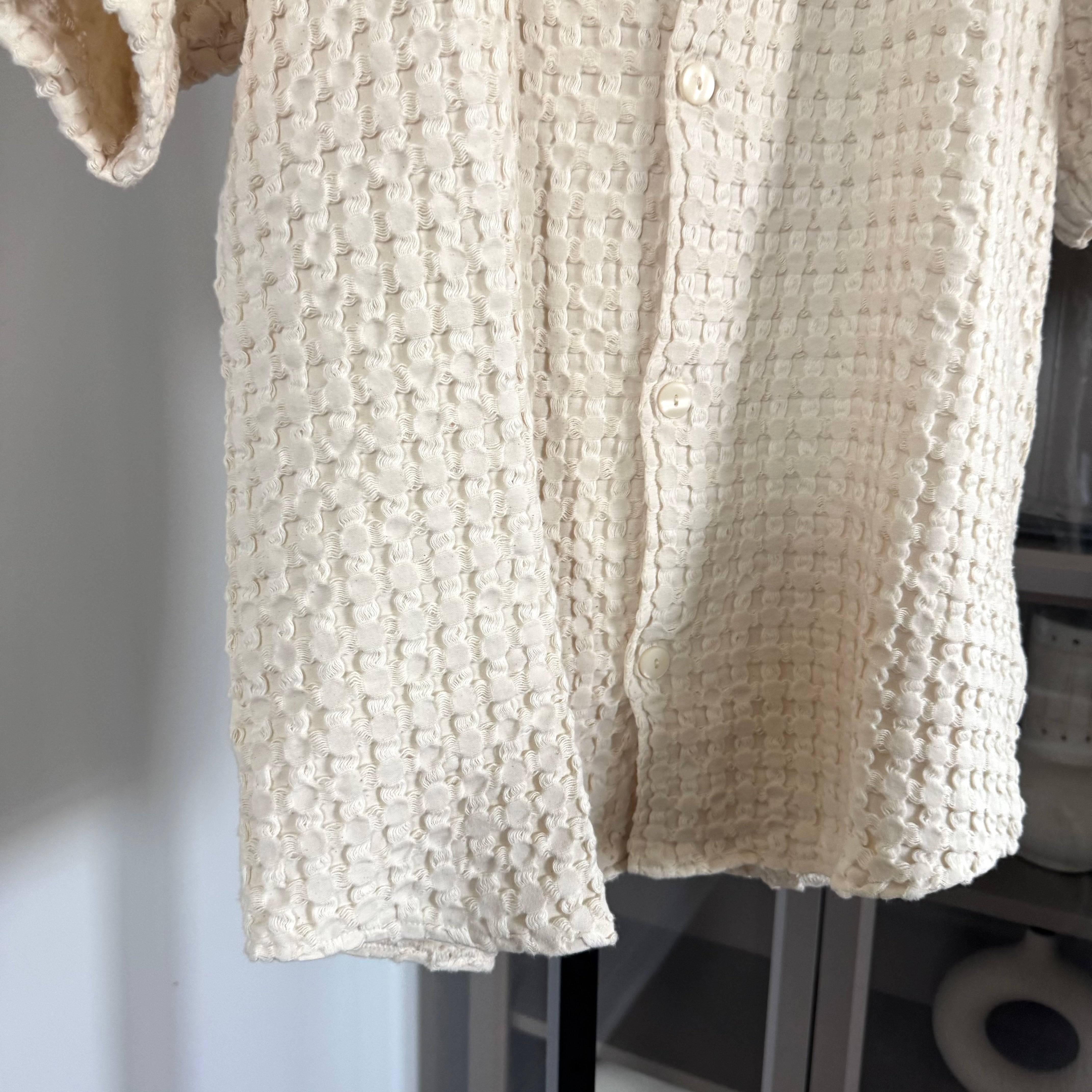OAS Cuba Waffle Textured Ecru Button Up Short Sleeve Shirt