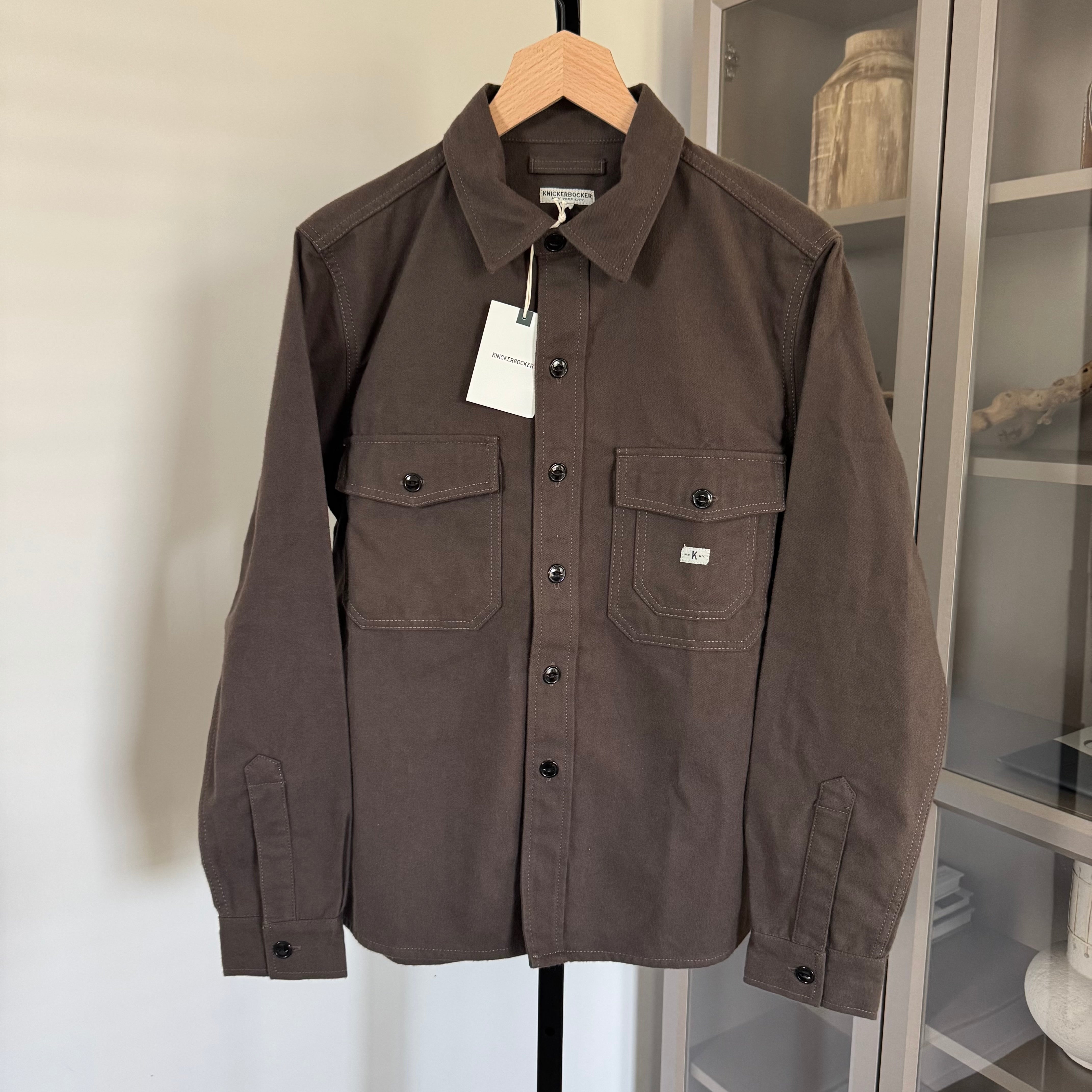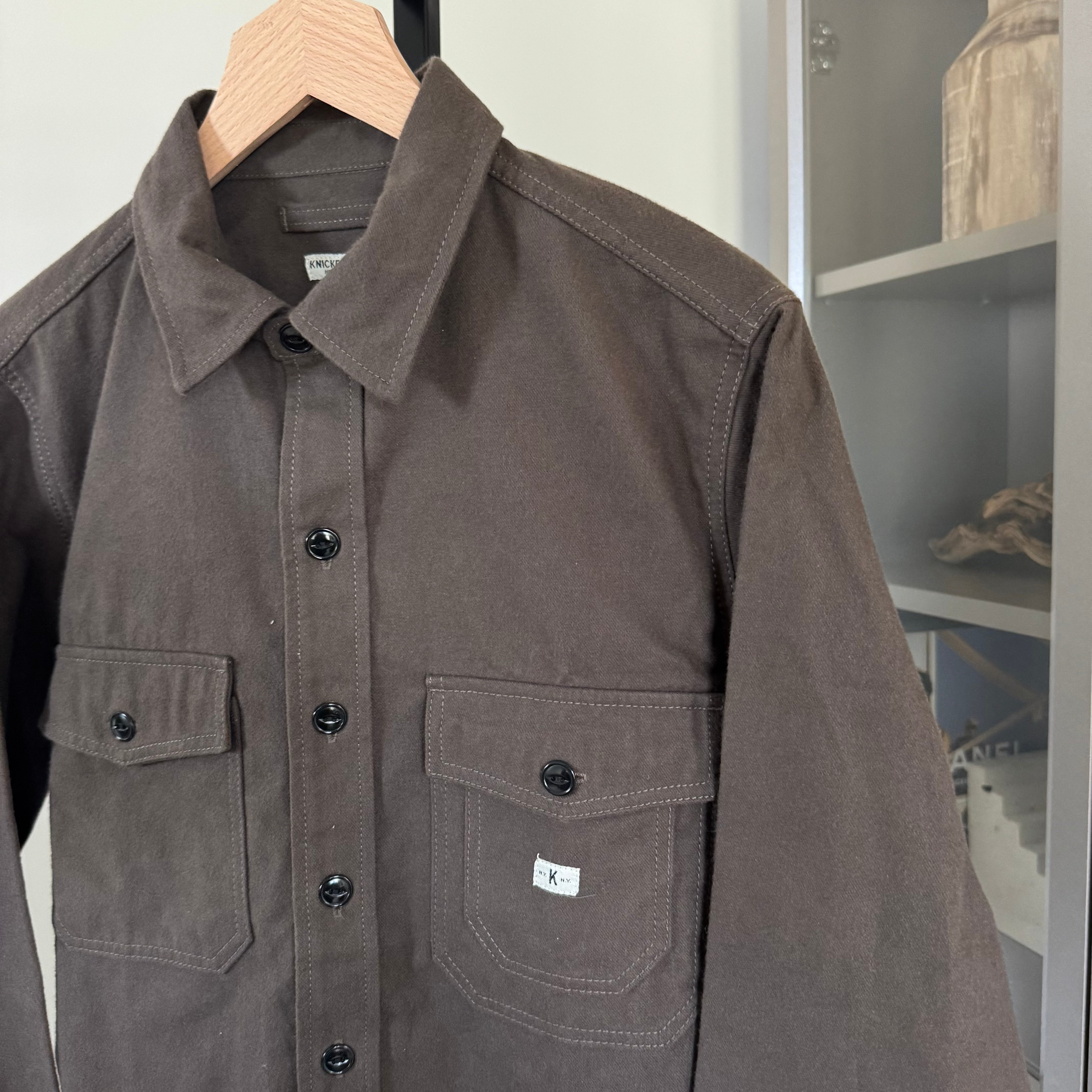 Knickerbocker Blanket Brown Soft Brushed Twill Cotton Long Sleeve Oveshirt Shacket