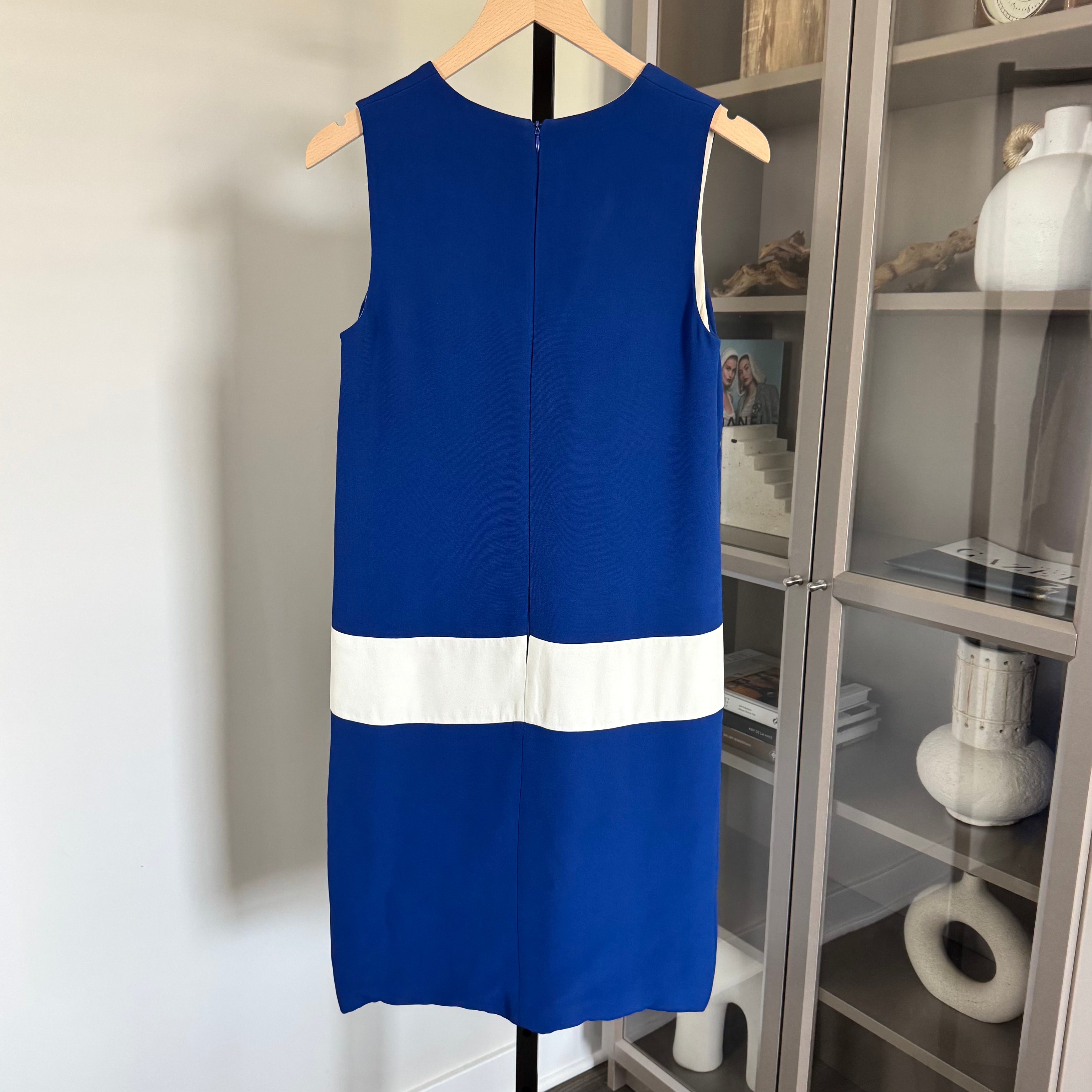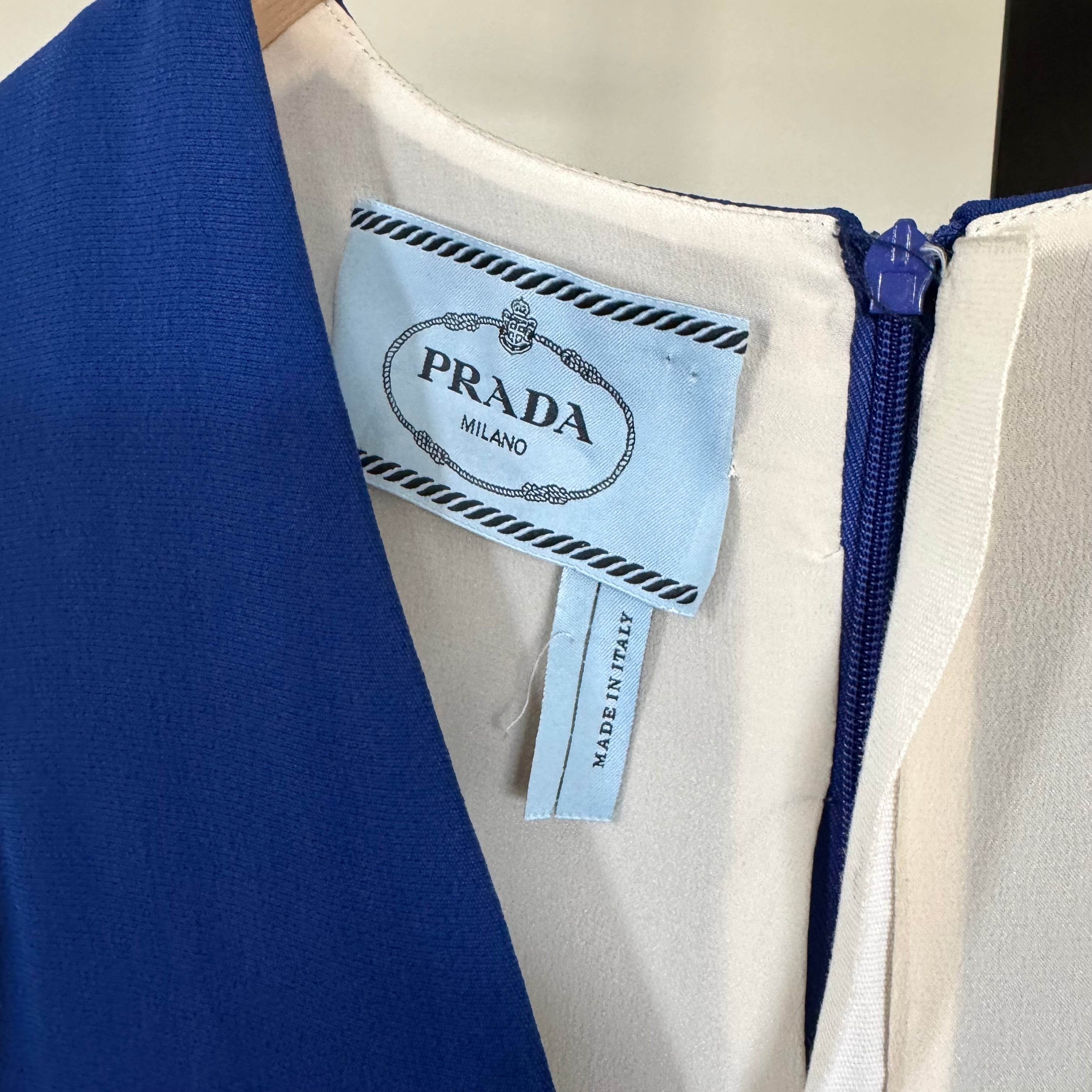 Prada Color Block Royal Blue White V-Neckline Sleeveless Shift Dress