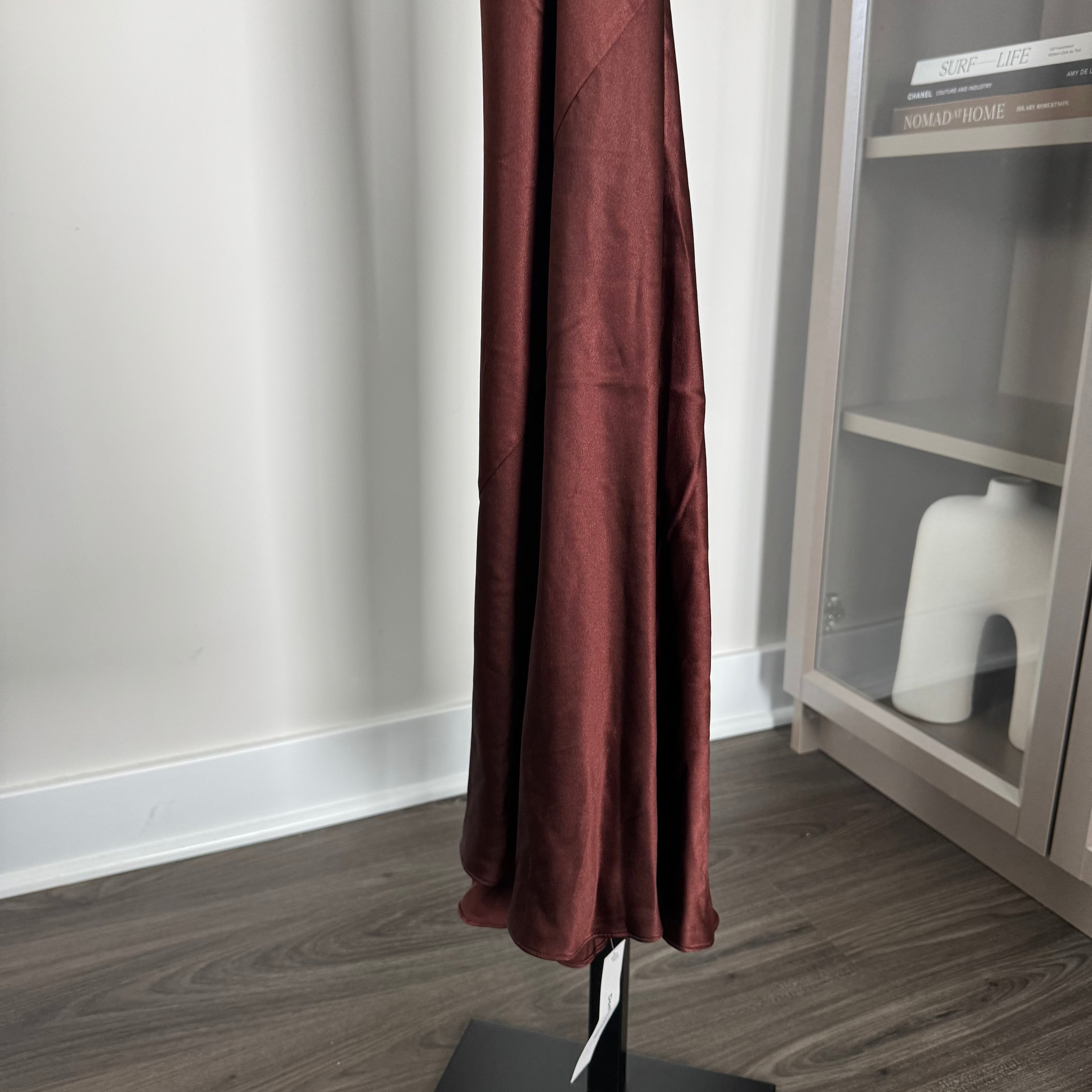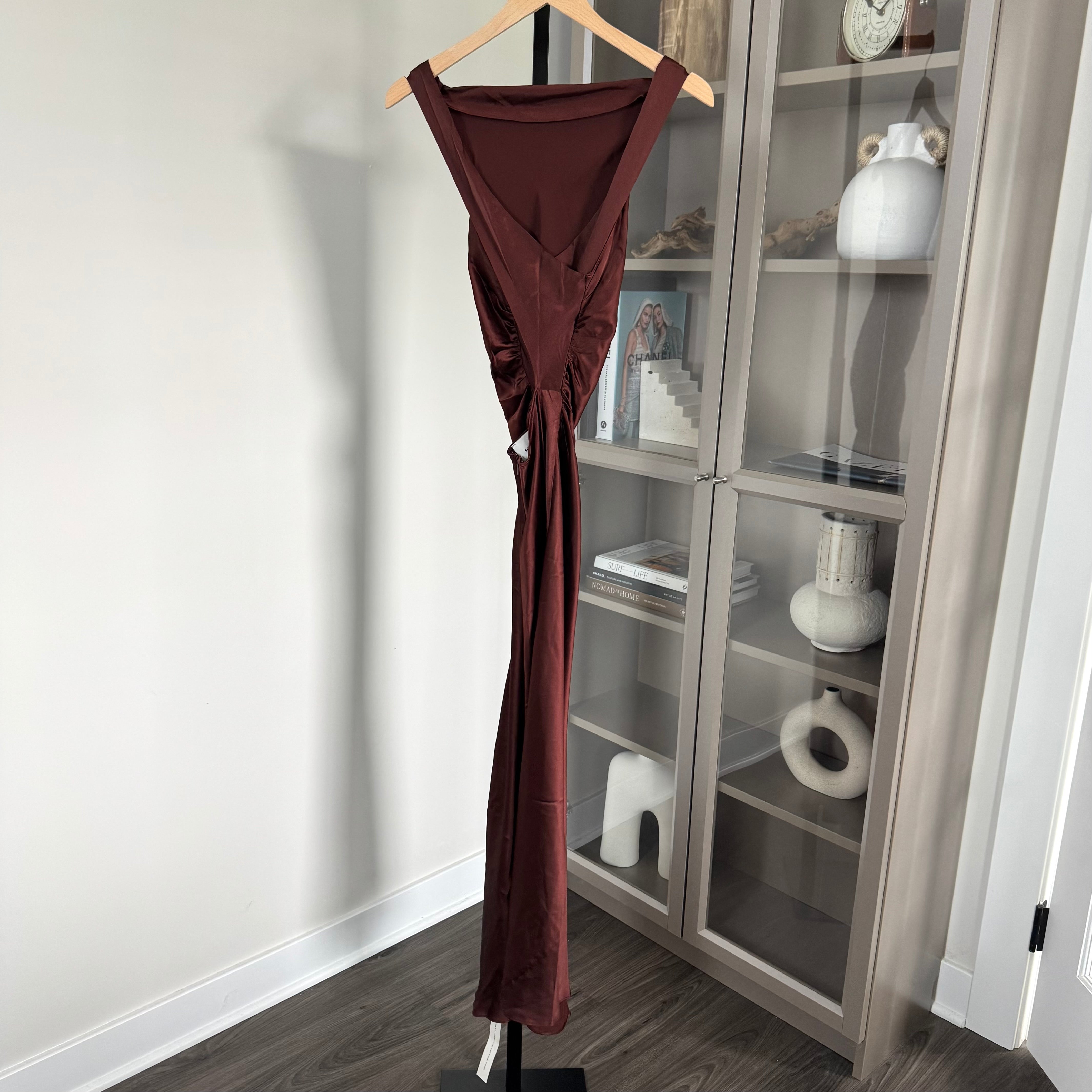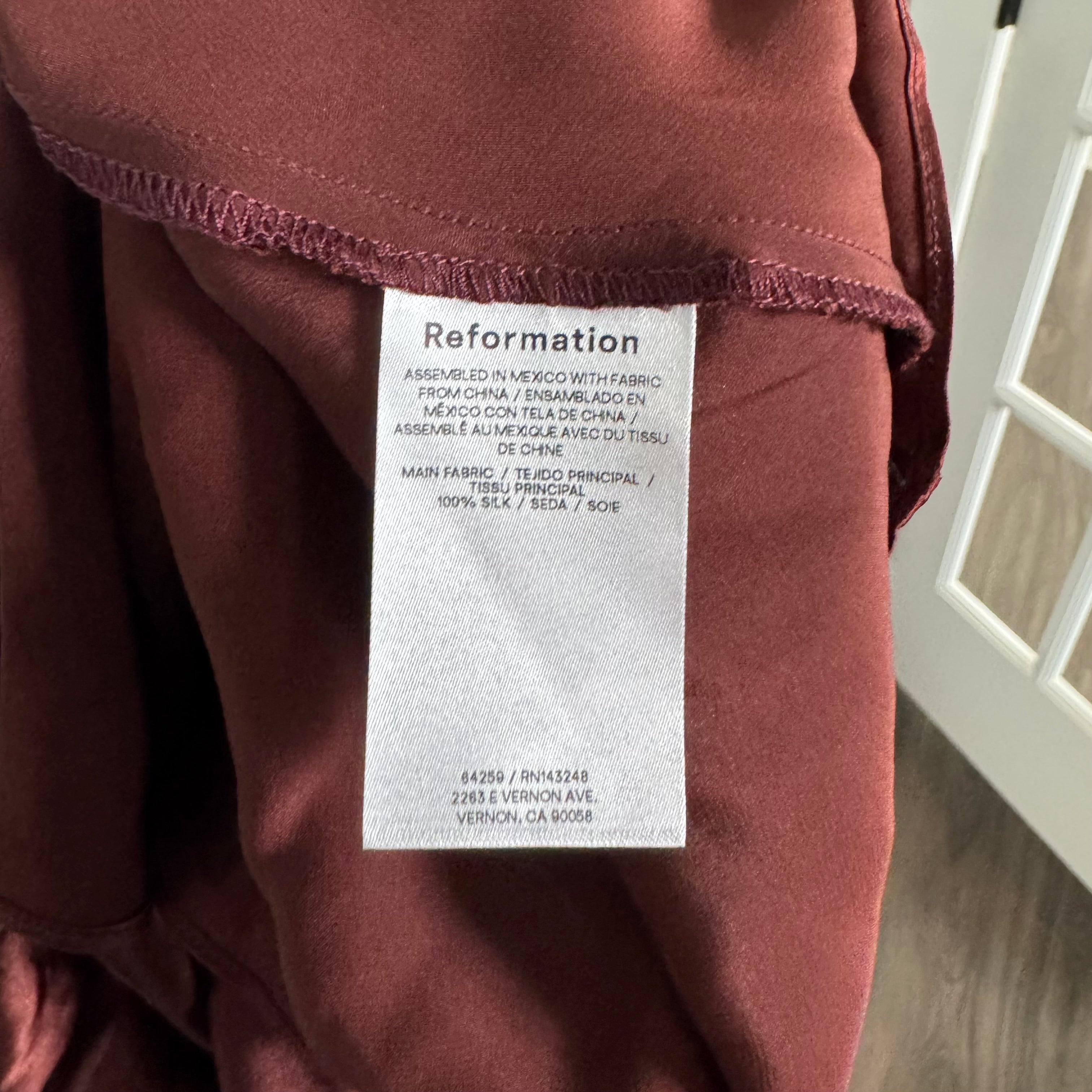 Reformation Casette Silk Mahogany Burgundy Cowl Neck Midi Formal Dress