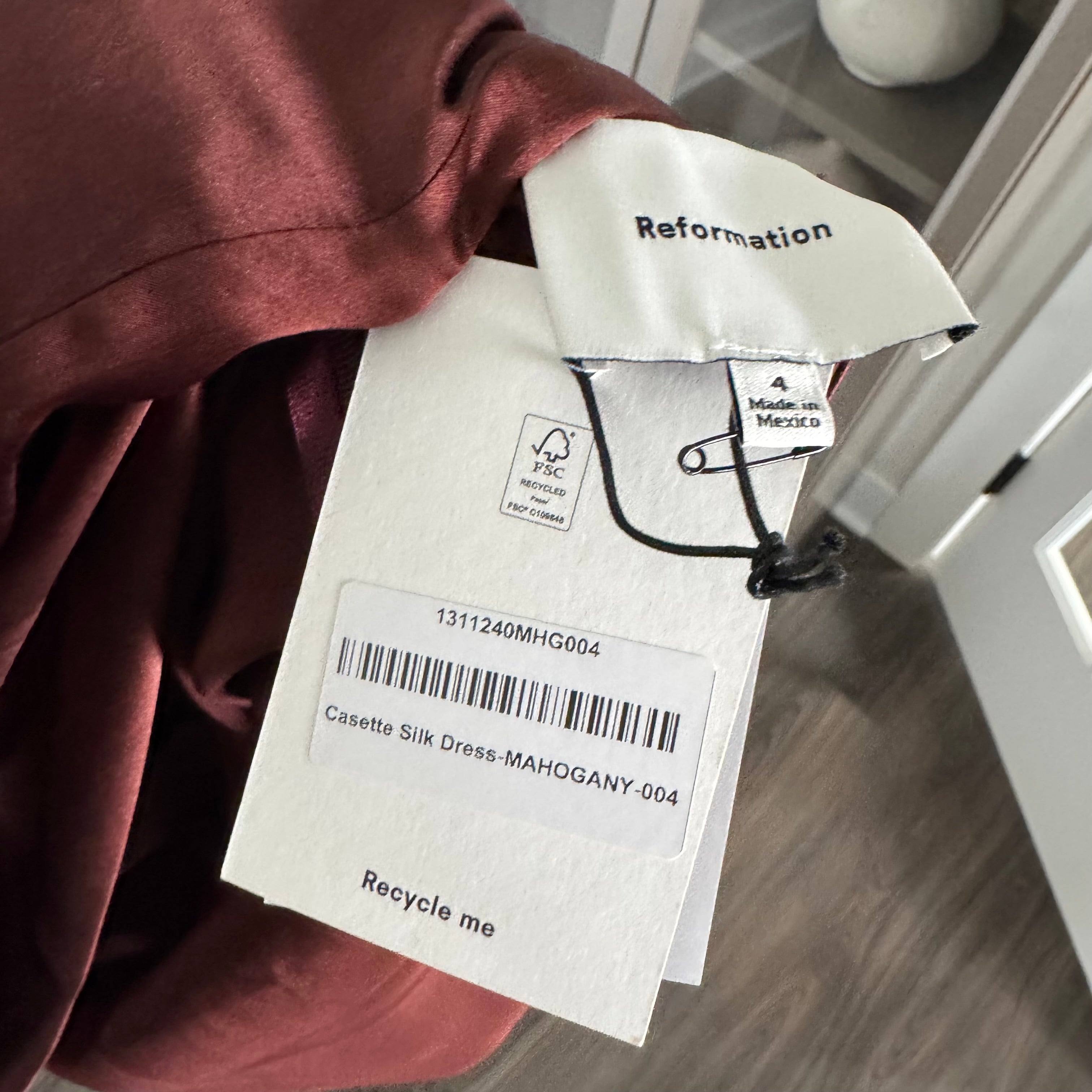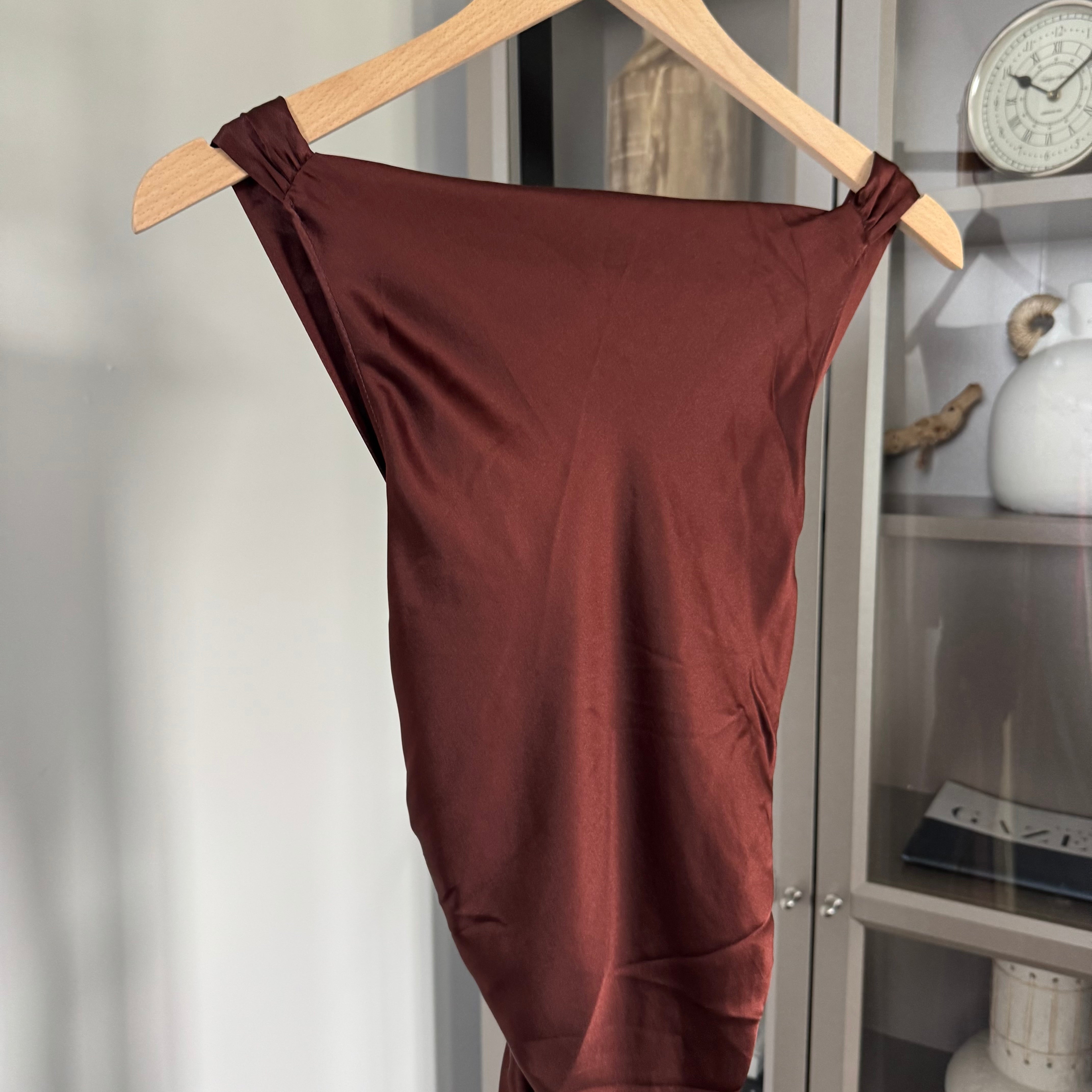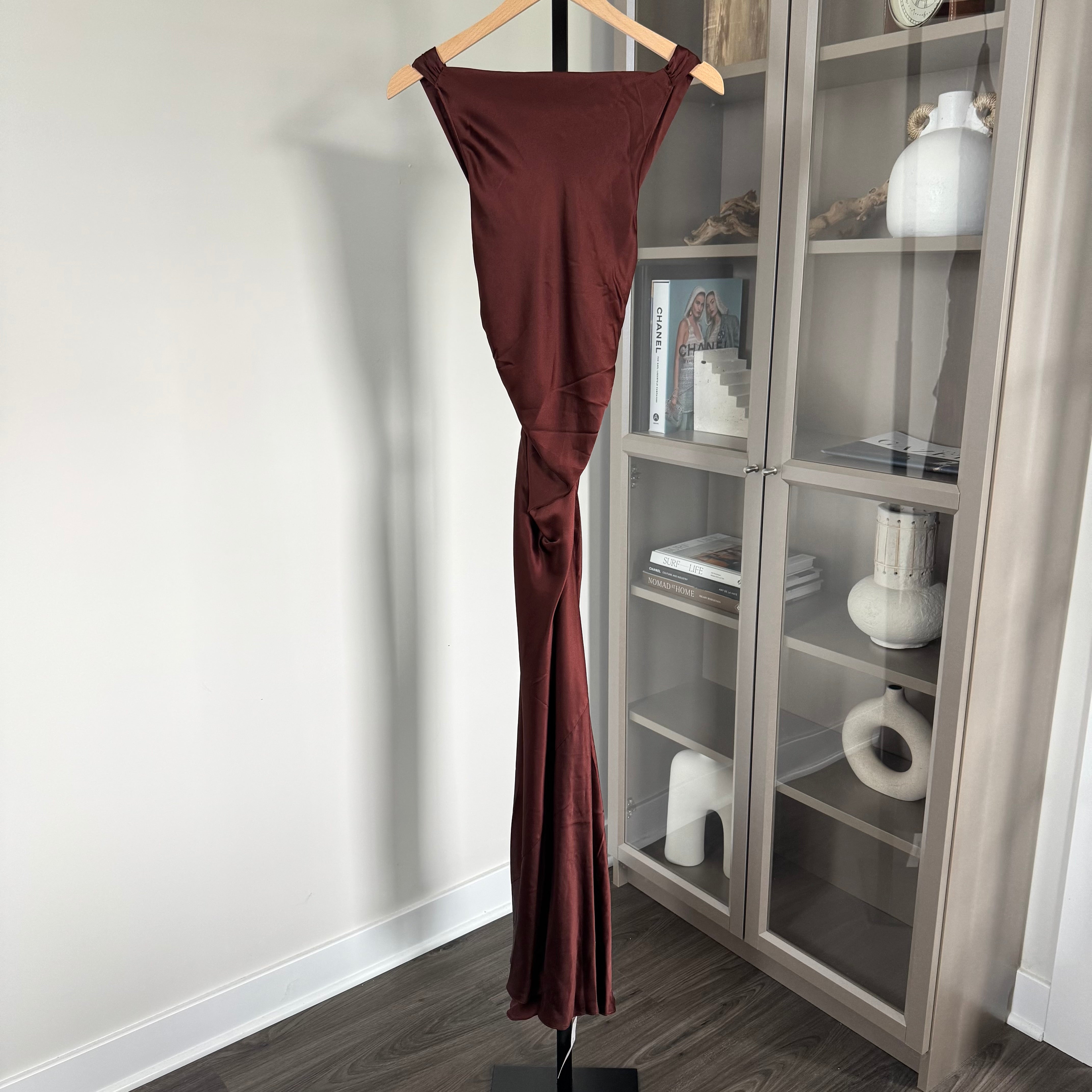 Reformation Casette Silk Mahogany Burgundy Cowl Neck Midi Formal Dress