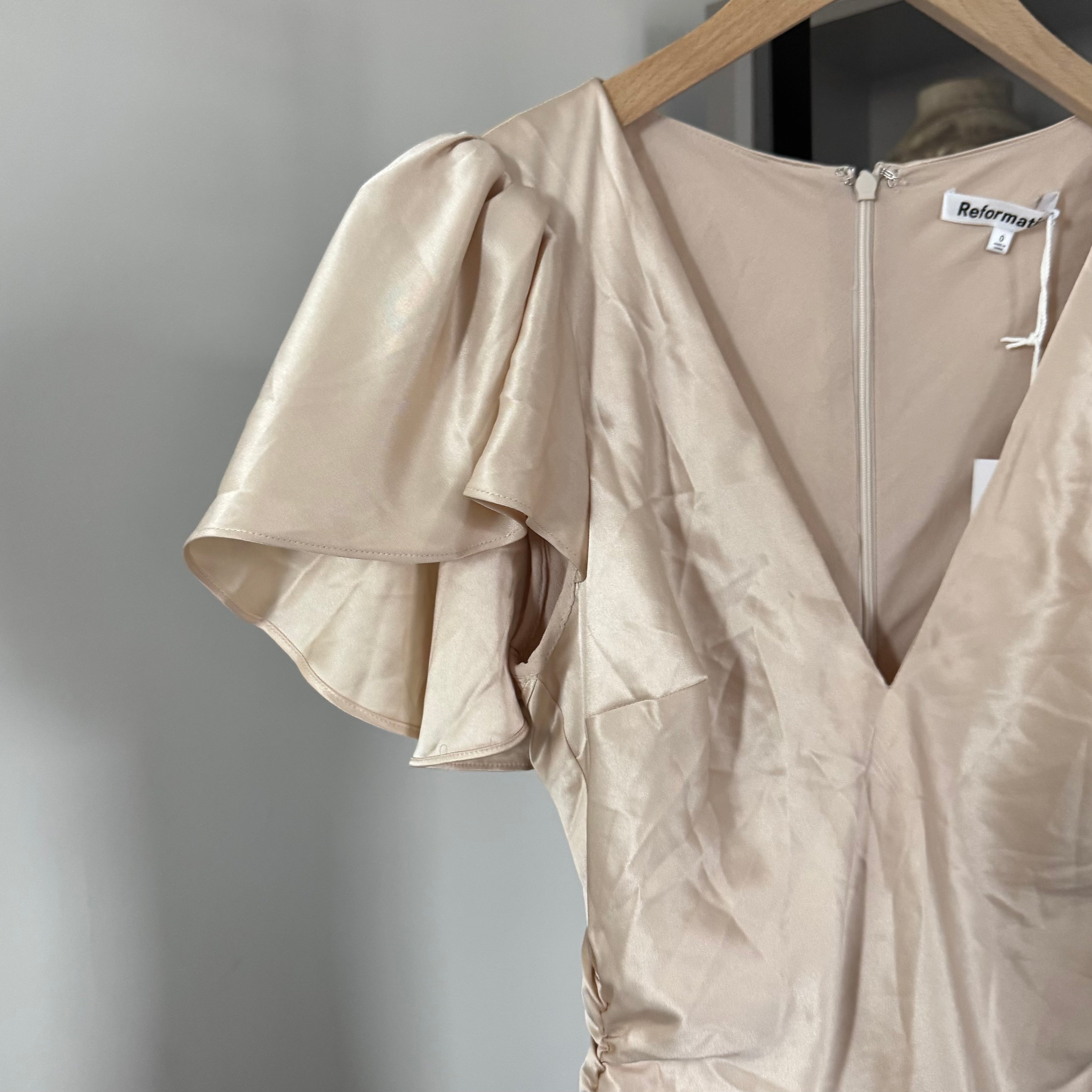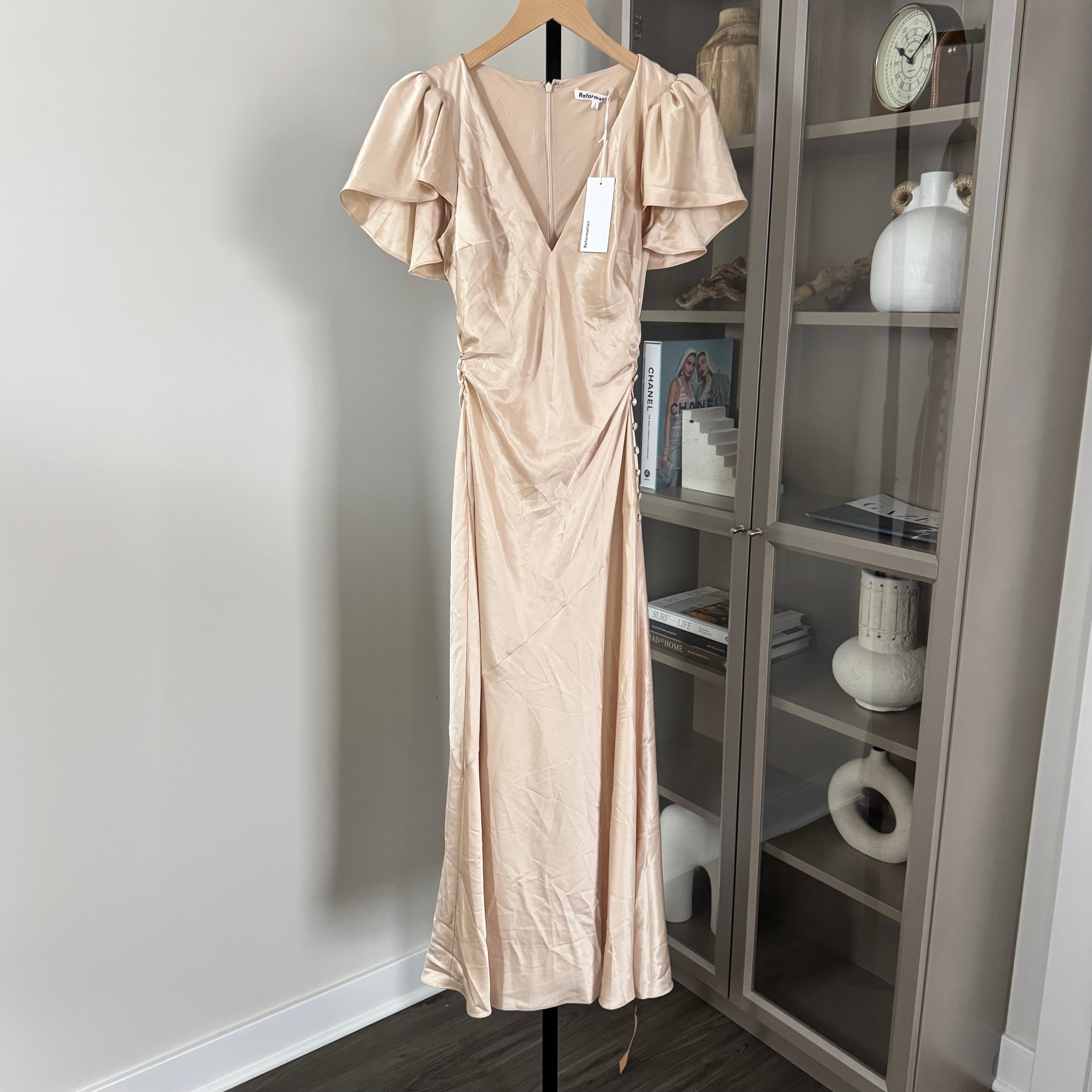 Reformation Vida Satin Grand Cru V-Neck Flutter Sleeve Maxi Dress