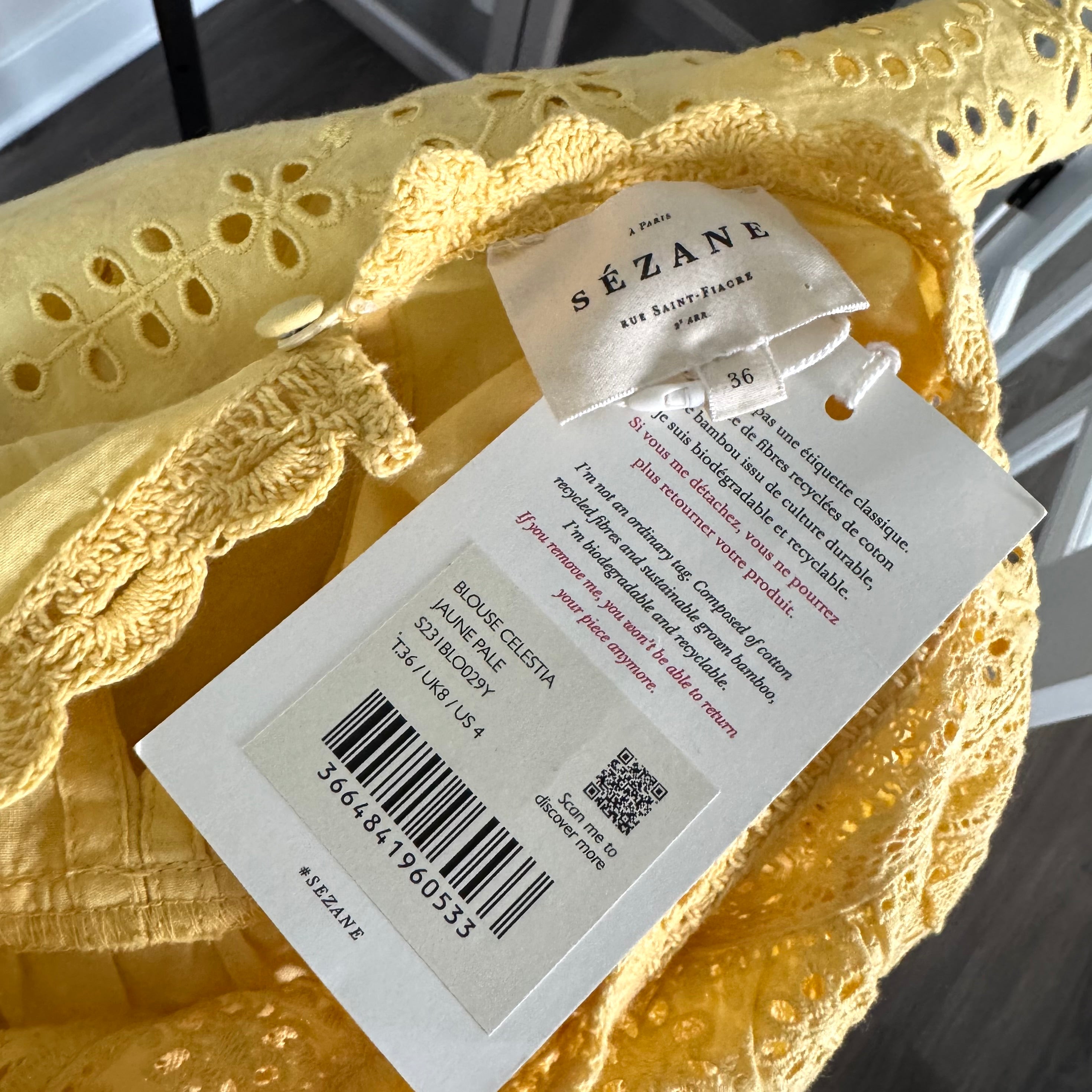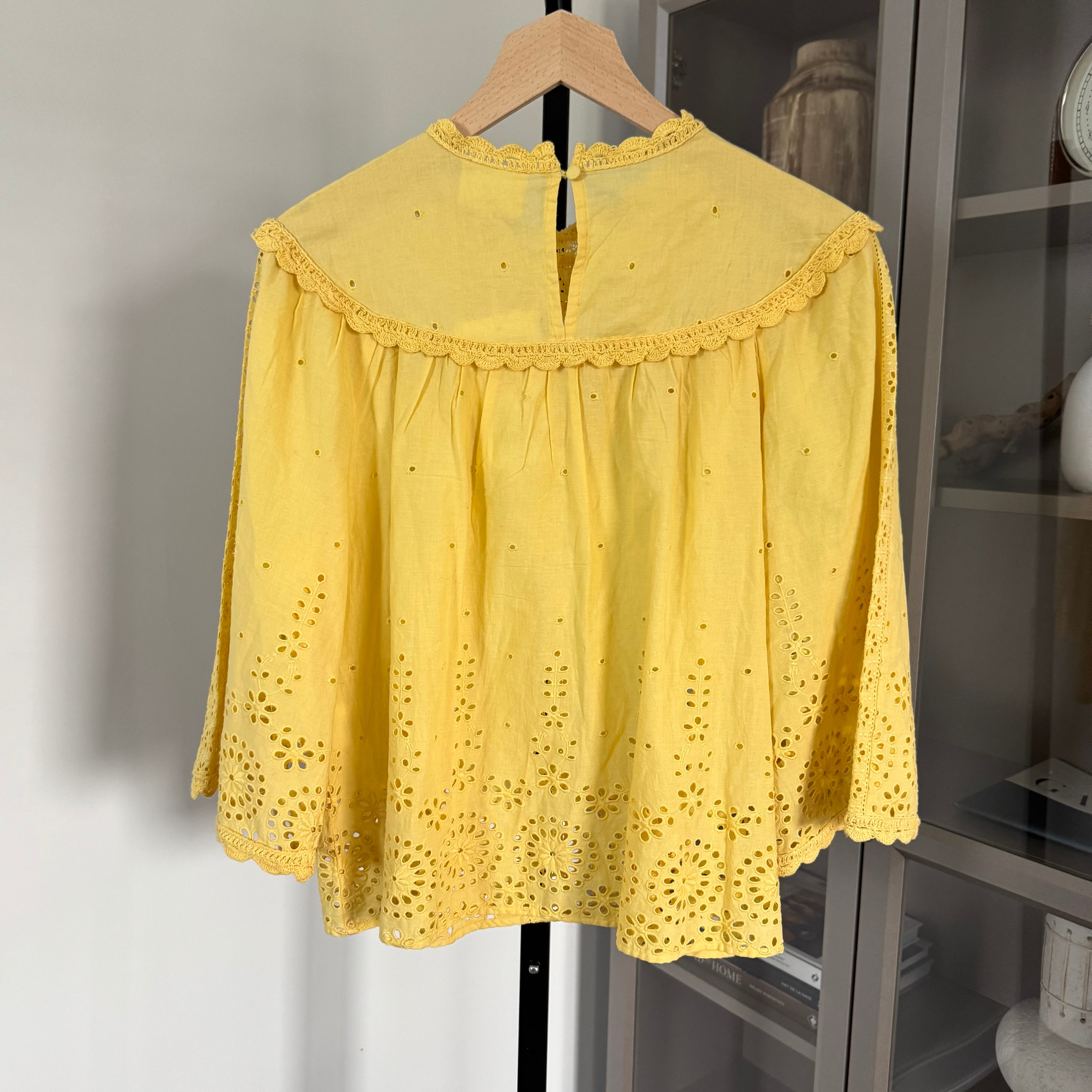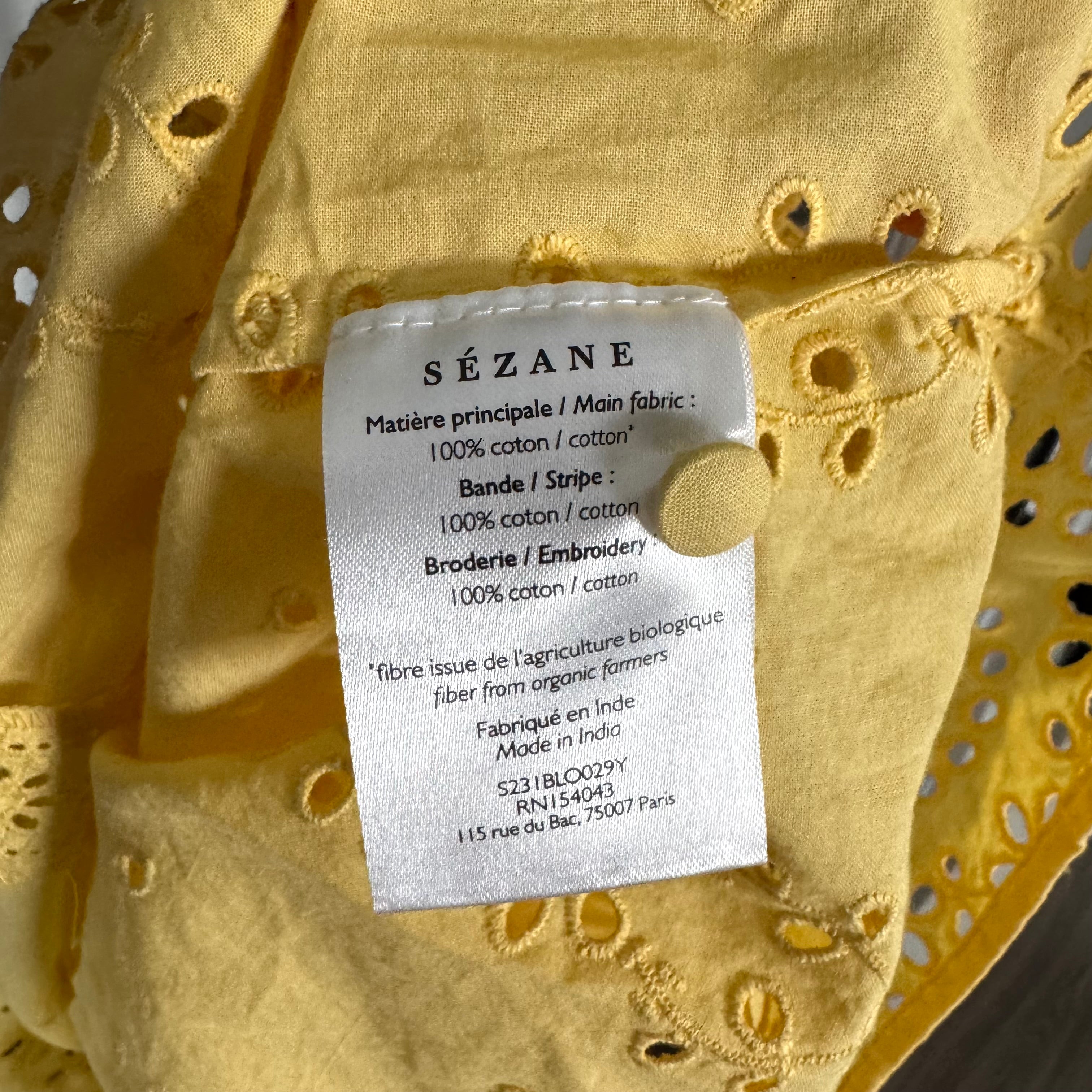 Sezane Celestia Yellow Crochet Trim Floral Eyelet Blouse