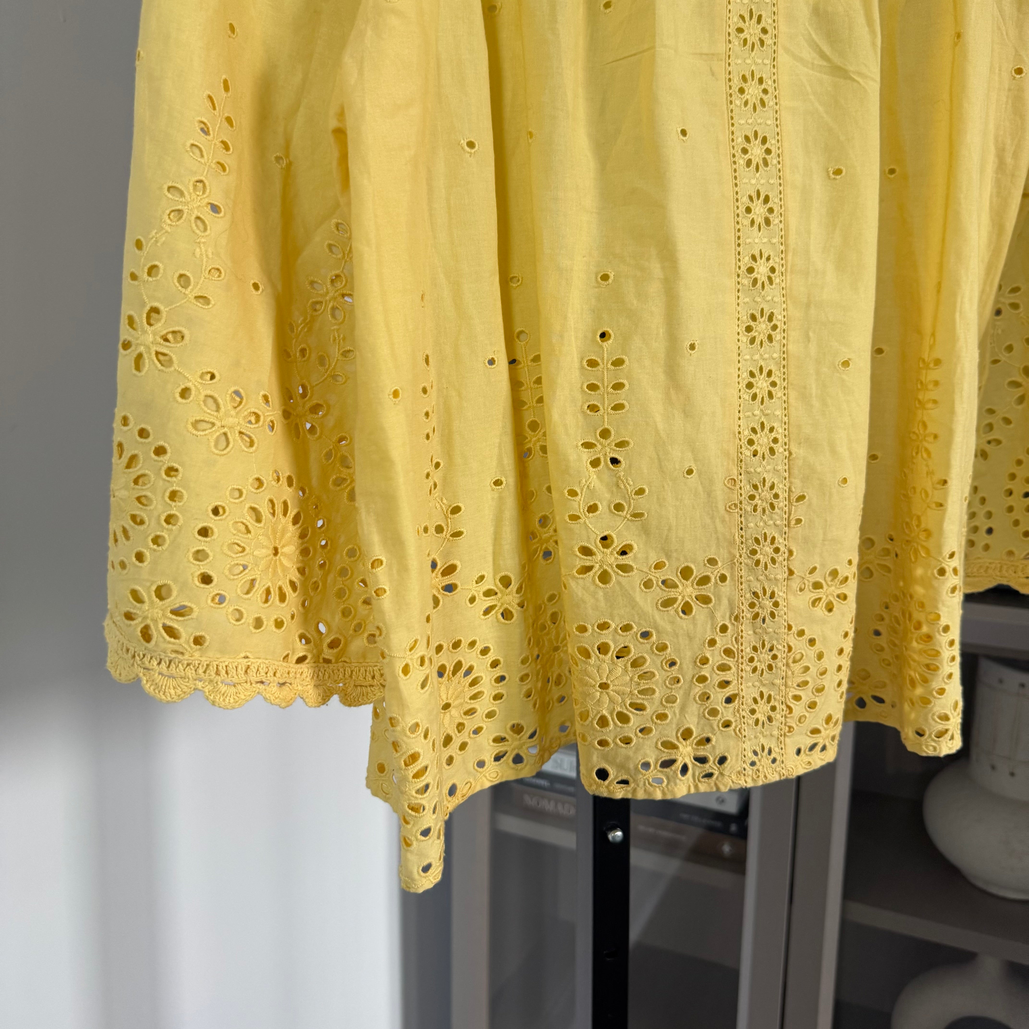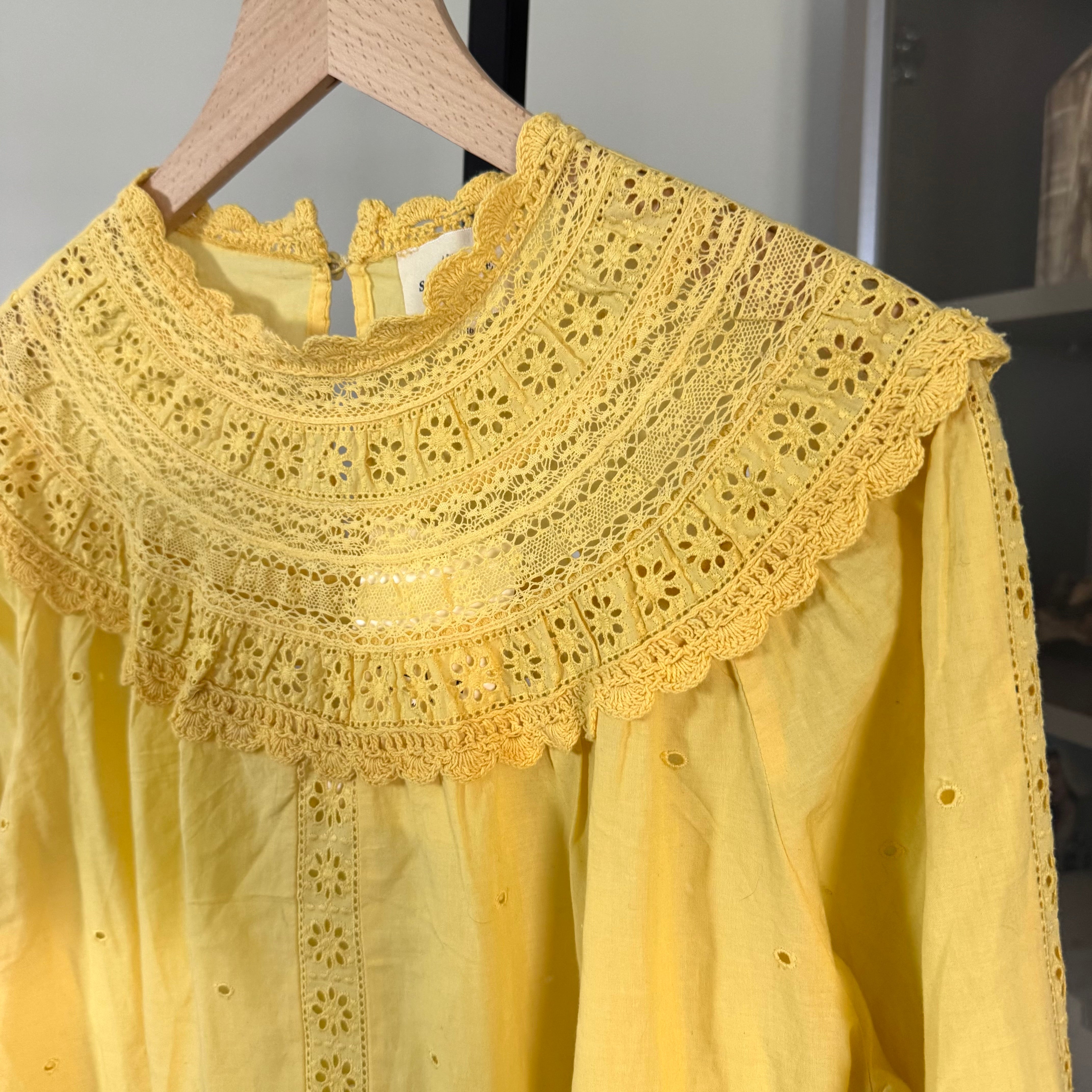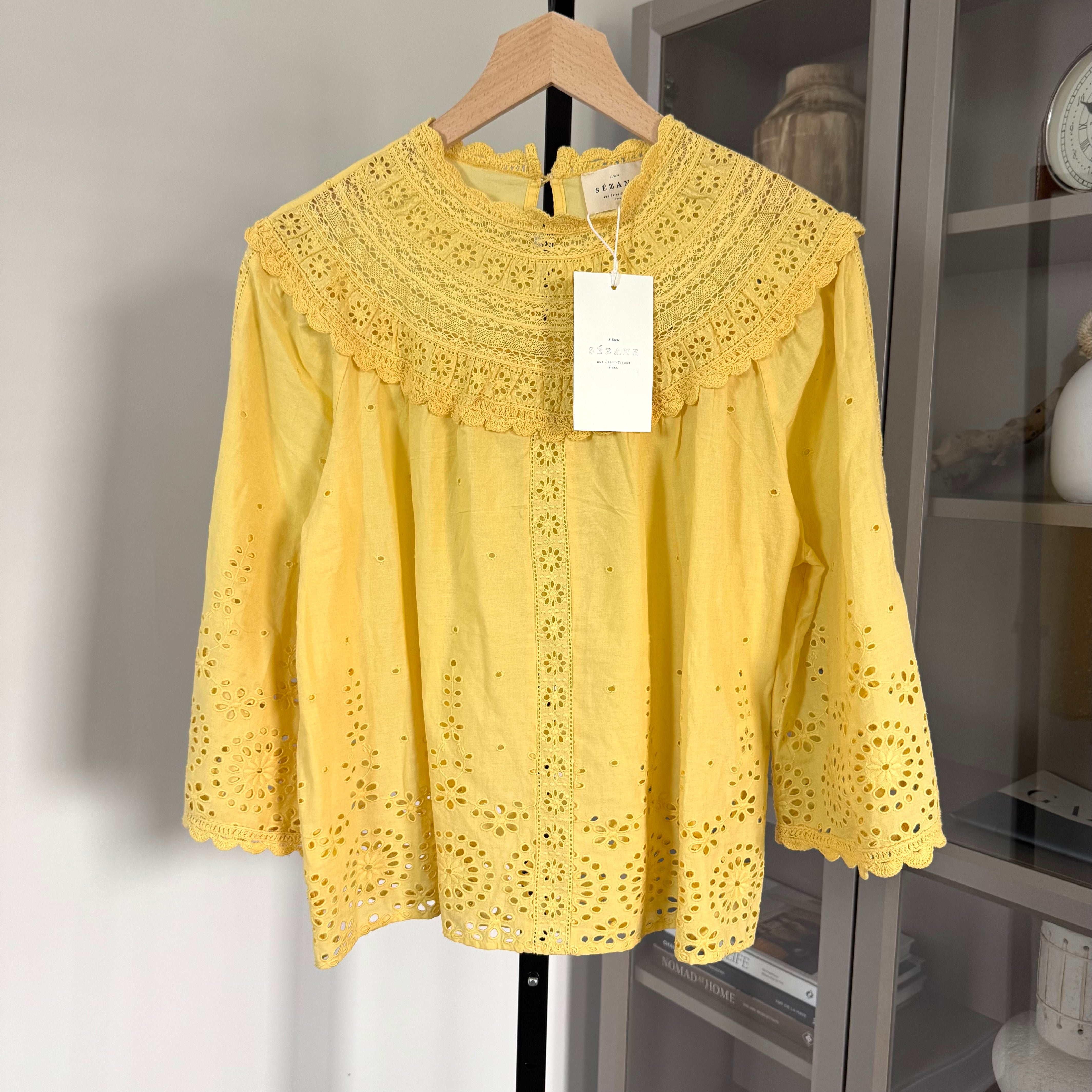 Sezane Celestia Yellow Crochet Trim Floral Eyelet Blouse